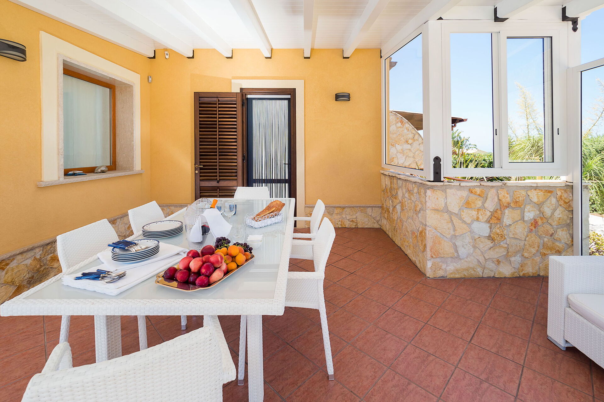 The shady veranda is furnished with a table and chairs for dining al fresco, plus a comfortable sofa for relaxing. There is also a barbecue area and a garden.
