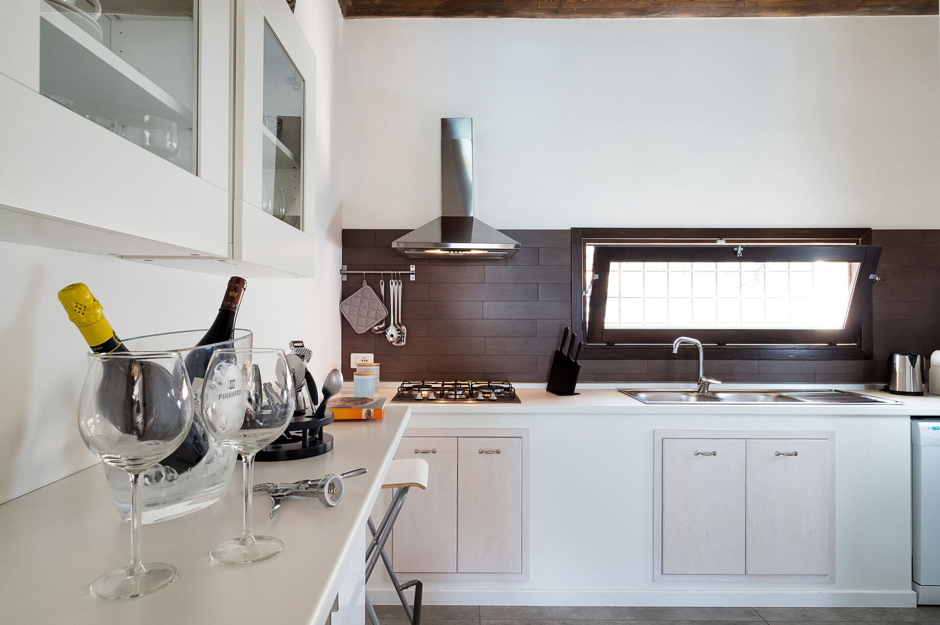 Kitchen: well equipped kitchen, stove top, wood burning stove, WIFI internet, internet, exit to the terrace.