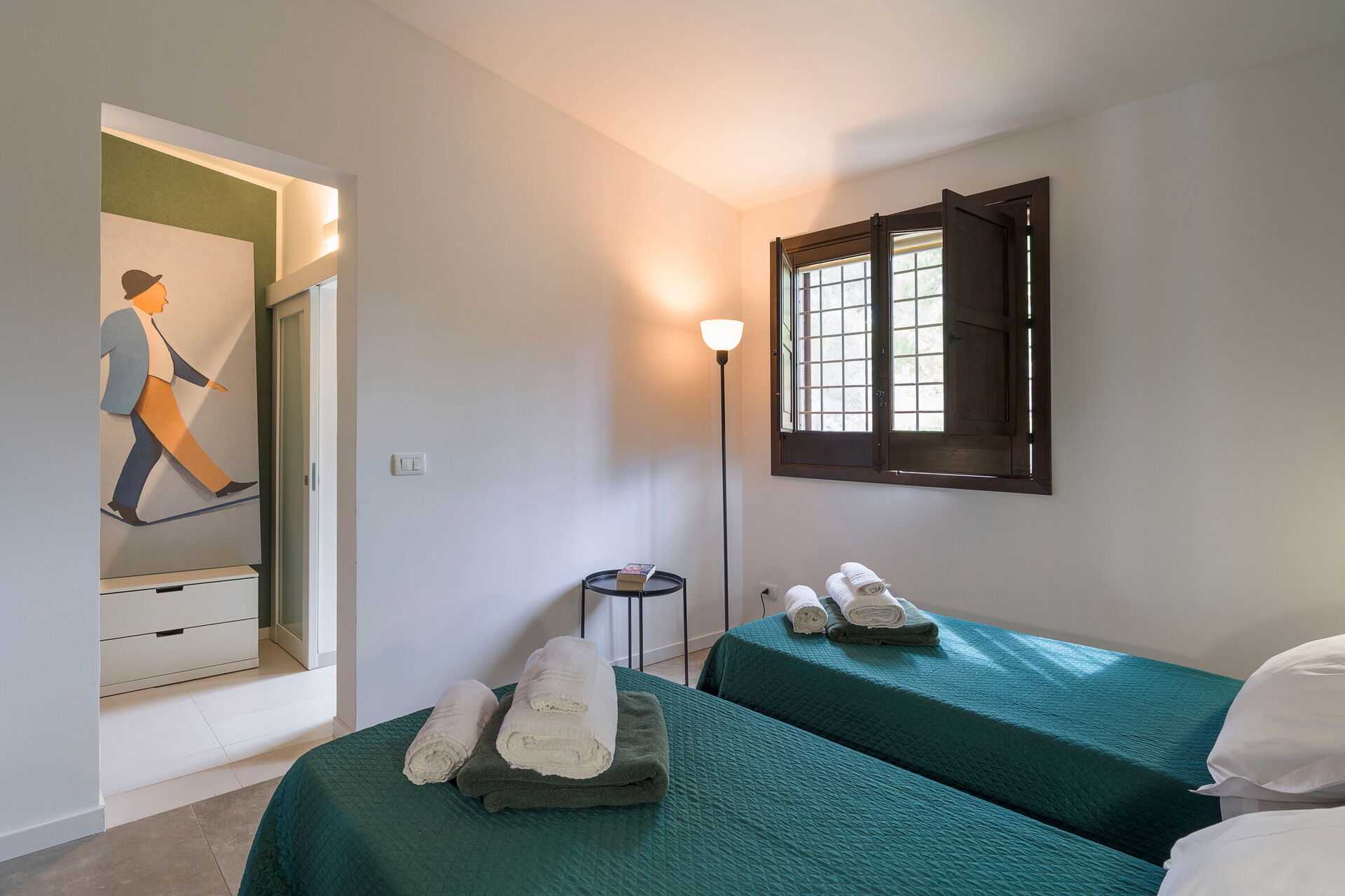 Bedroom: double bed, baby crib, WIFI internet, internet, air conditioning, mosquito net, television, exit to the terrace.