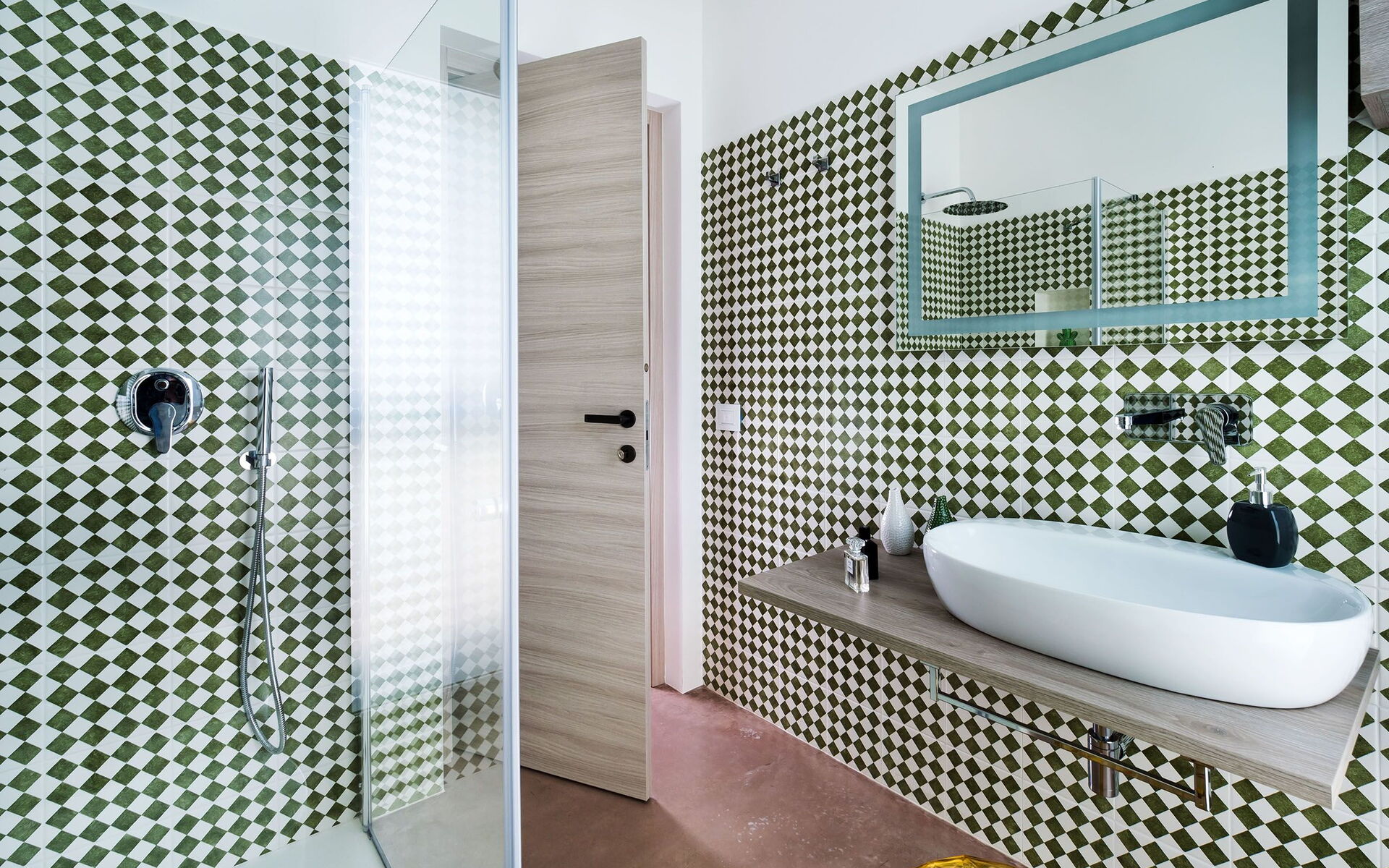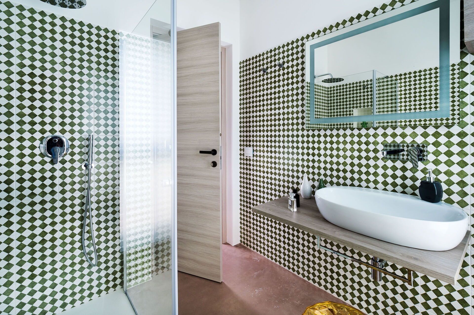 Bathroom: basin, toilet, bidet, shower.