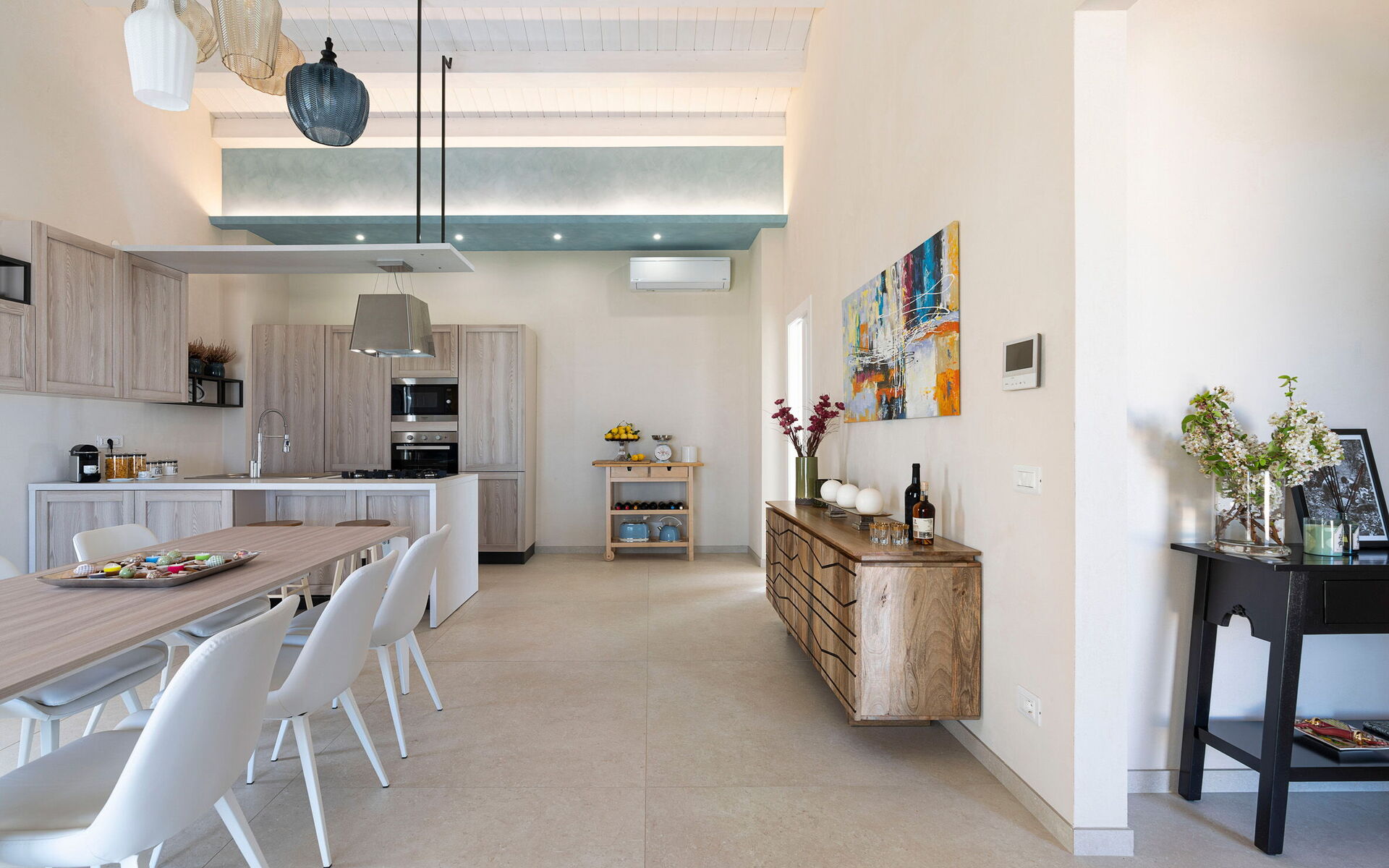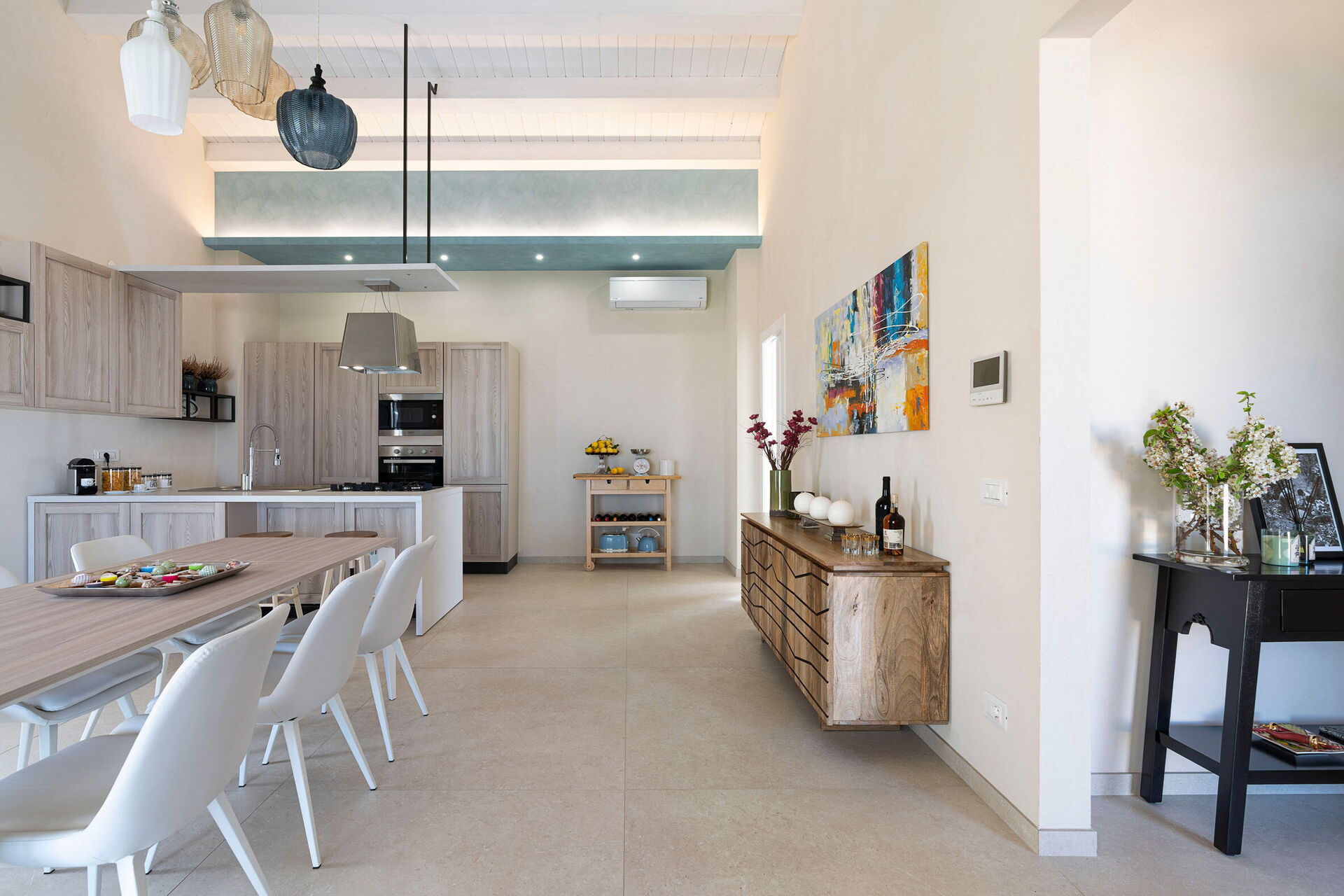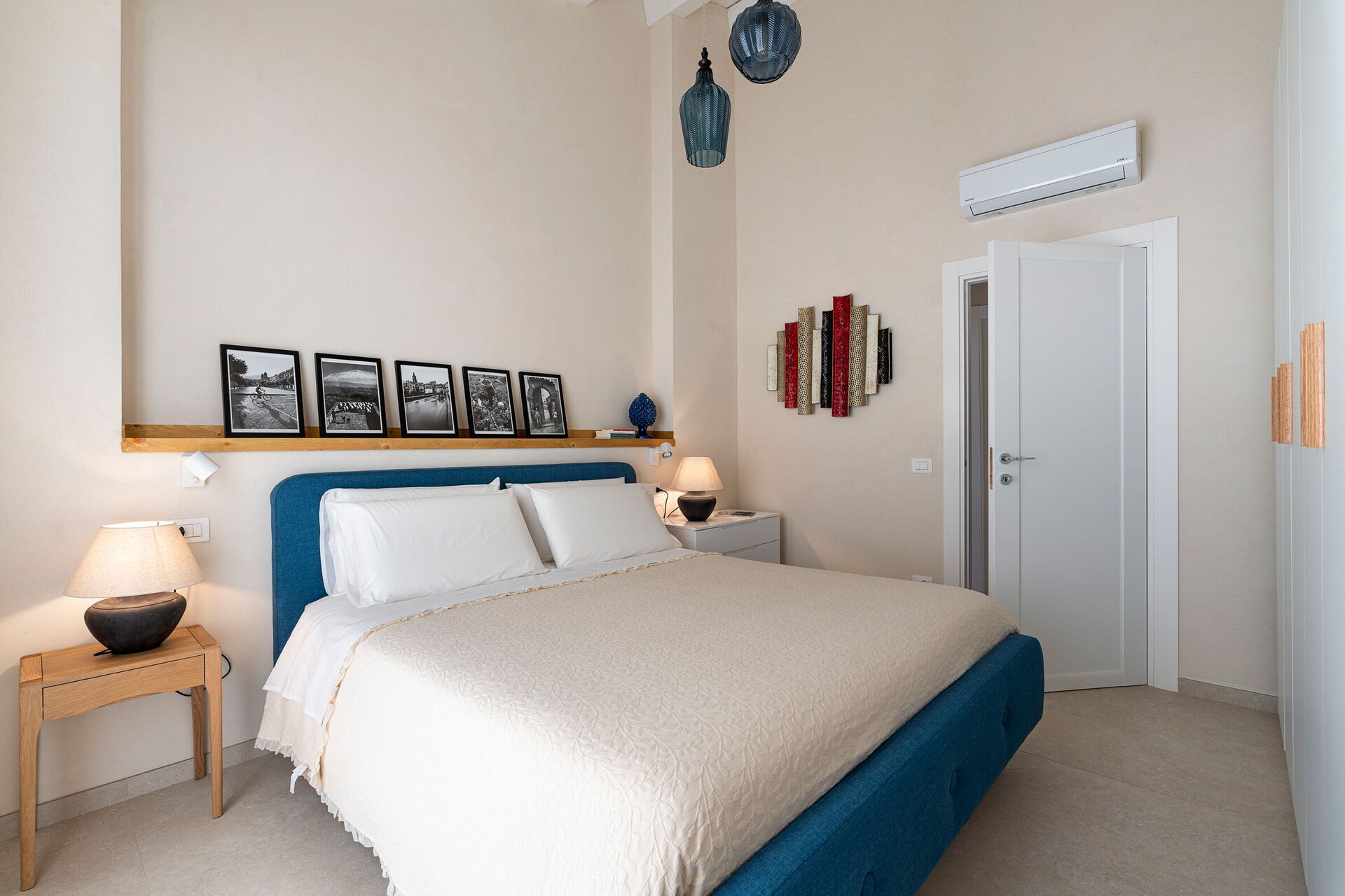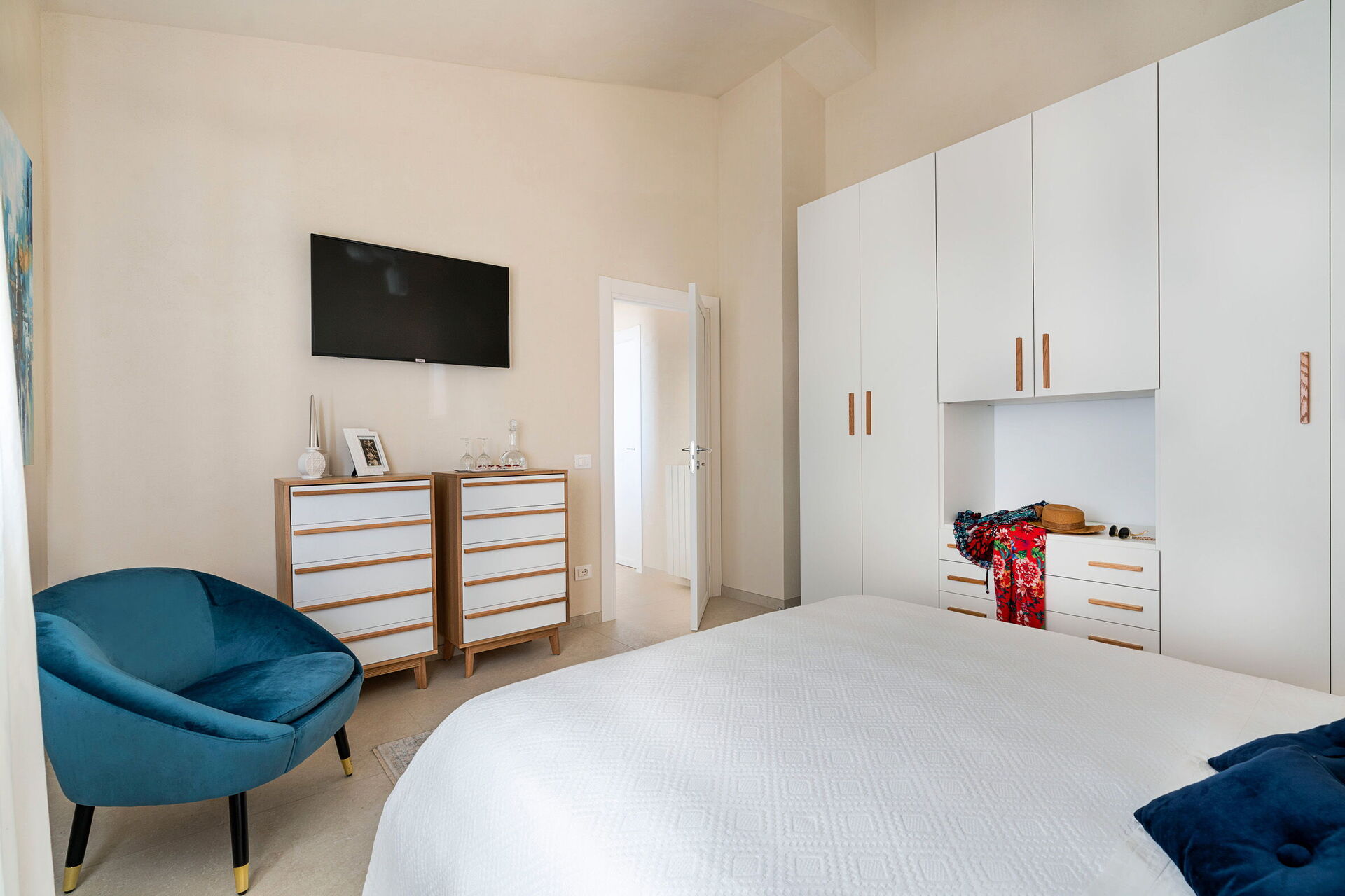 Kitchen + living room: well equipped kitchen, dining table (people: 8), dishwasher, fridge, freezer, microwave, stove top, oven, toaster, iron, italian coffee machine, american coffee machine, sofa (people: 2), WIFI internet, internet, air conditioning, mosquito net, highchair, television, smoke detector, co2 detector, exit to the veranda.