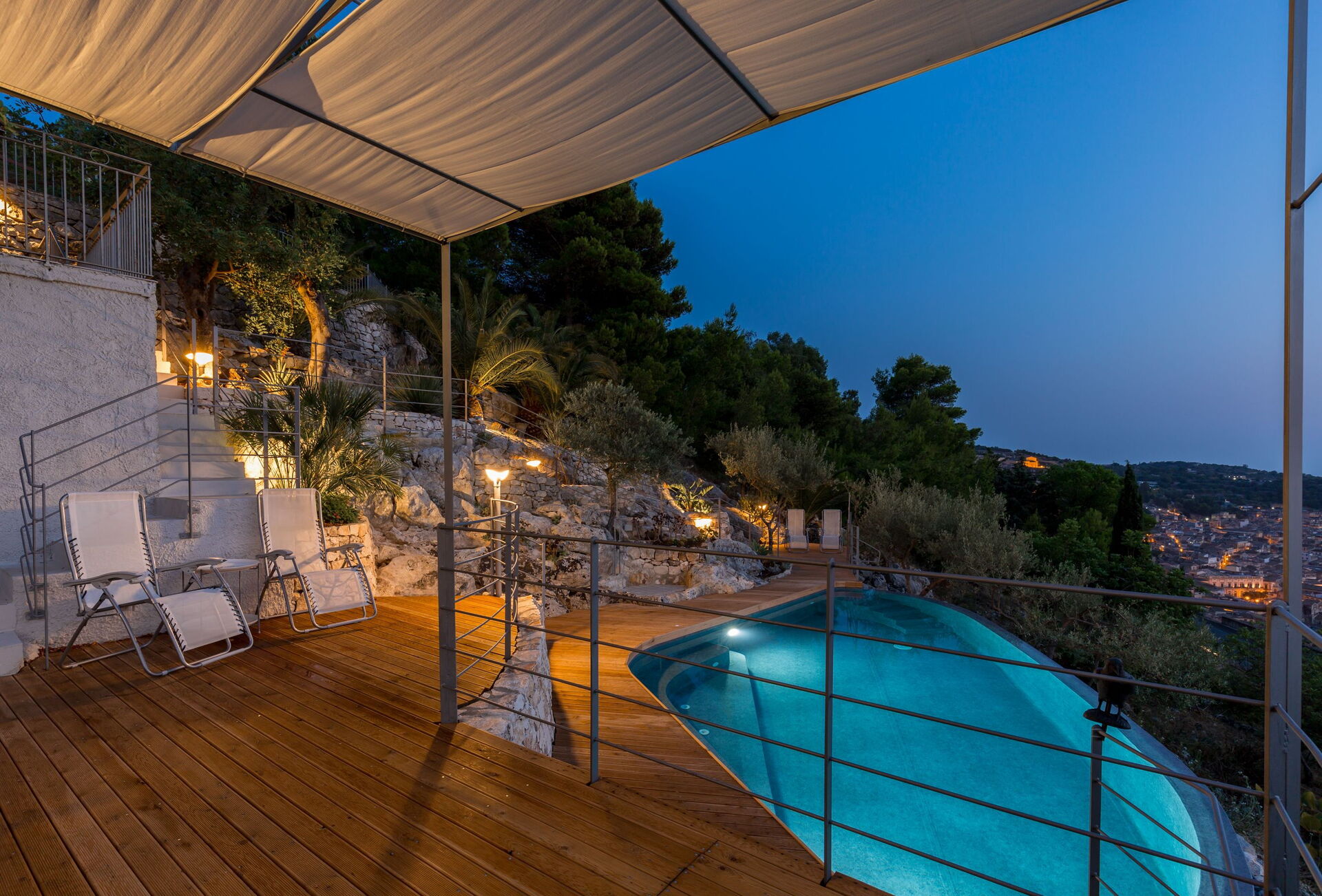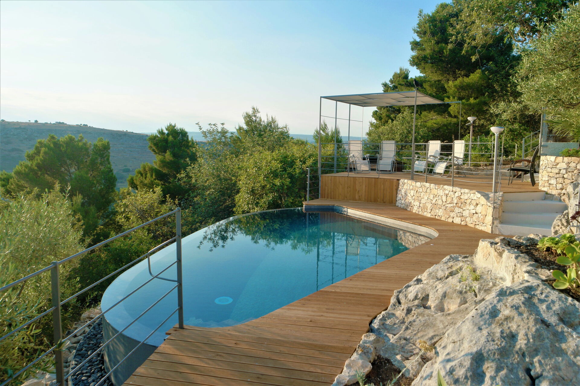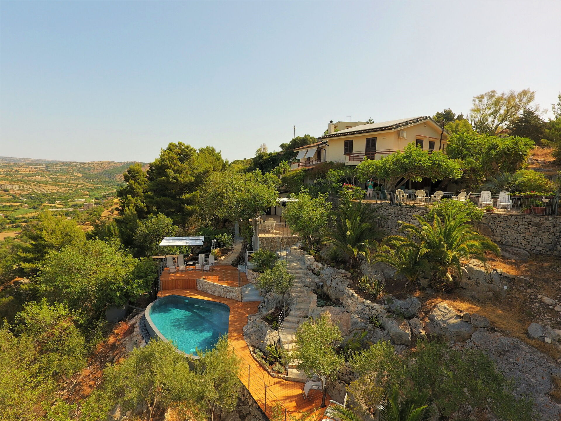 Available to guests: swimming pool with panoramic views for the exclusive use of guests (irregular form, depth 1.35 m), outside spaces created with wooden terraces designed to make use of being outdoors (gazebo, deck chairs, sun loungers, table and chairs for dining alfresco). Bedrooms are all complete with air-conditioning. Parking at the property. Internet Wi-Fi connection.