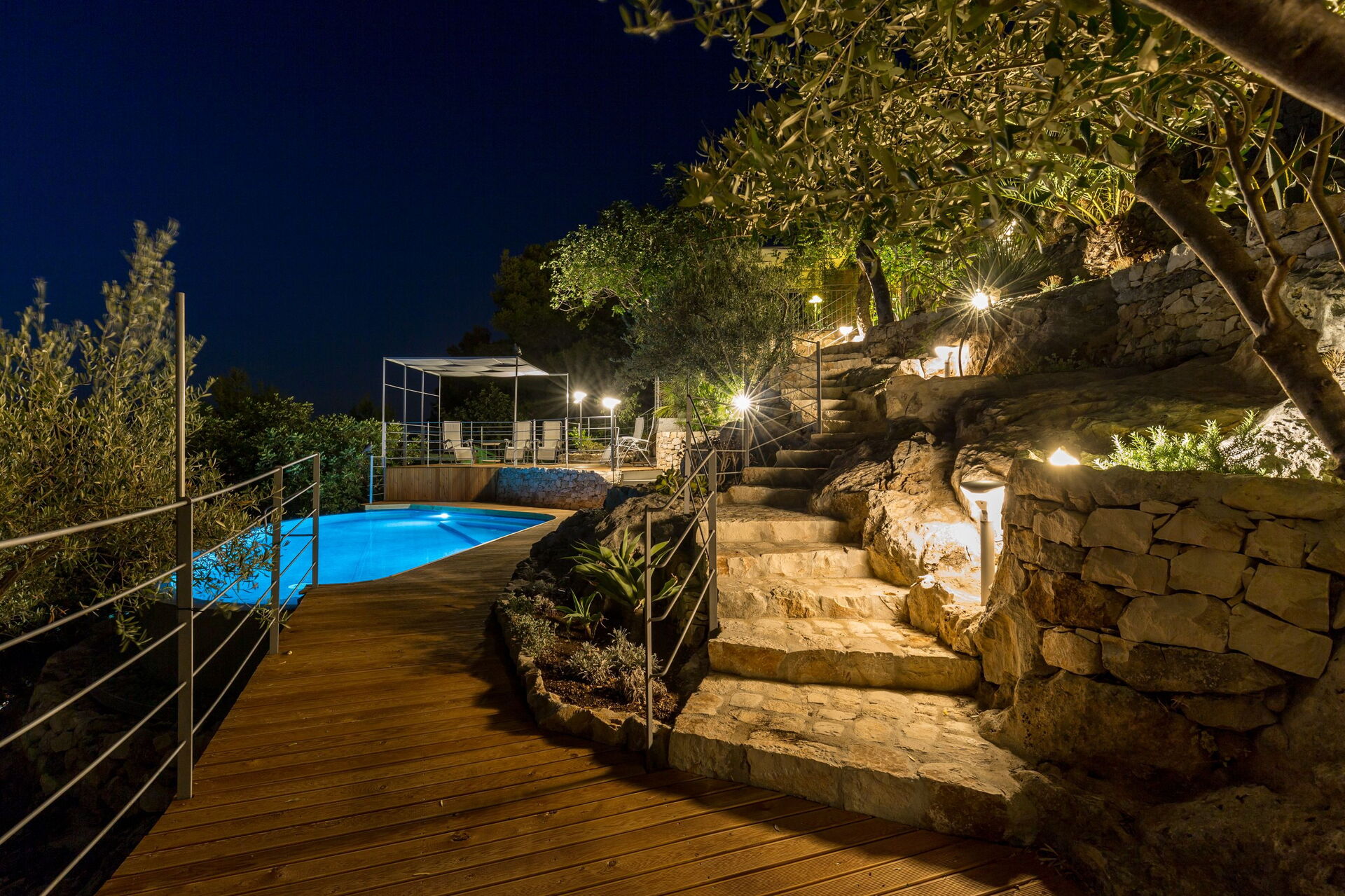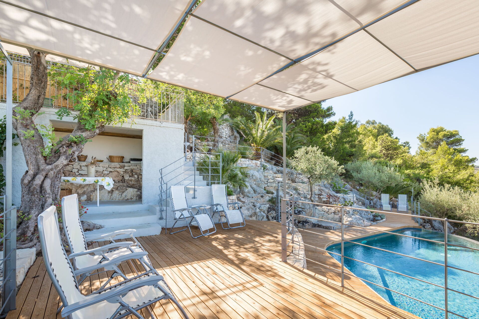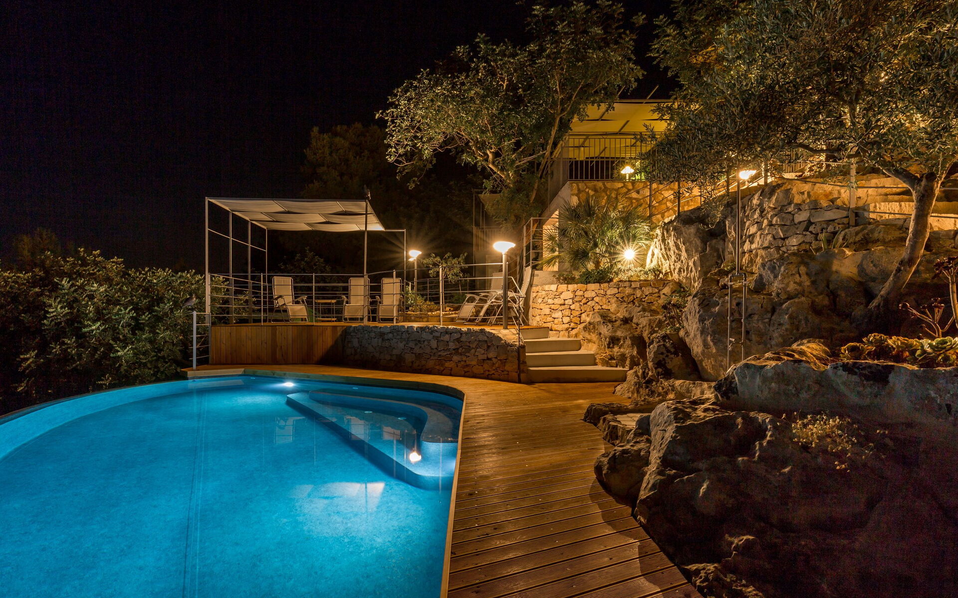 Available to guests: swimming pool with panoramic views for the exclusive use of guests (irregular form, depth 1.35 m), outside spaces created with wooden terraces designed to make use of being outdoors (gazebo, deck chairs, sun loungers, table and chairs for dining alfresco). Bedrooms are all complete with air-conditioning. Parking at the property. Internet Wi-Fi connection.
