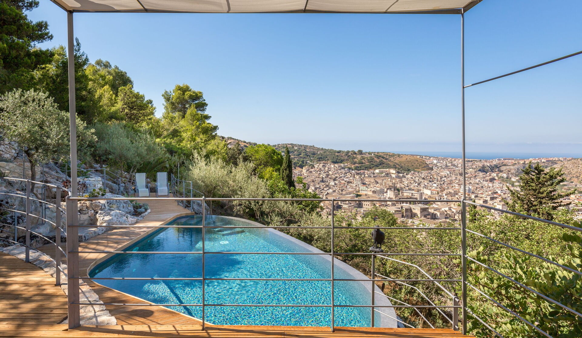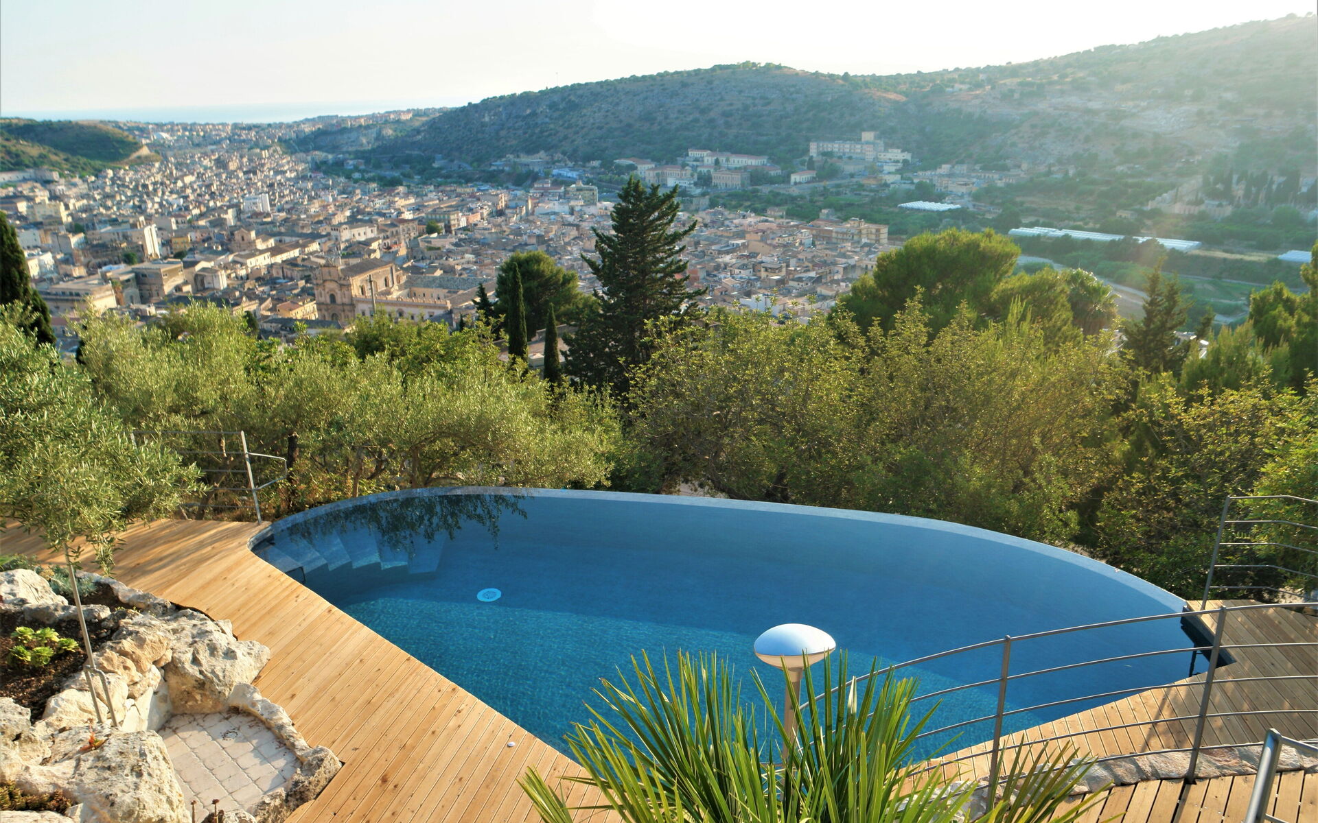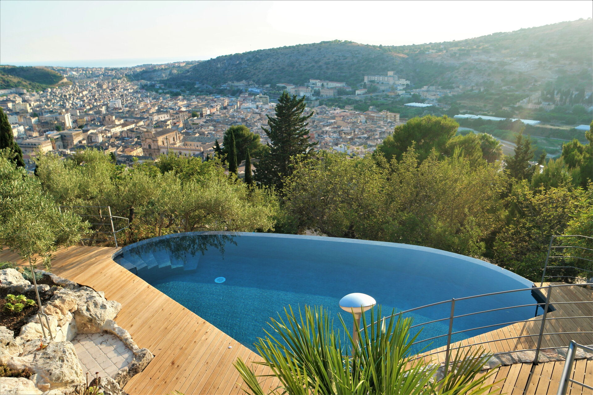 Beautiful villa with swimming pool located in a location with panoramic views and just a short distance from the lovely town of Scicli (Unesco heritage town). The property boasts a beautiful sea view and looks over the historical town centre (1.5 km away).