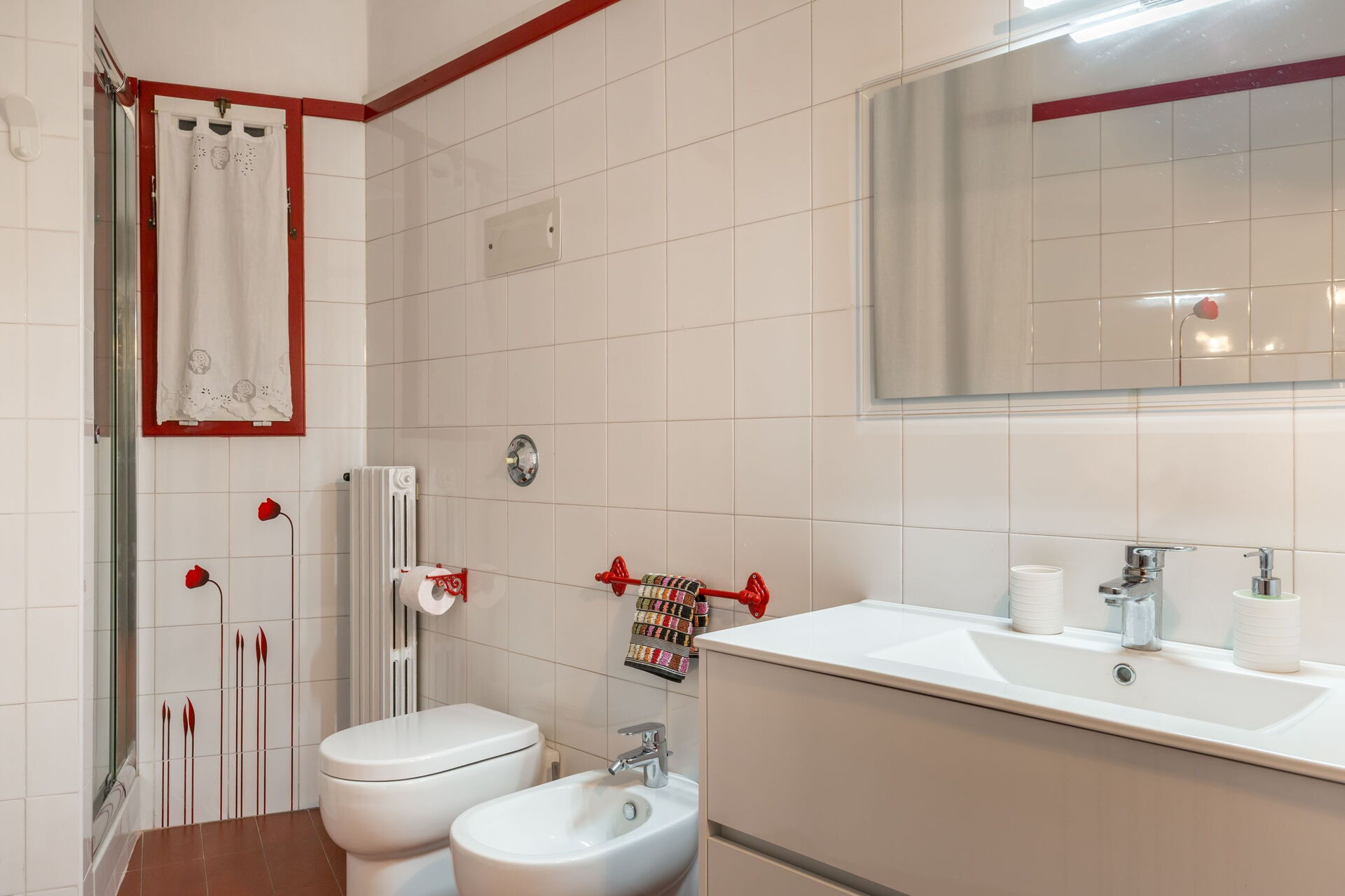 First floor: 2 double bedrooms, 2 twin bedrooms (can be transformed into double bedrooms), 2 bathrooms with showers, bathroom with shower, bathroom with bath and shower, living room with piano, kitchen (fridge, freezer, washing machine, microwave).