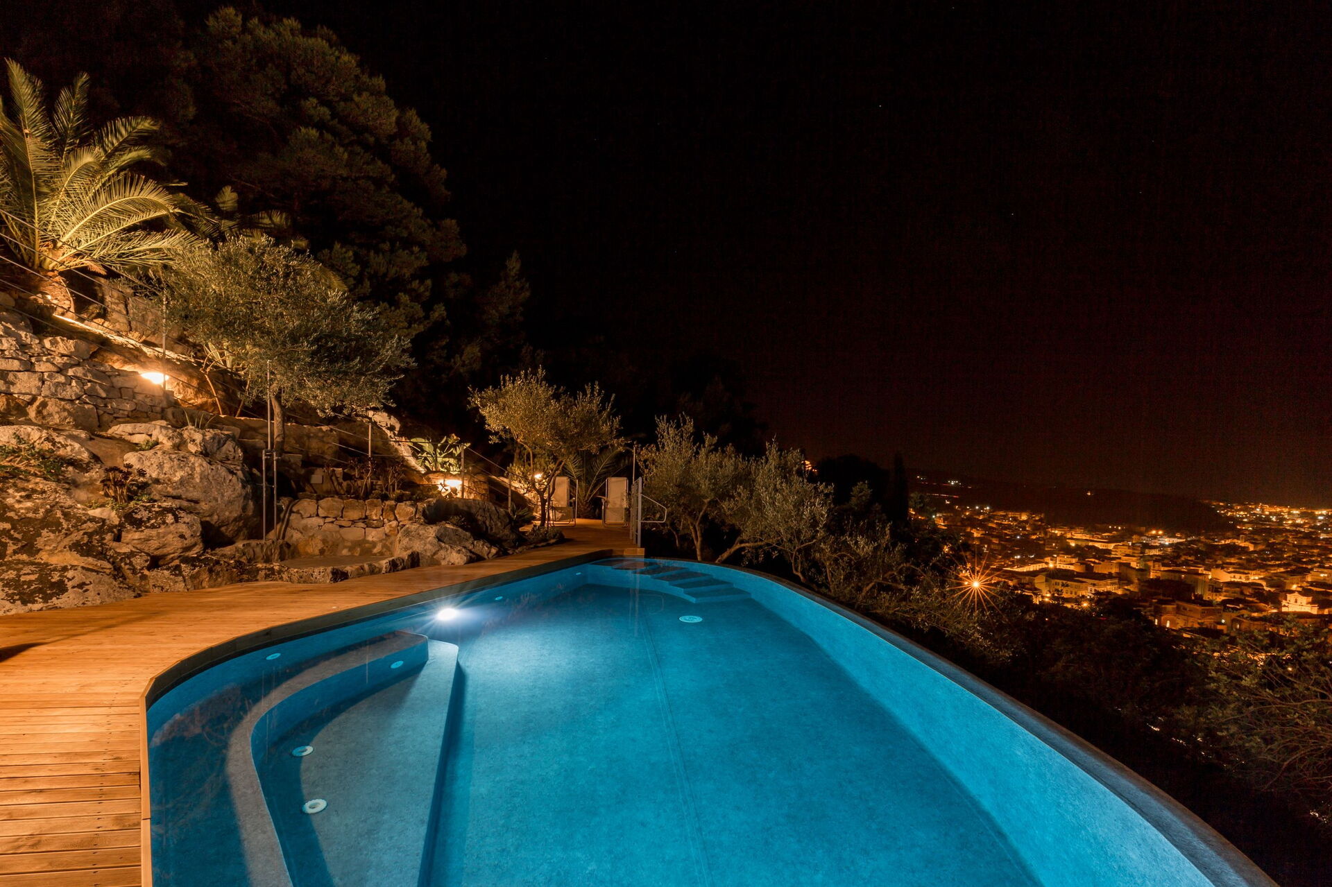 The villa develops over 2 levels and outside it offers a beautiful swimming pool and a large sun lounging area among Olive and Carob trees. Guests can also enjoy many corners tucked away for relaxing in on the numerous terraces that surround the villa.