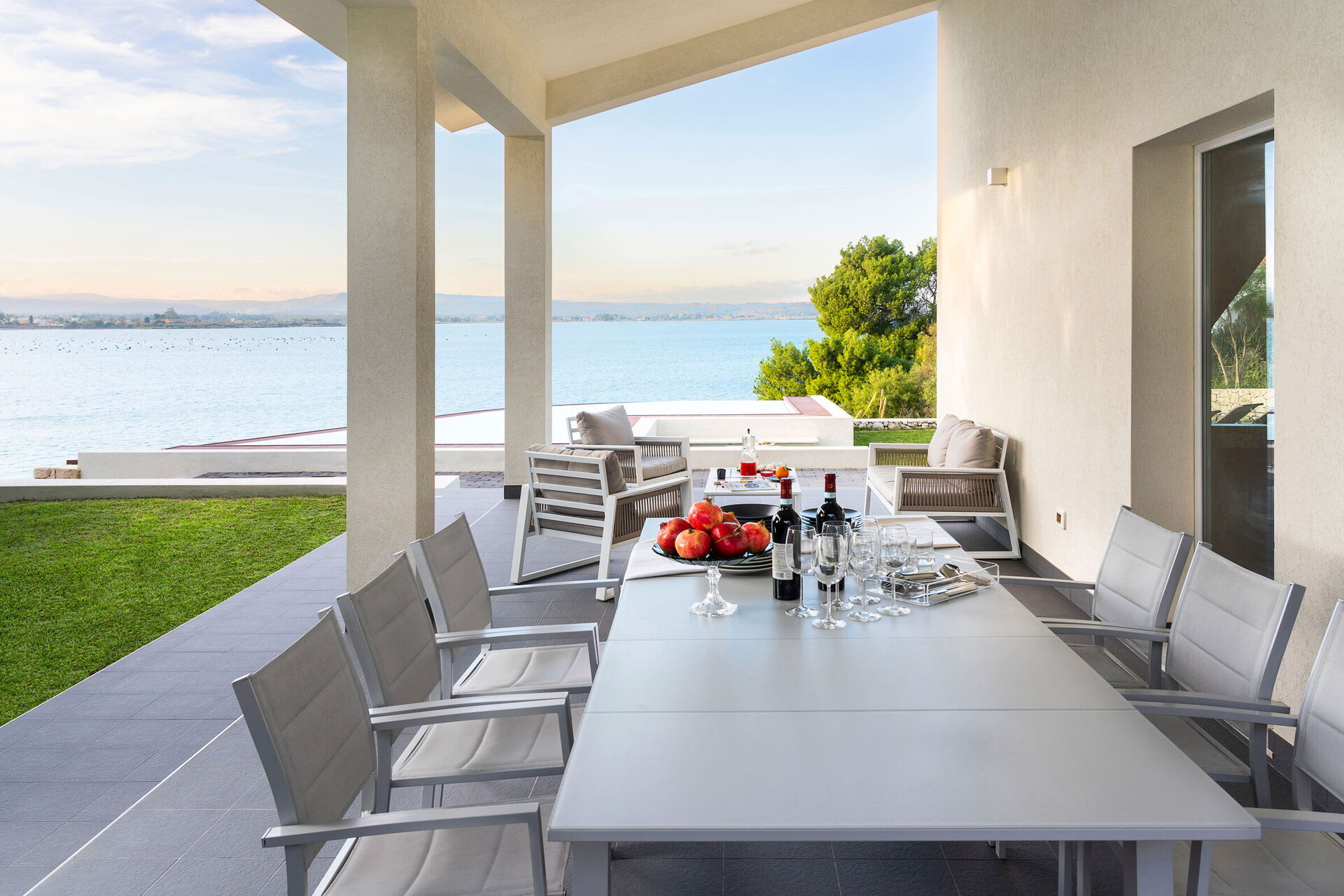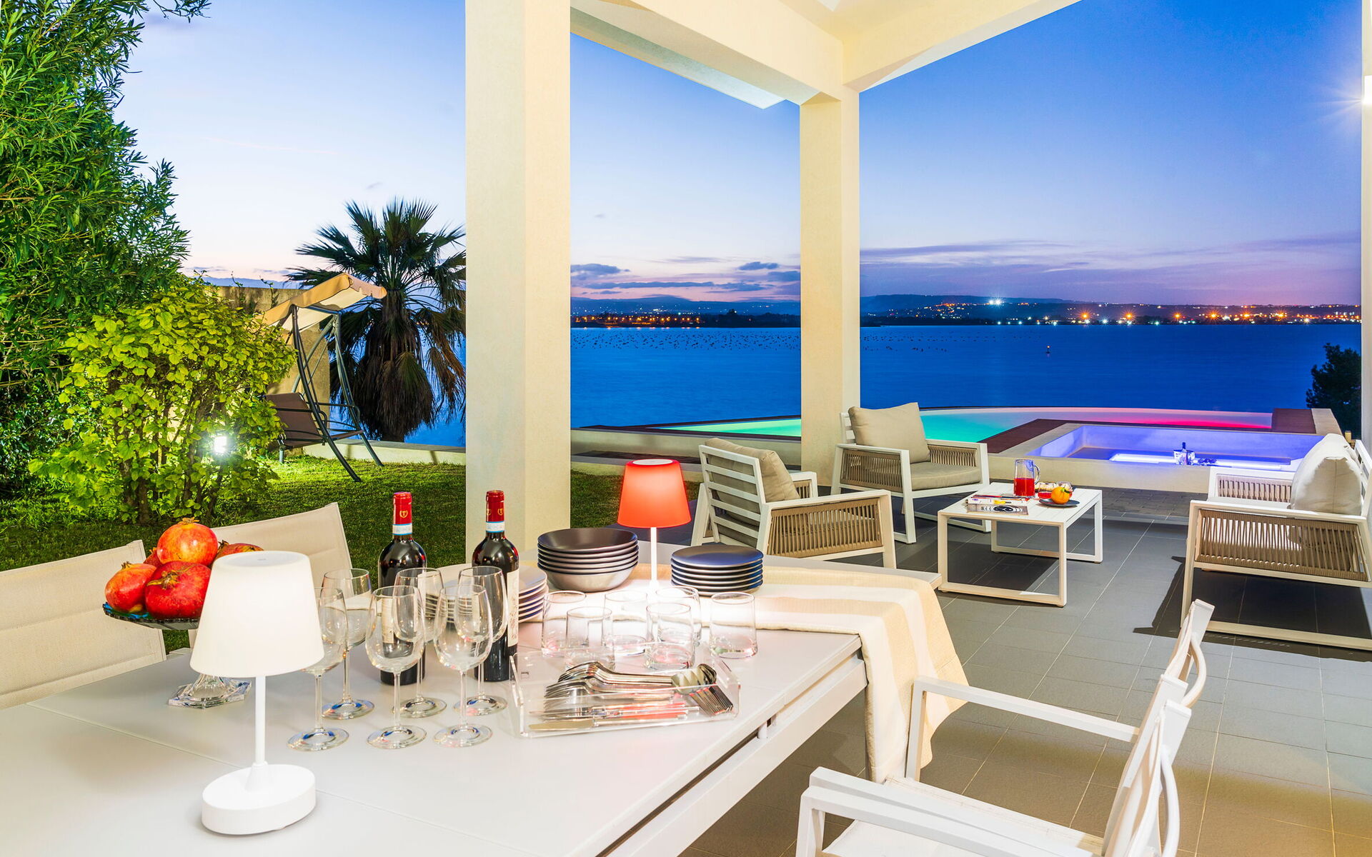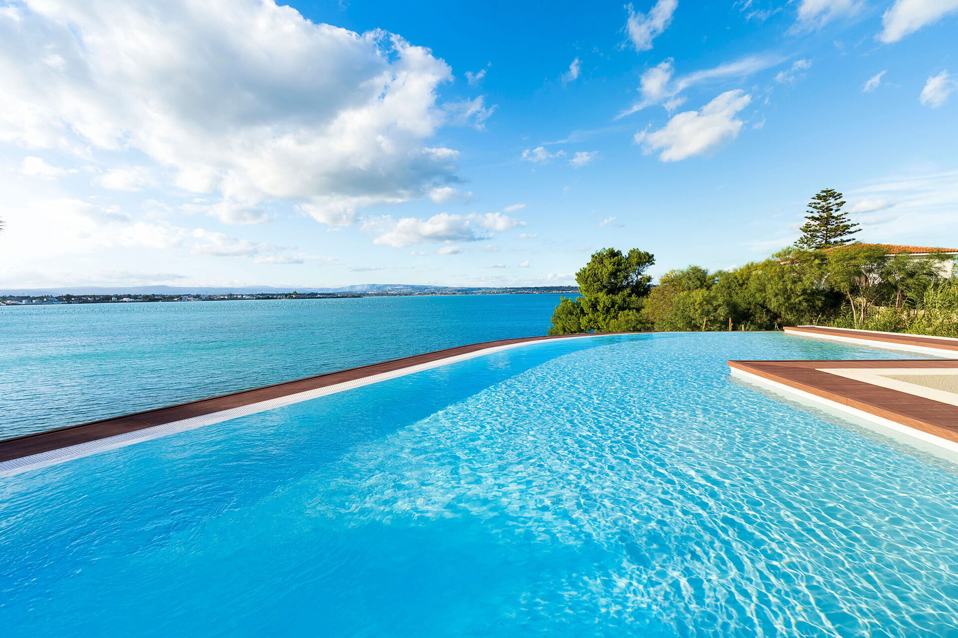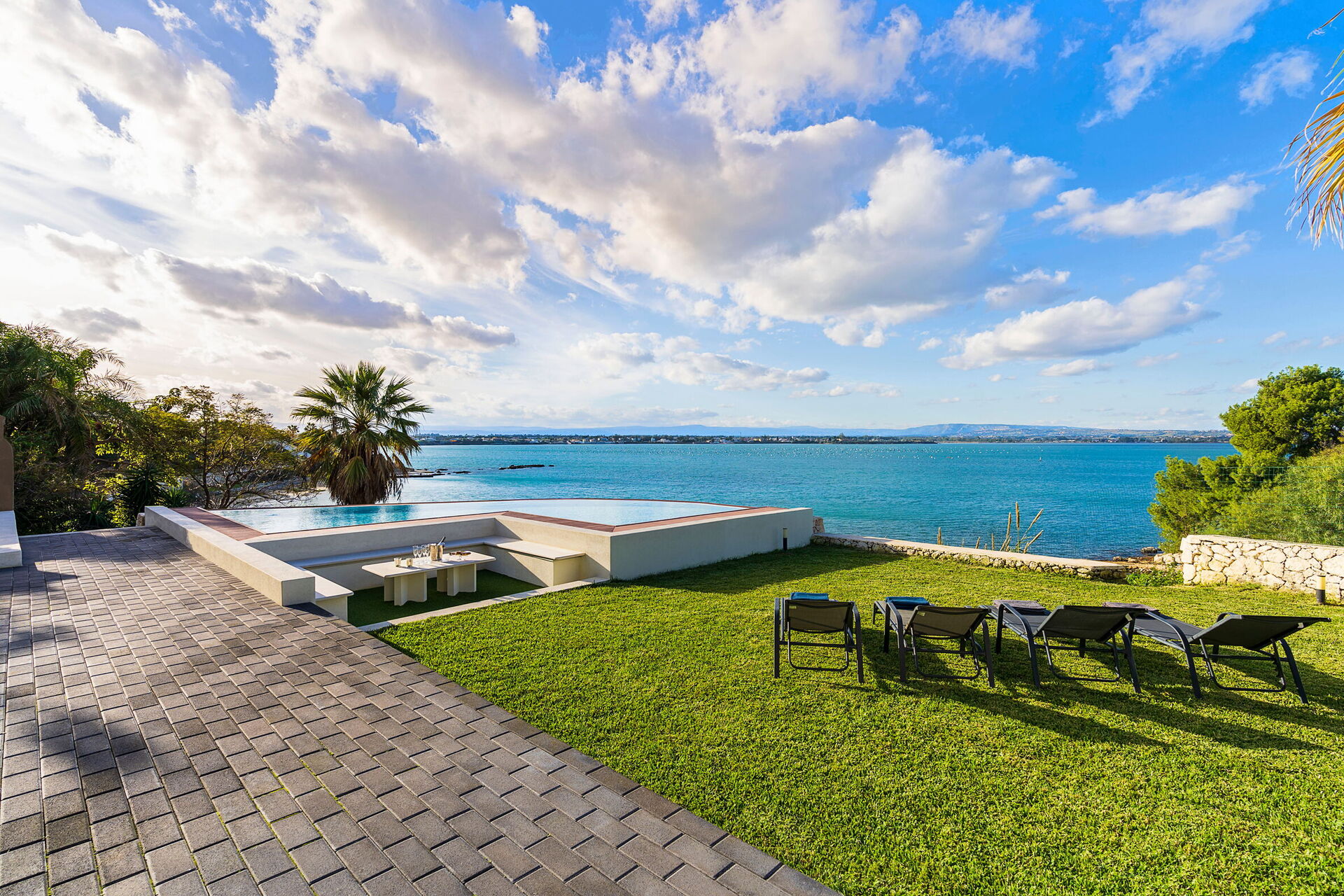 Villa Maddalena is a luxury residence located near Ortigia, Syracuse, on the Maddalena Peninsula, with private and direct access to the cliff and the sea, infinity pool (5 x 8 x 0.90 m) and spacious terrace.