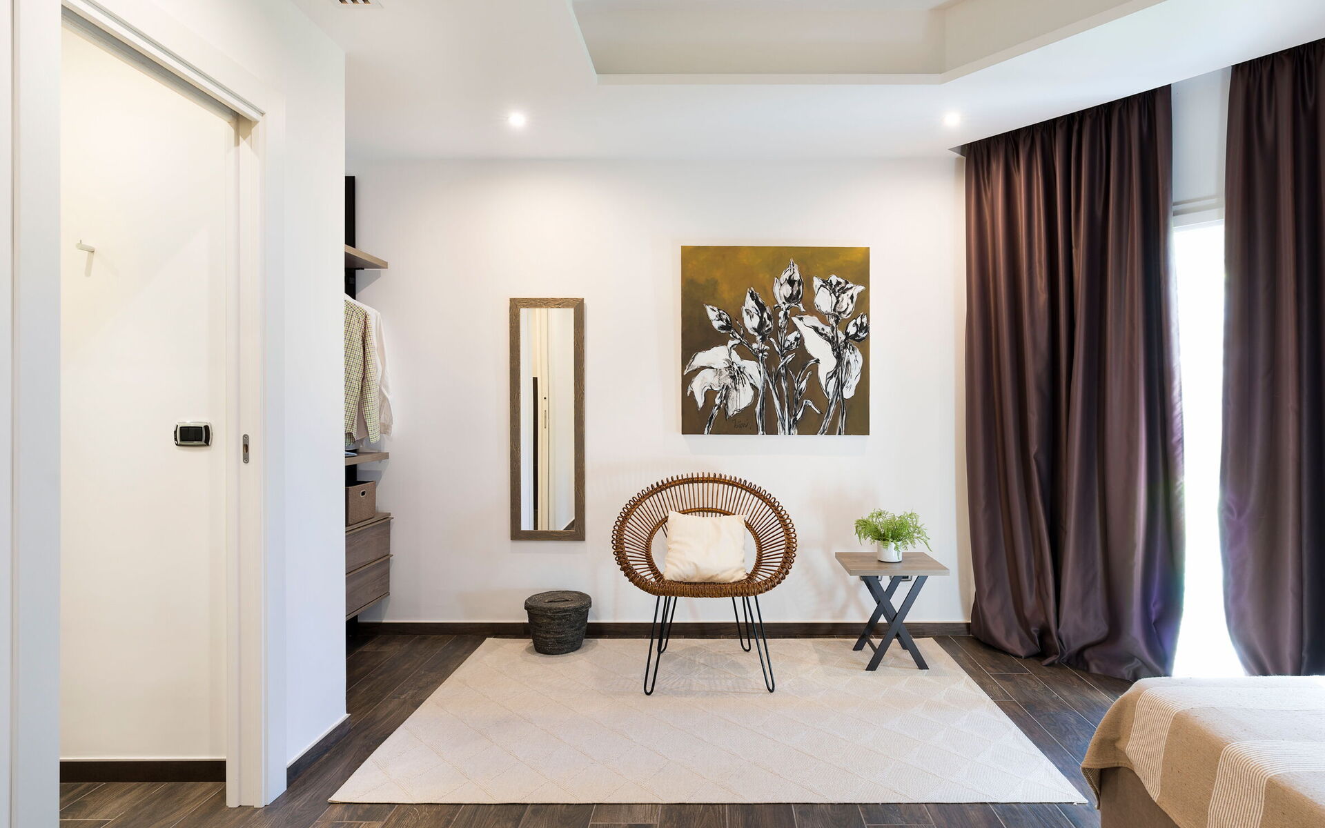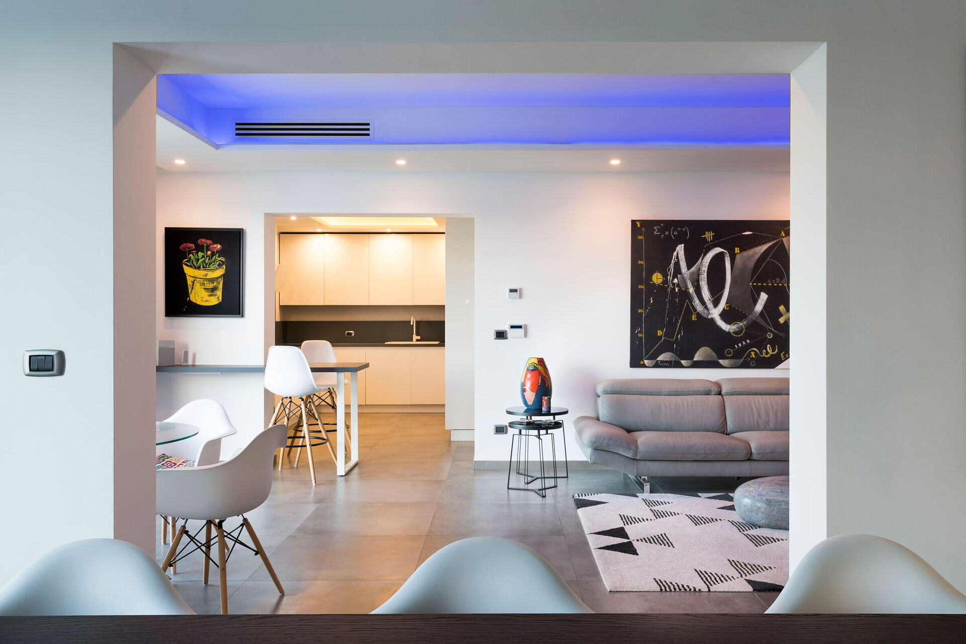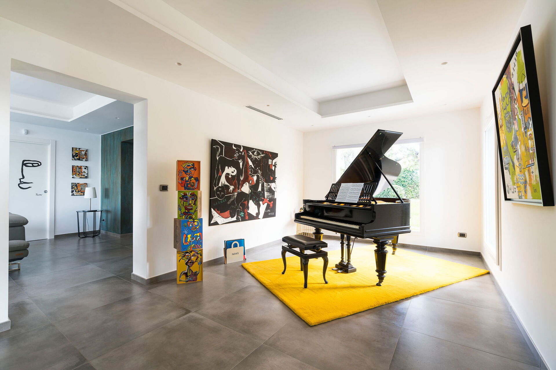 The house is recently built and presents itself as a contemporary residence. It has large and elegant spaces, with a design that includes authentic designer pieces.