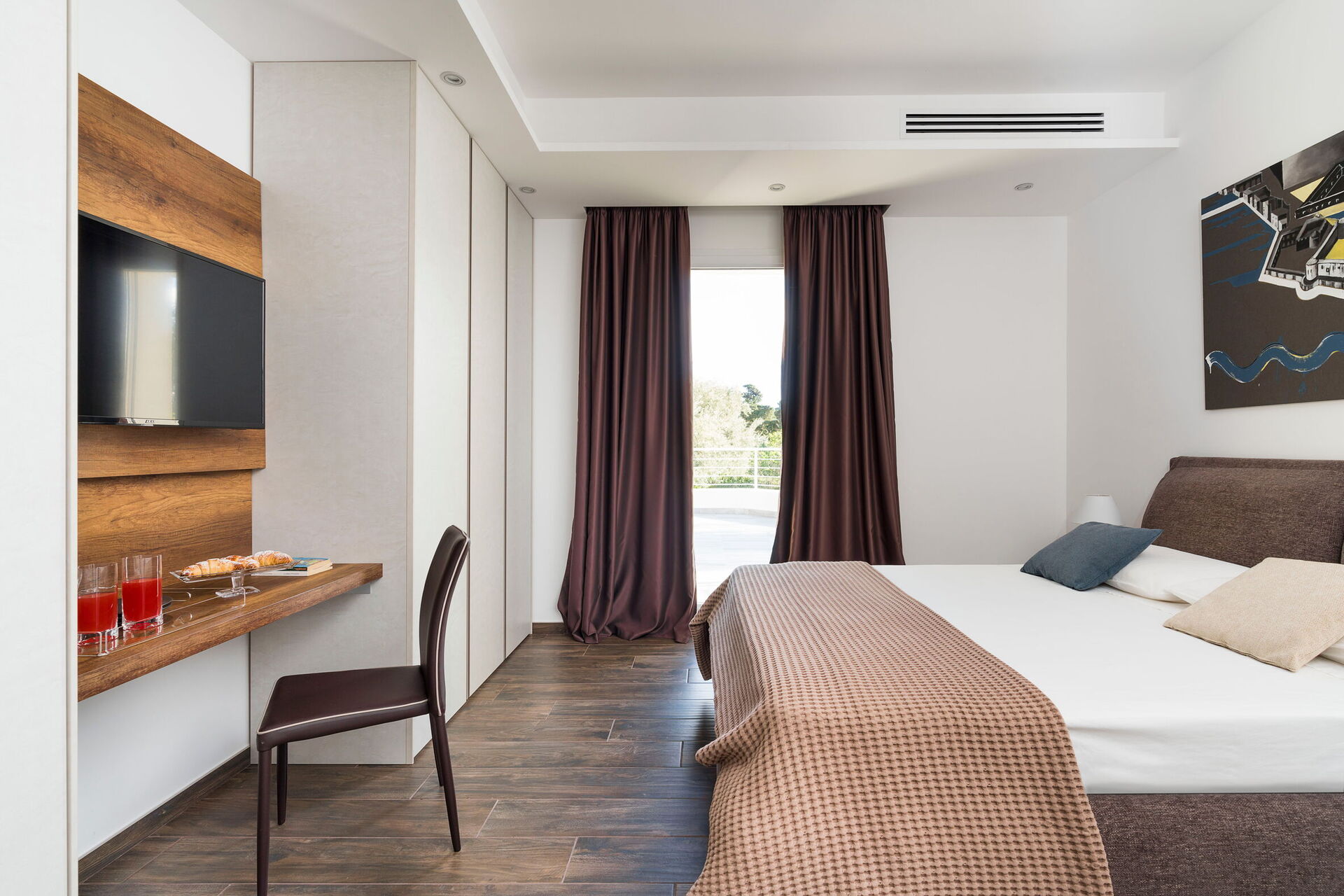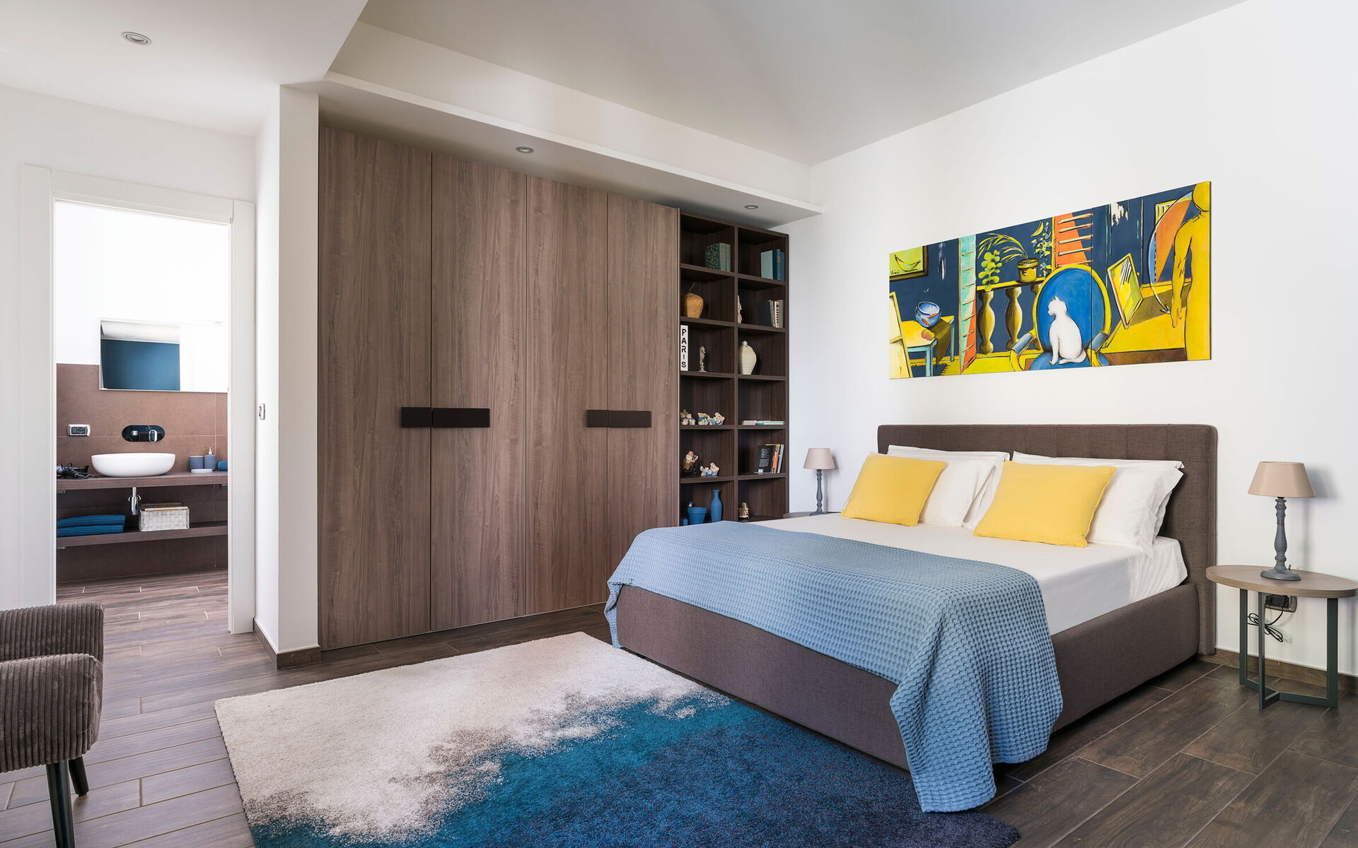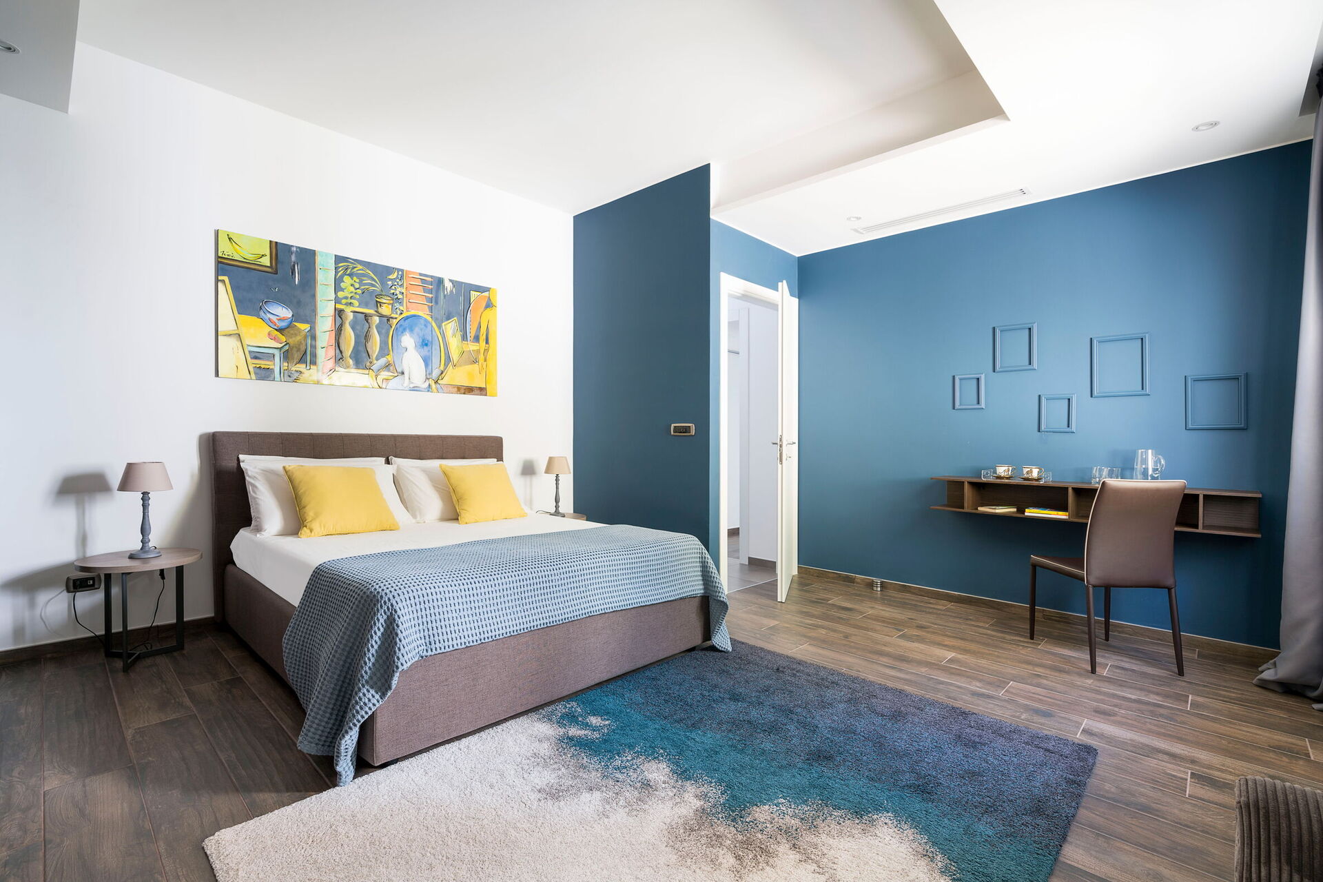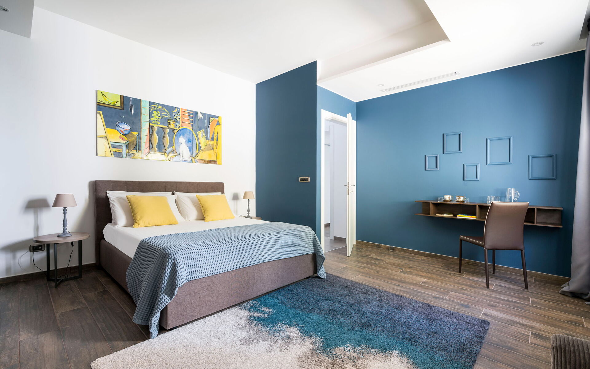 Bedroom + Ensuite Bathroom: double bed, WIFI internet, air conditioning, television, double basin, toilet, bidet, bathtub, shower, hairdryer.