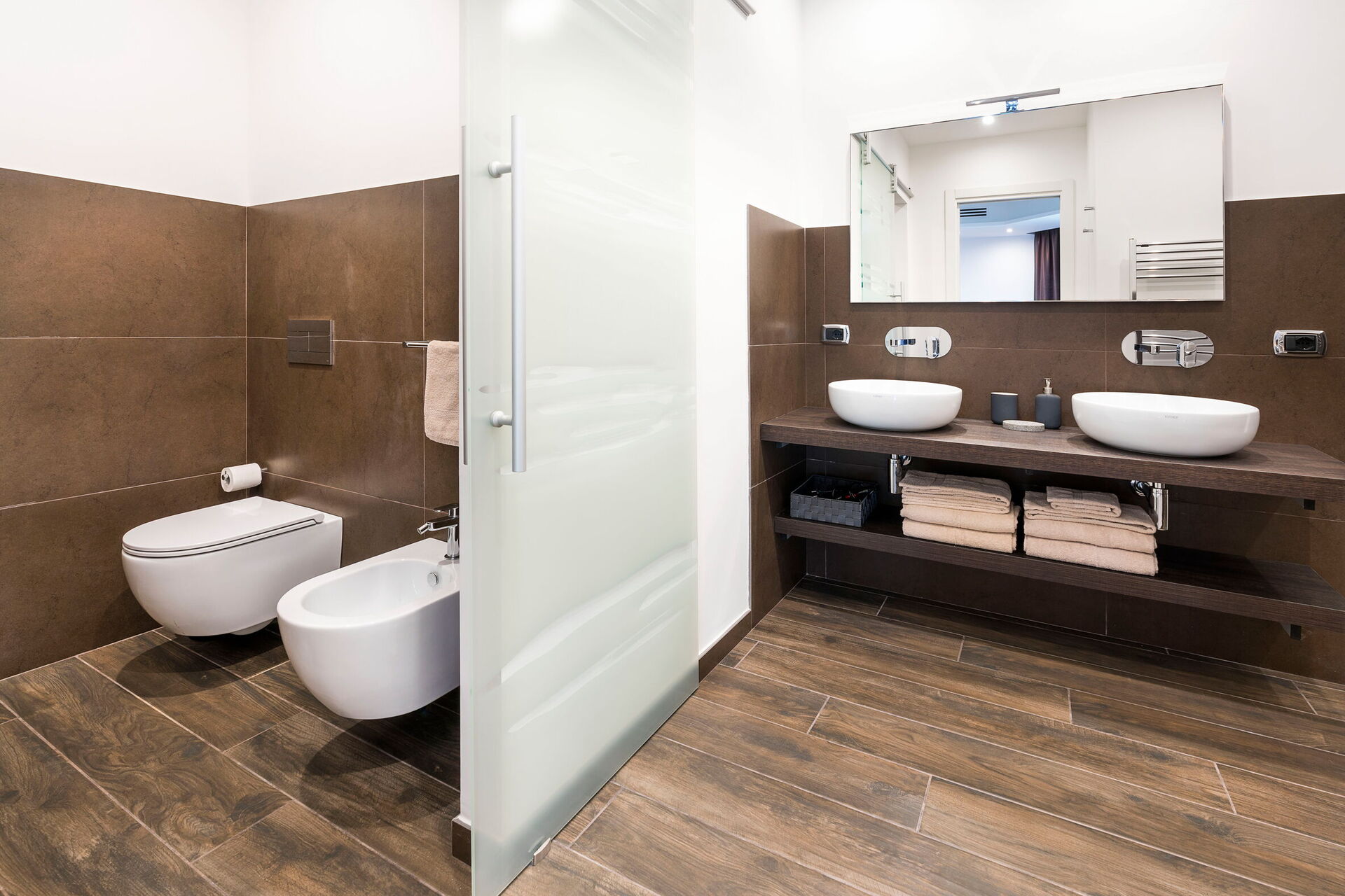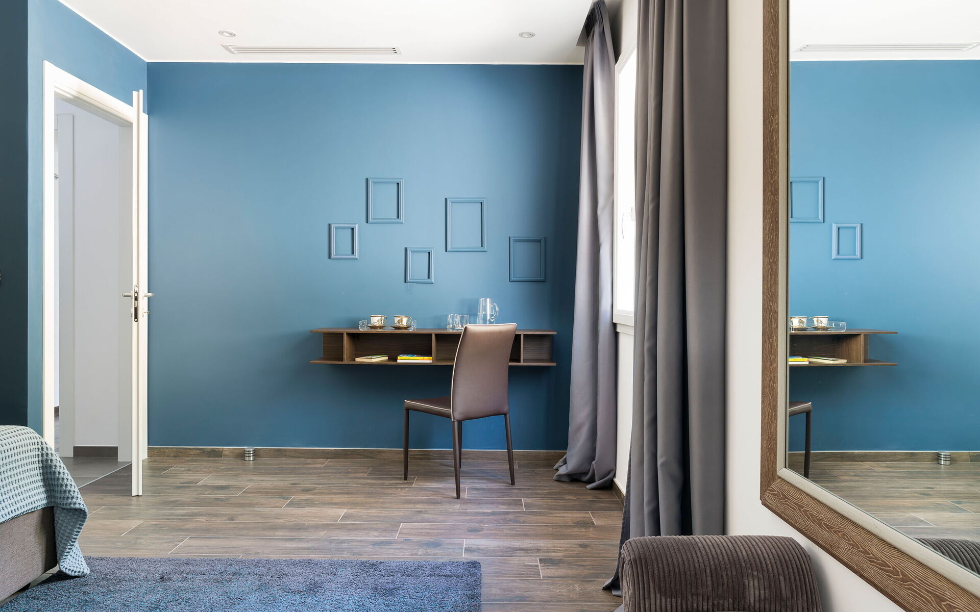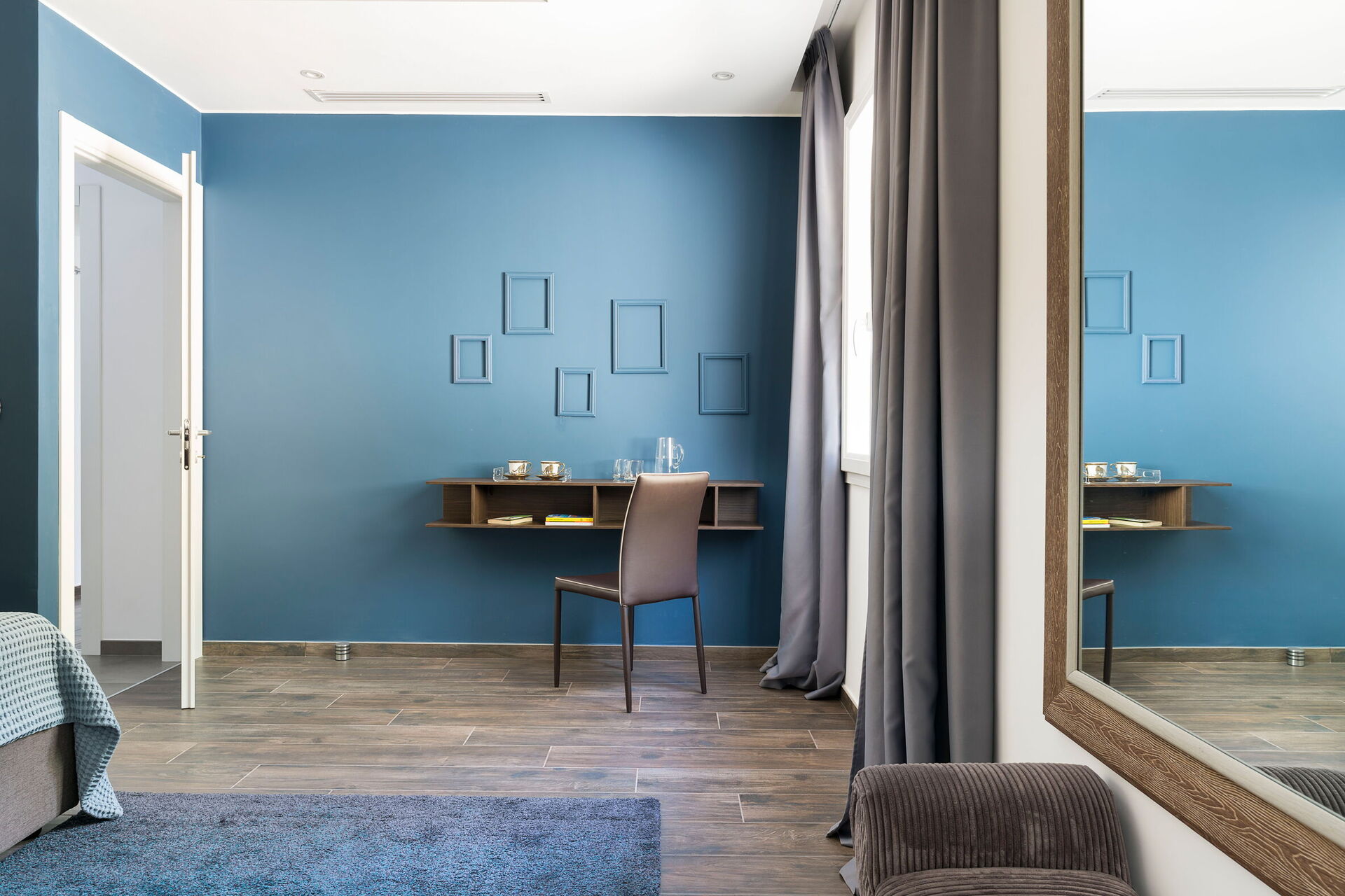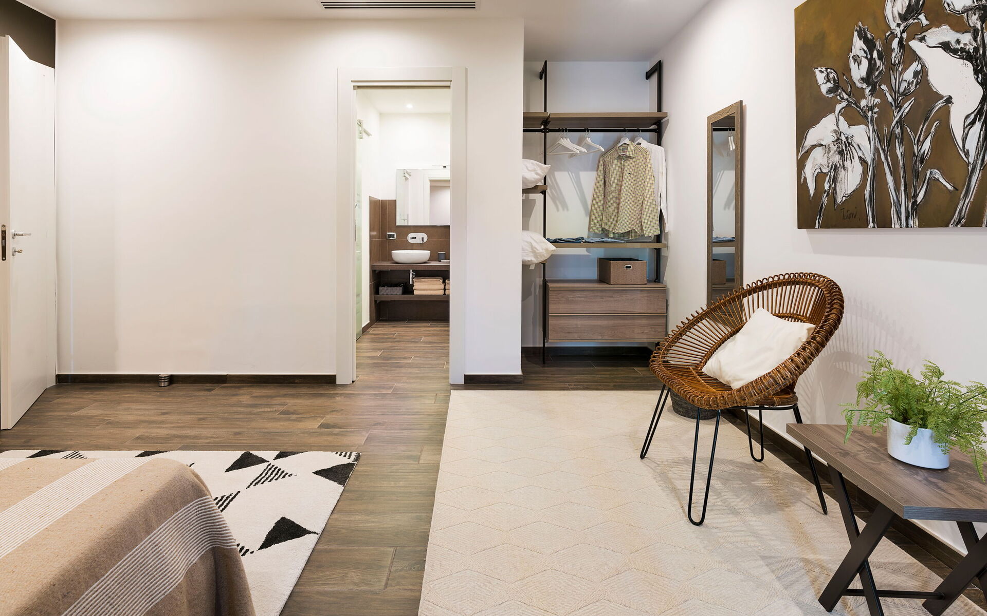 Bedroom + Ensuite Bathroom: double bed, WIFI internet, air conditioning, television, double basin, toilet, bidet, bathtub, shower, hairdryer.