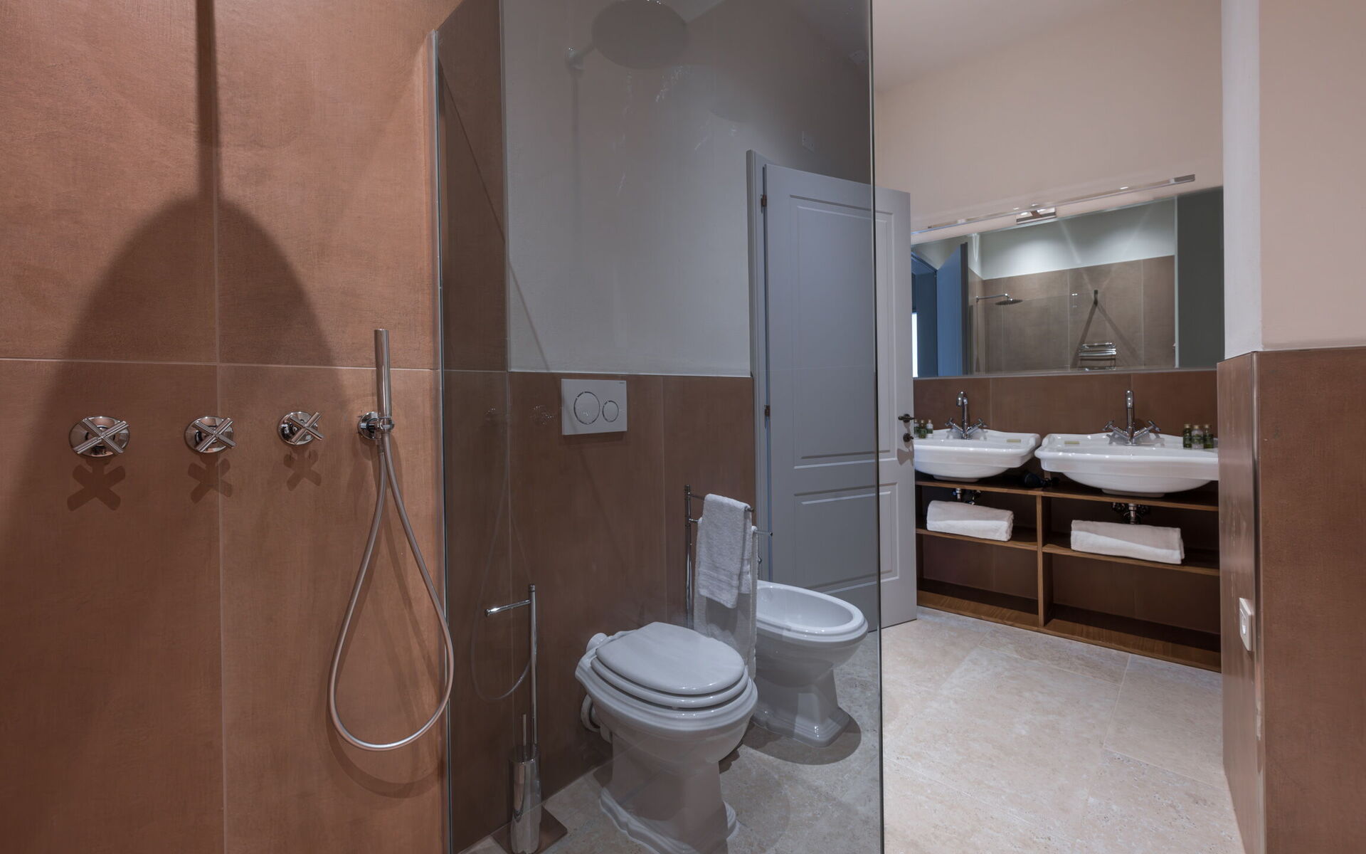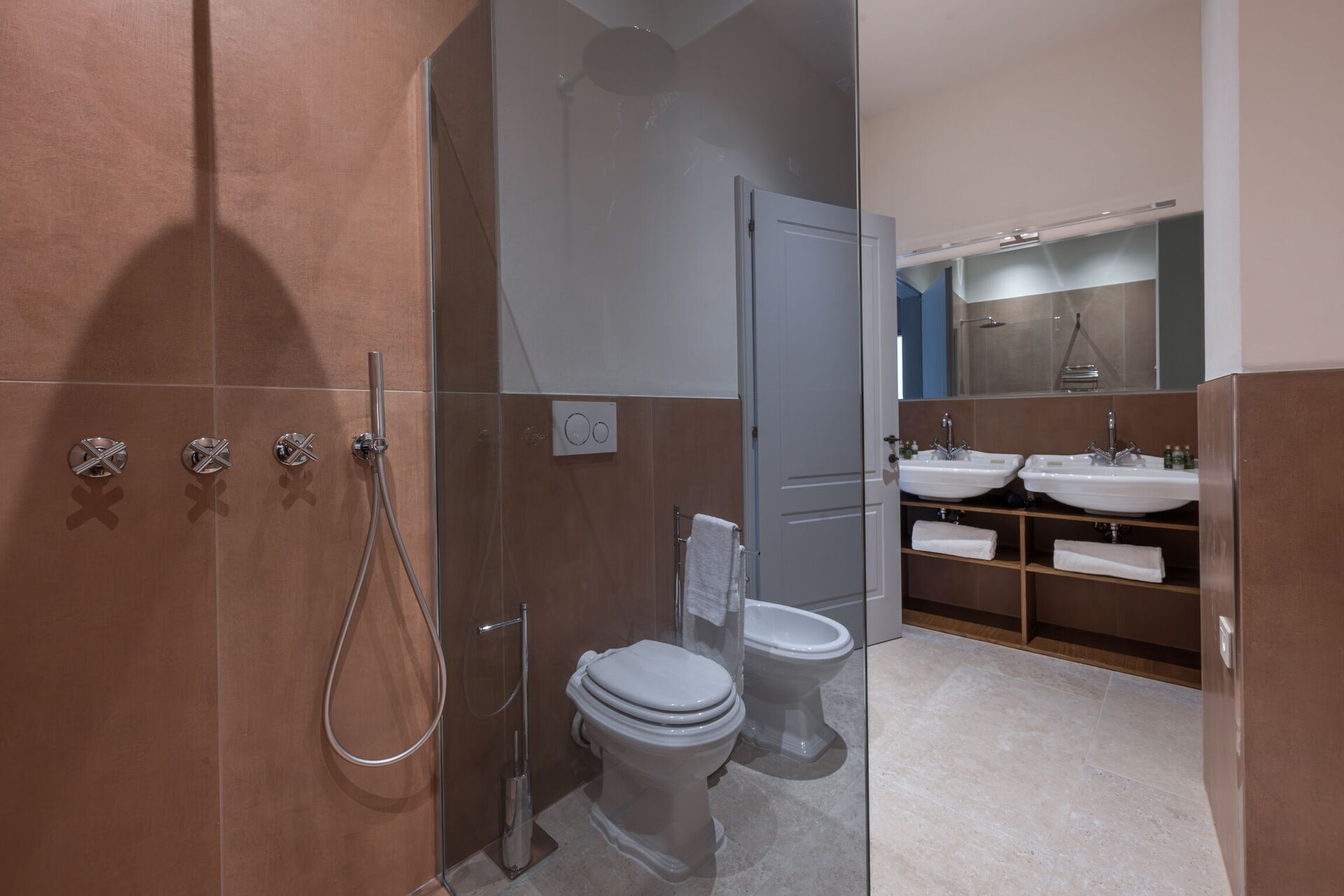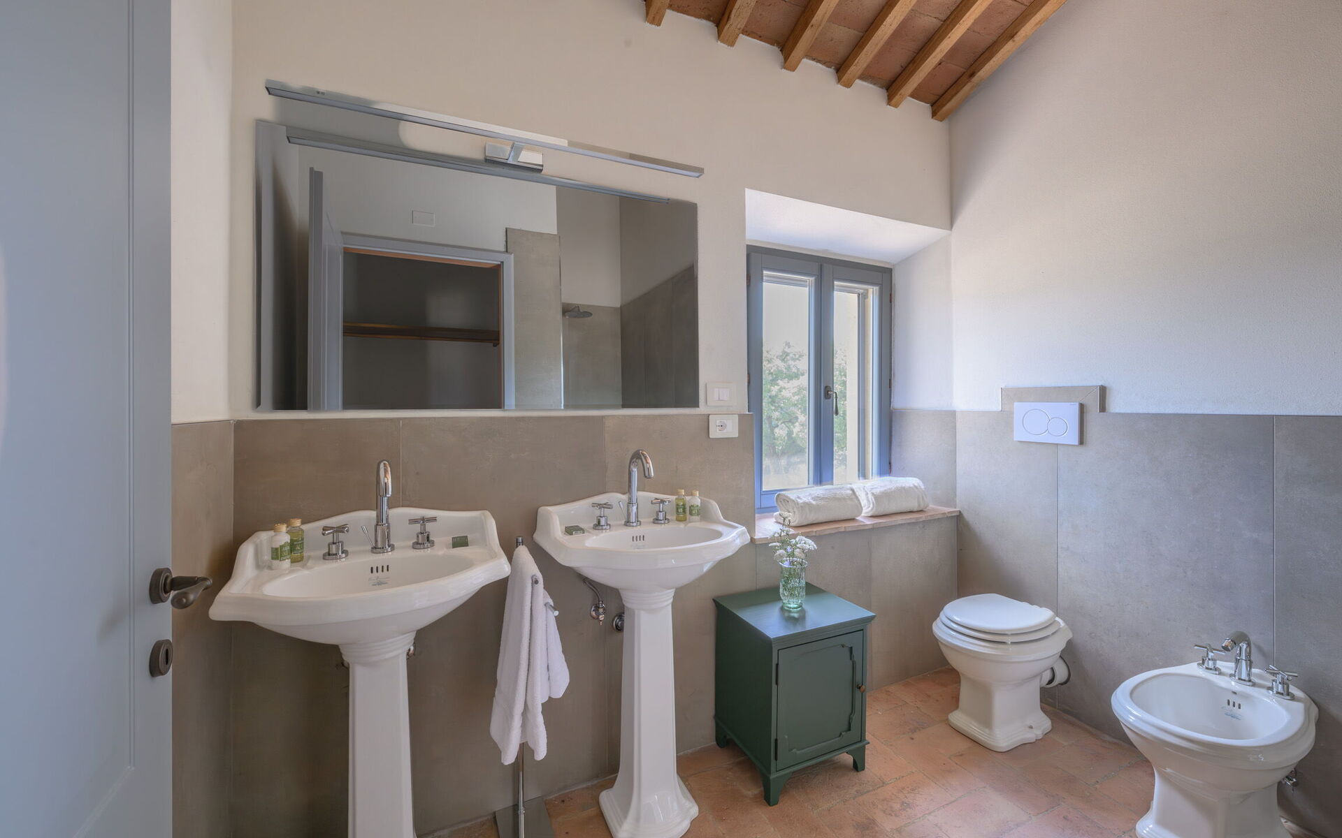 Bathroom: toilet, bidet, shower.