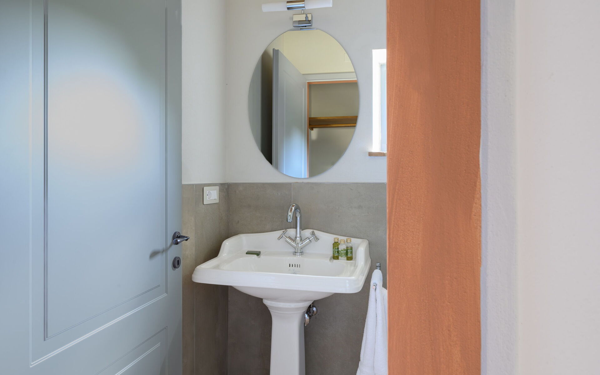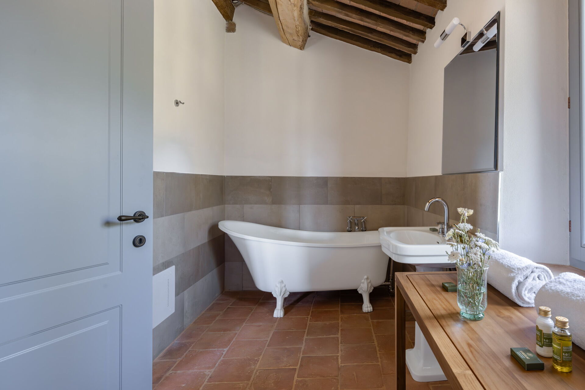 Bedroom + Ensuite Bathroom 1: two single beds, baby bed, internet, air conditioning, two double basins, bidet, bathtub, shower, hairdryer.