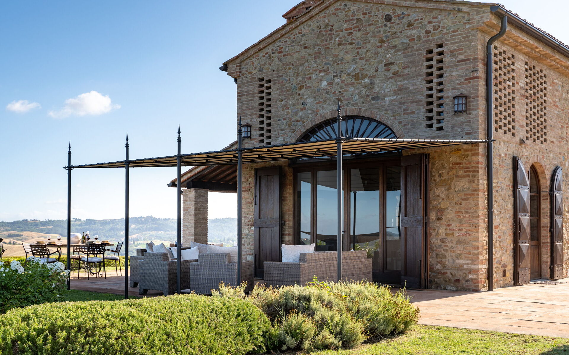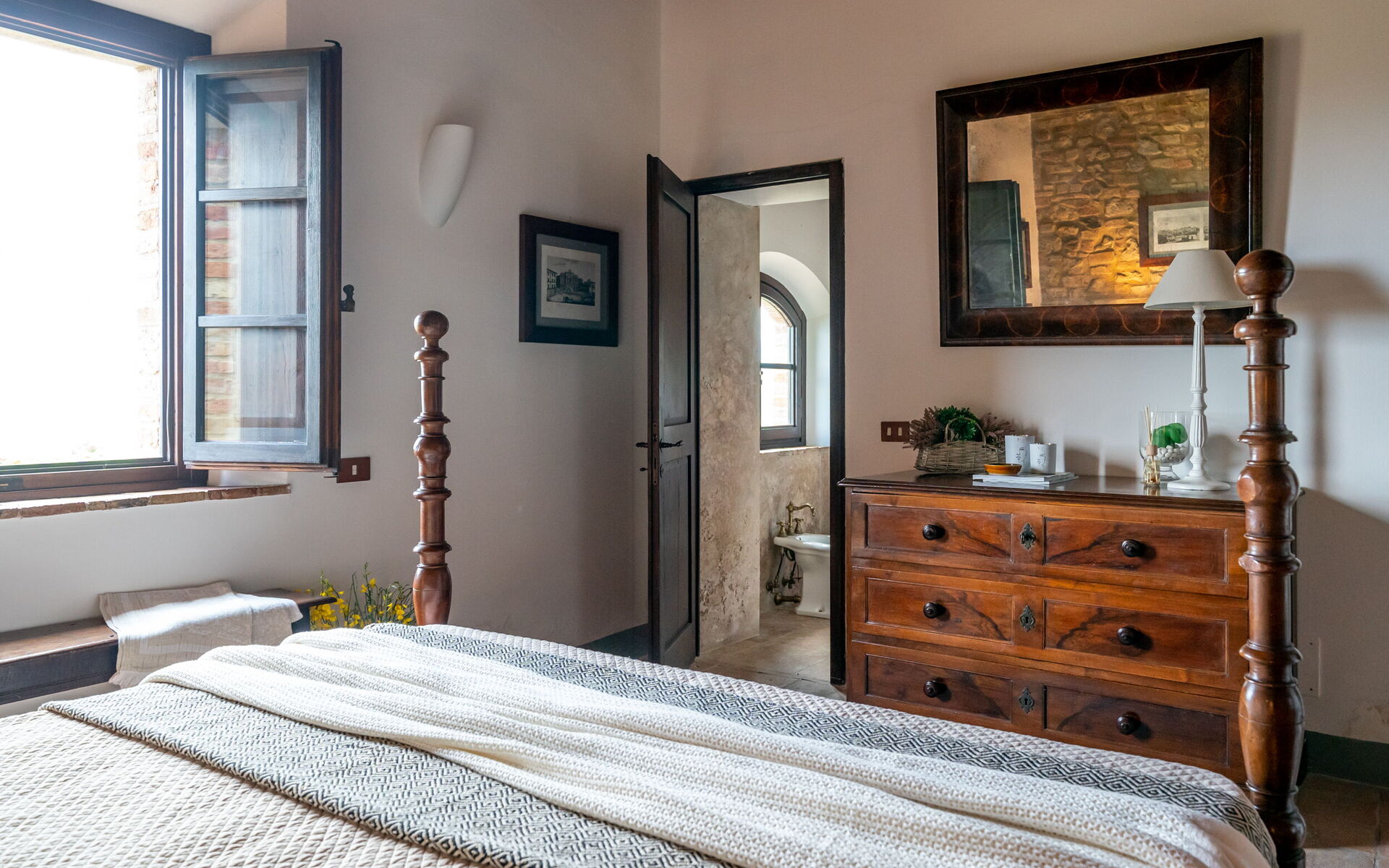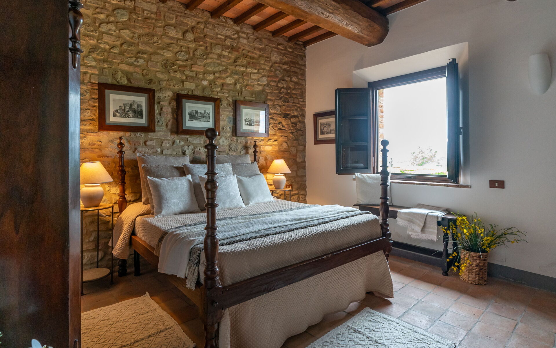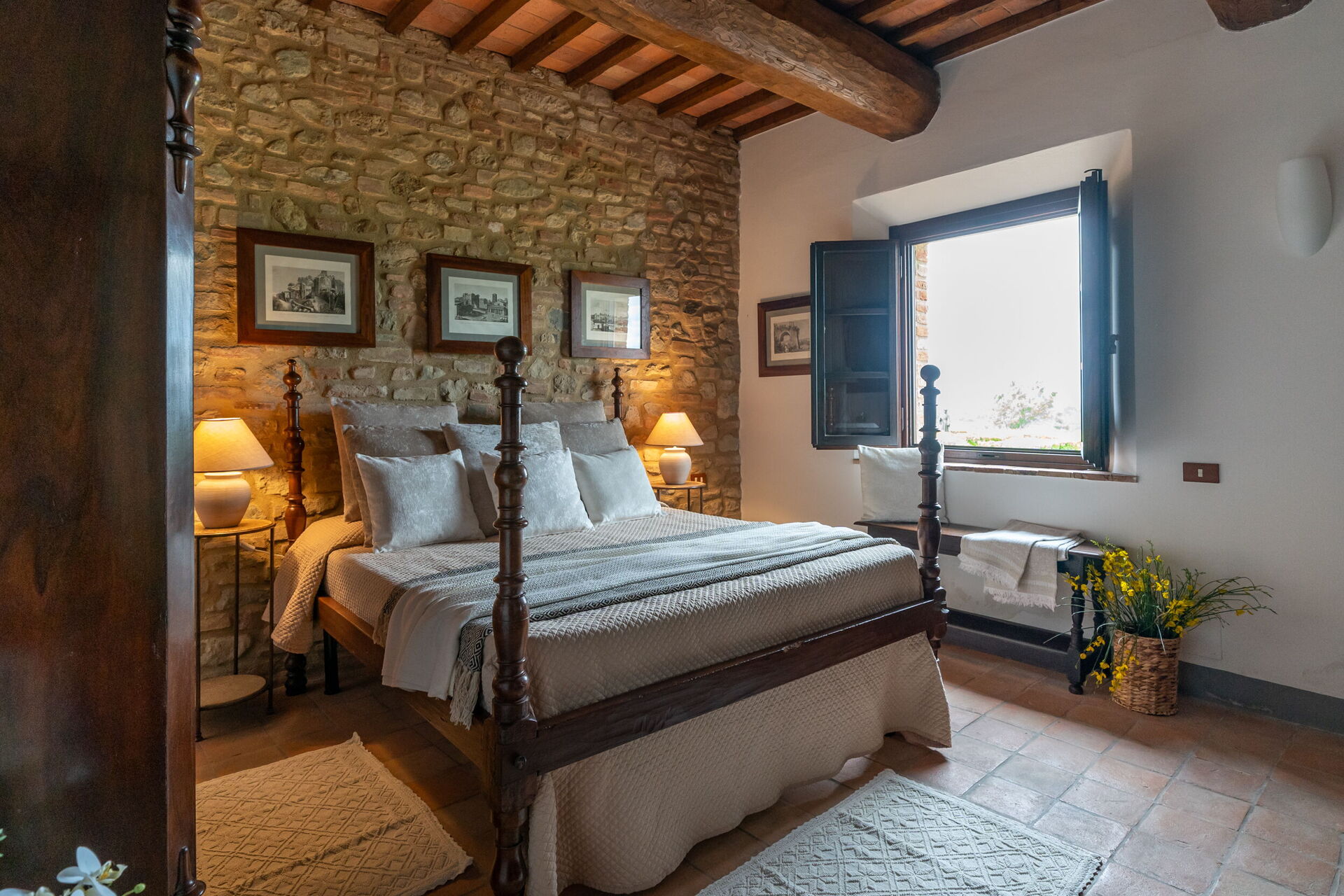 Lovingly restored and elegantly furnished, this exclusive villa offers guests the utmost in luxury and tranquility. With 3 bedrooms, numerous common spaces, and all amenities, it can accommodate up to 10 people.