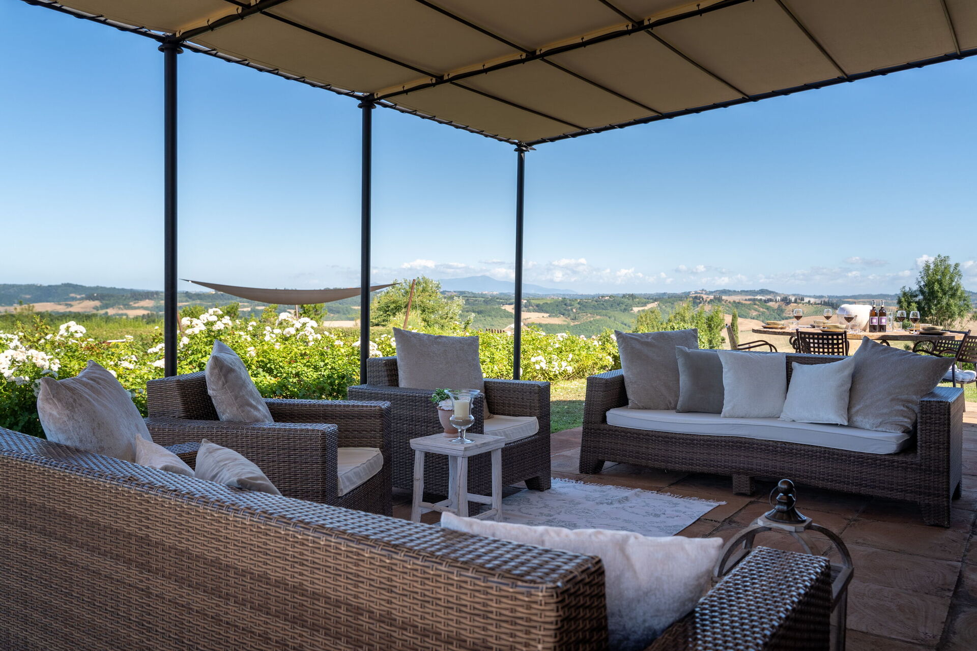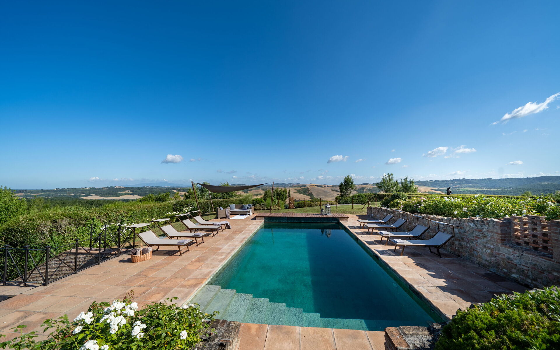 Villa Rinaldi’s strategic location offers absolute privacy, and is also close to the area’s characteristic spots, such as Volterra, San Gimignano, Pisa, Lucca, Lajatico and many others.
