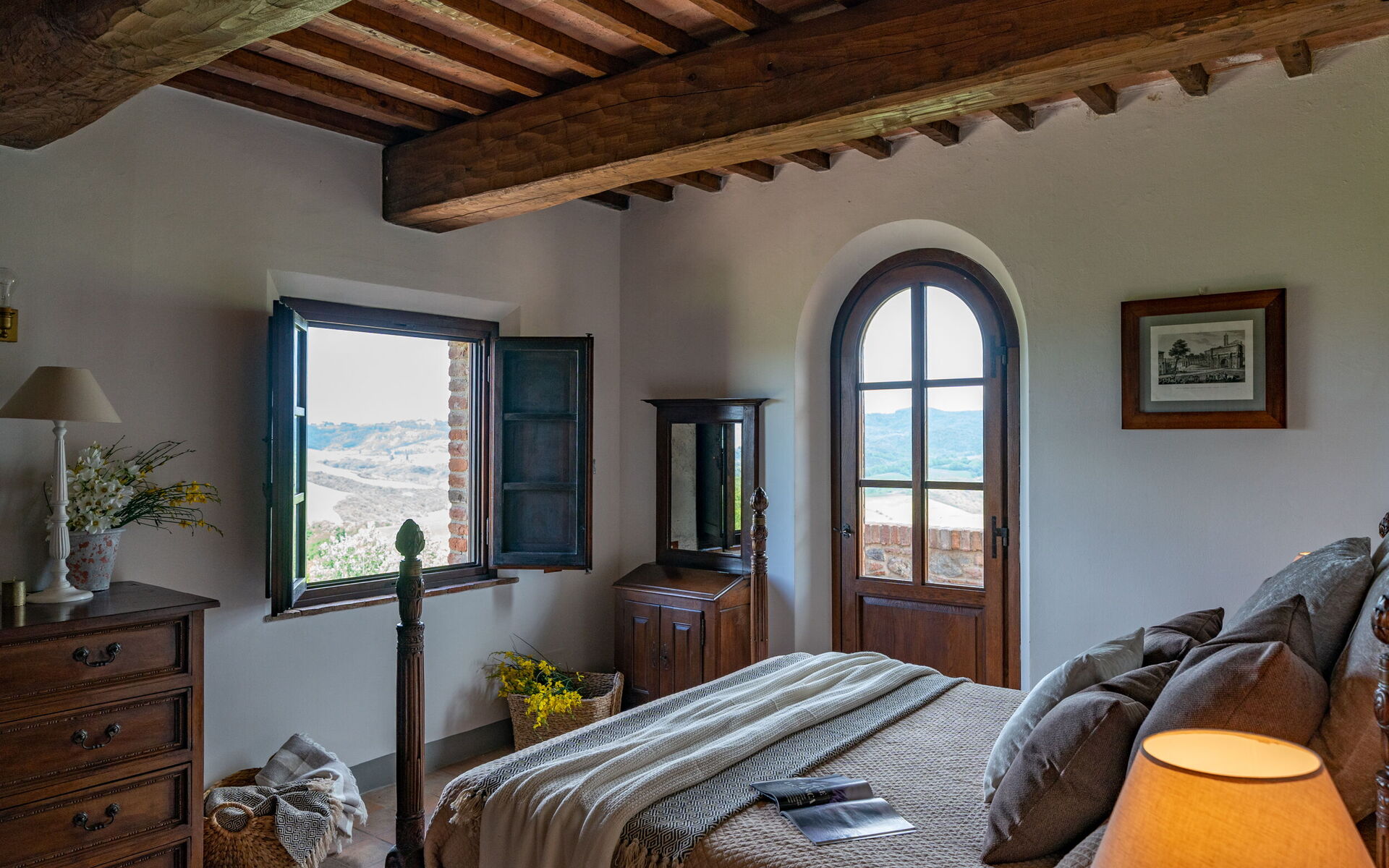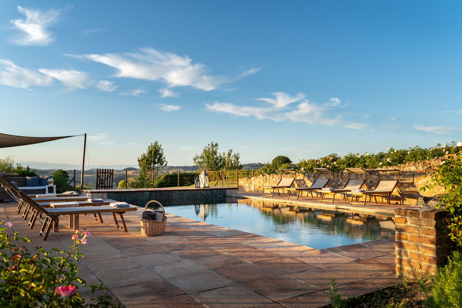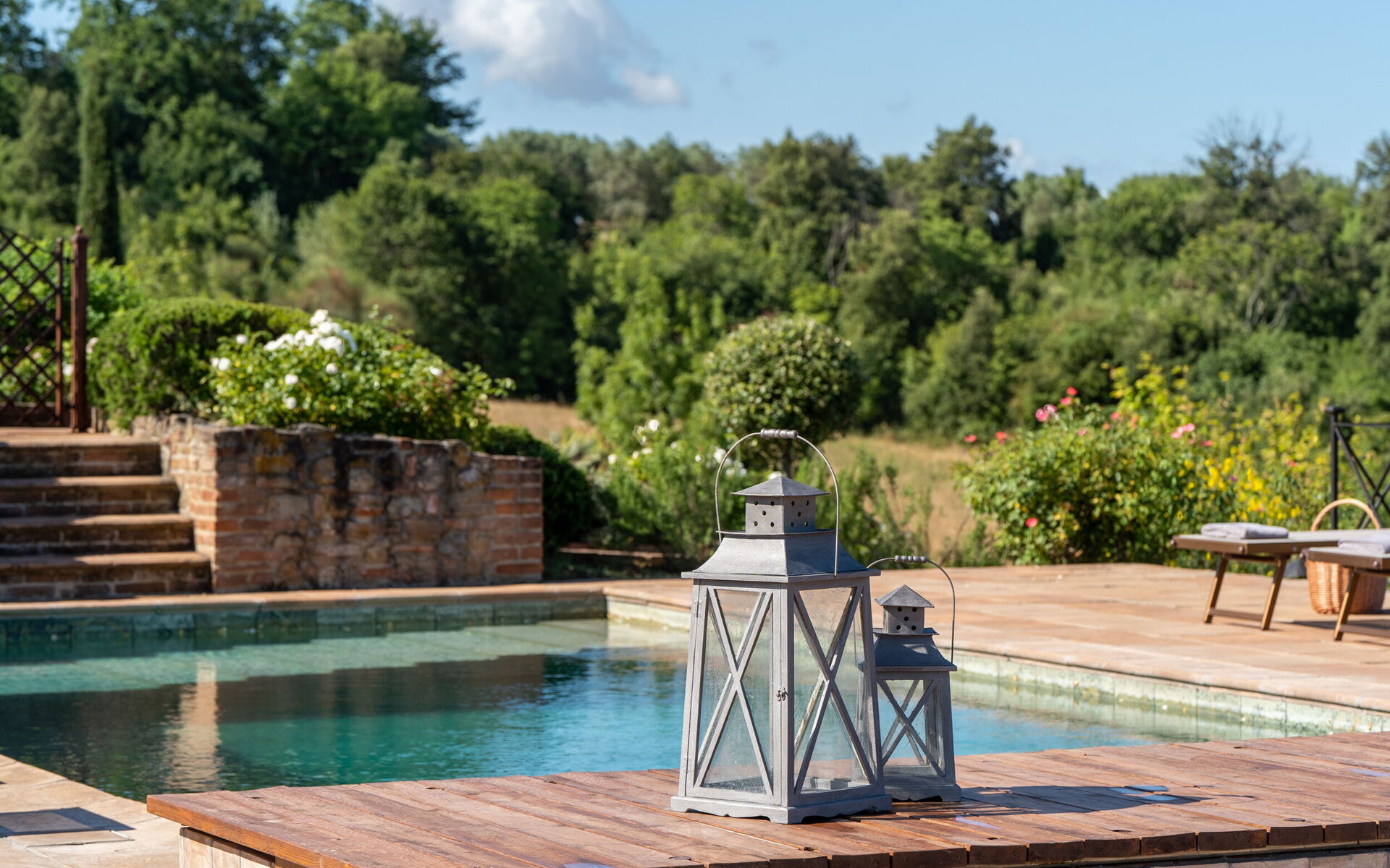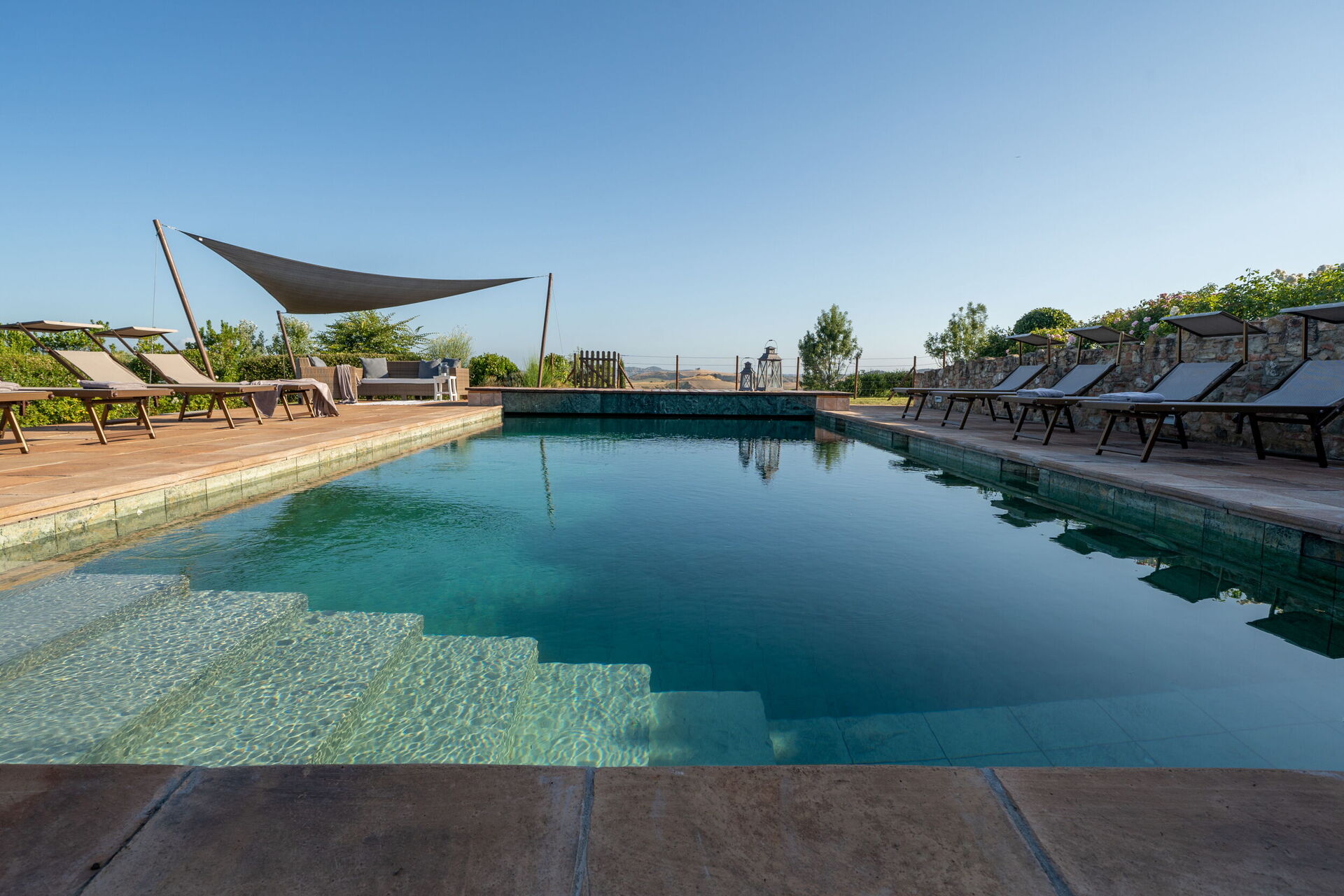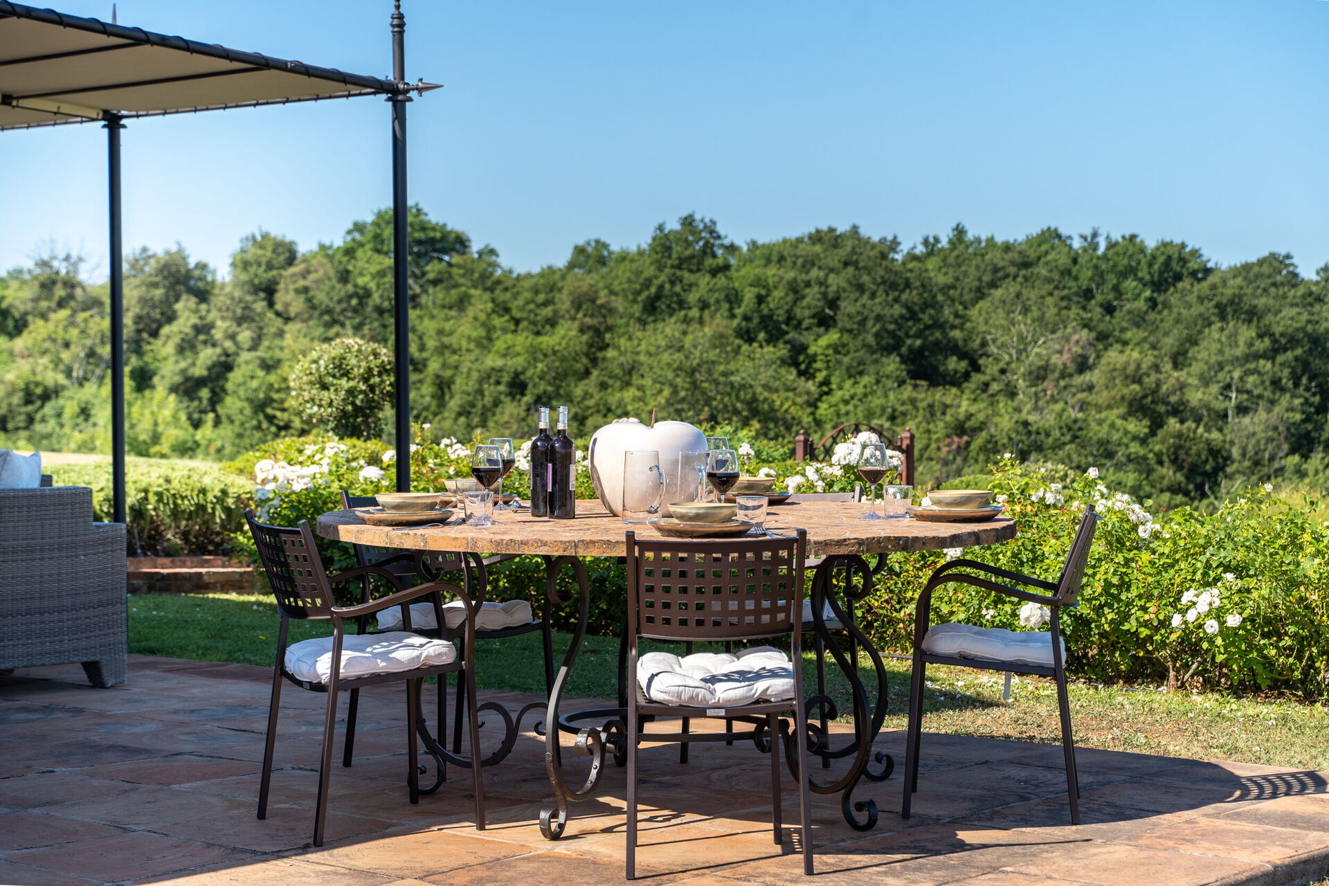 Outside, marvelous views of the Tuscan hills, with vineyards, farm fields and woods, will take your breath away. The private pool is the perfect place for cooling off on hot summer days and relaxing with friends and family.