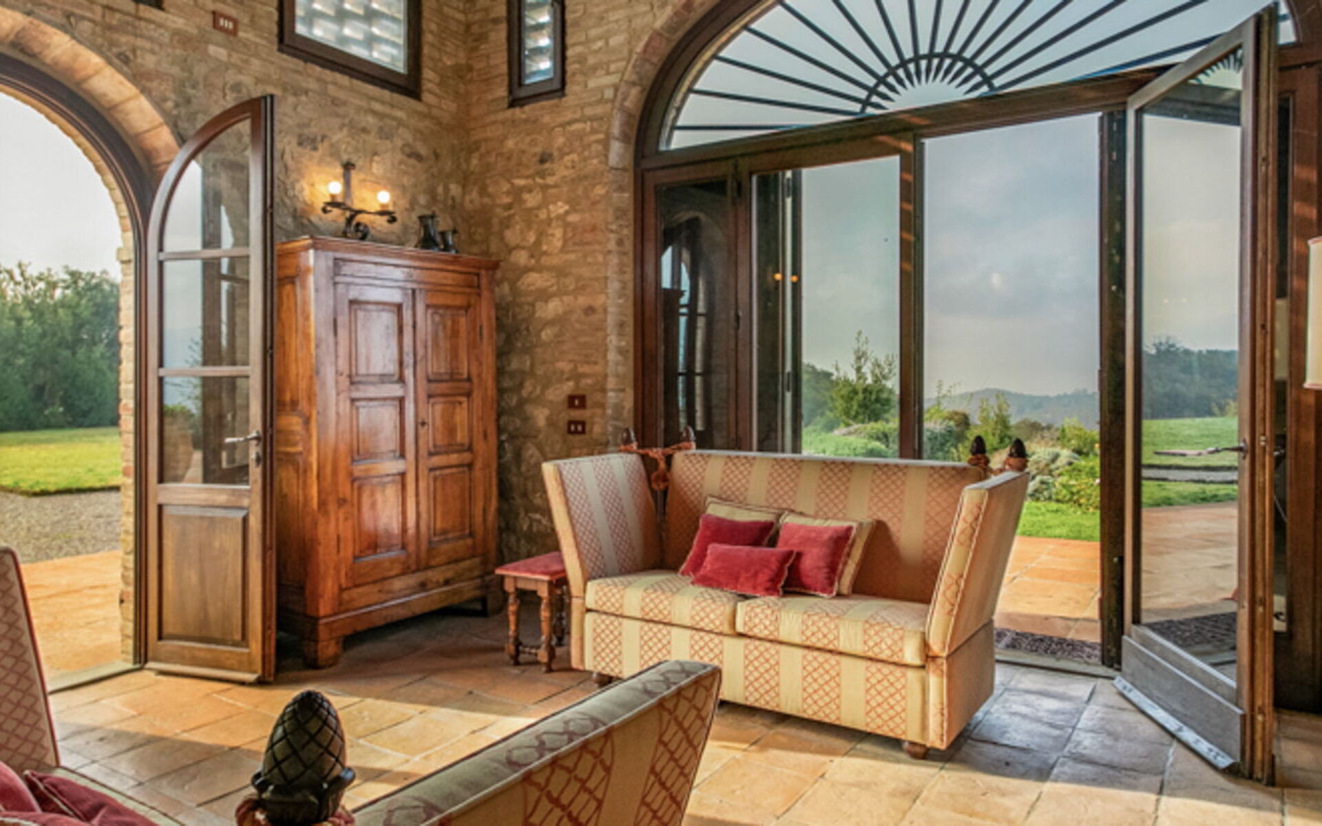 At guests’ disposal: 3 bedrooms and 3 bathrooms; 2 double sofa beds; refined, traditional Tuscan furnishings; underfloor cooling system throughout the entire villa; private pool reserved for guests’ exclusive use (12 x 6 meters); Italian style garden; helicopter landing zone outside (service available upon request); free Wi-Fi internet.