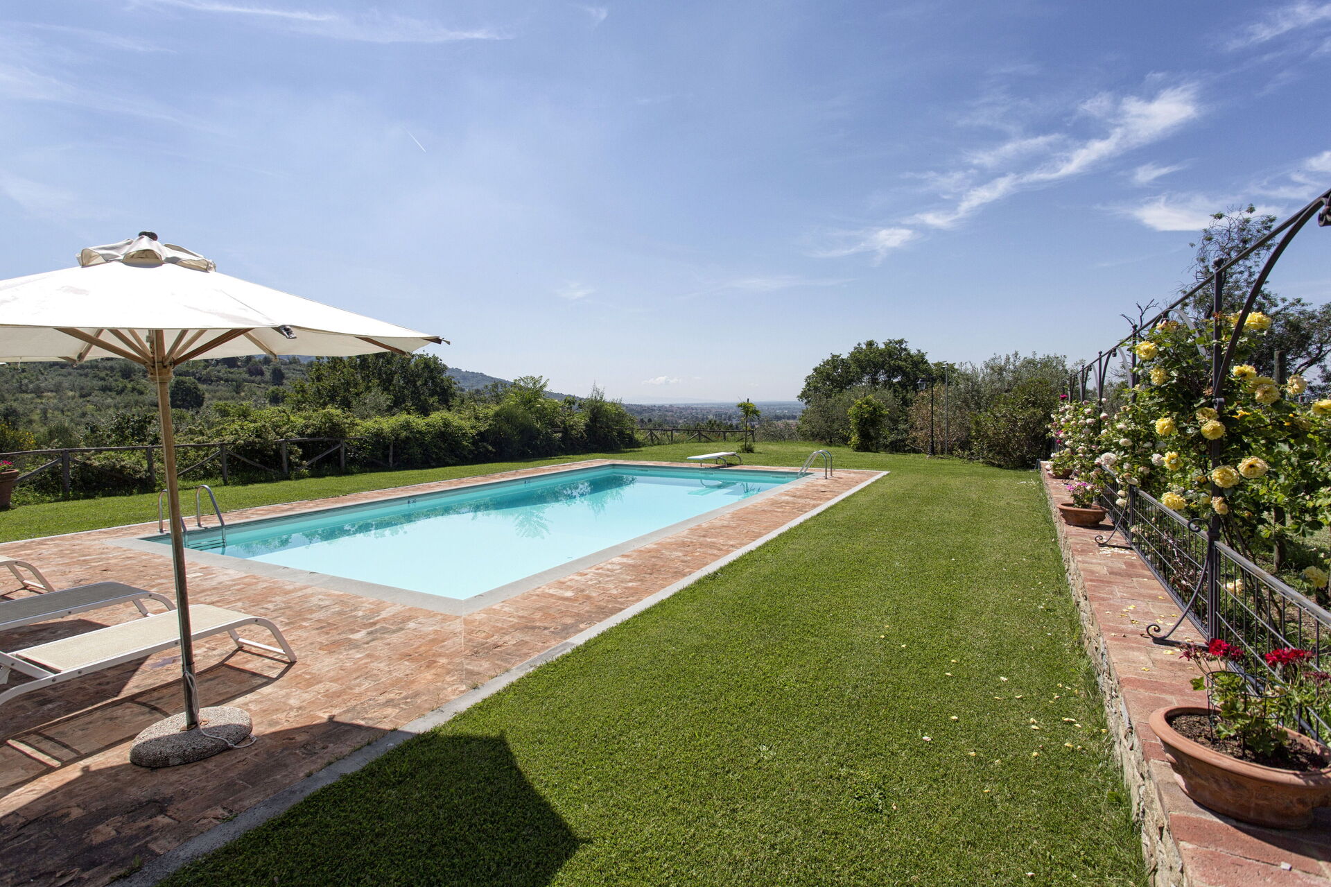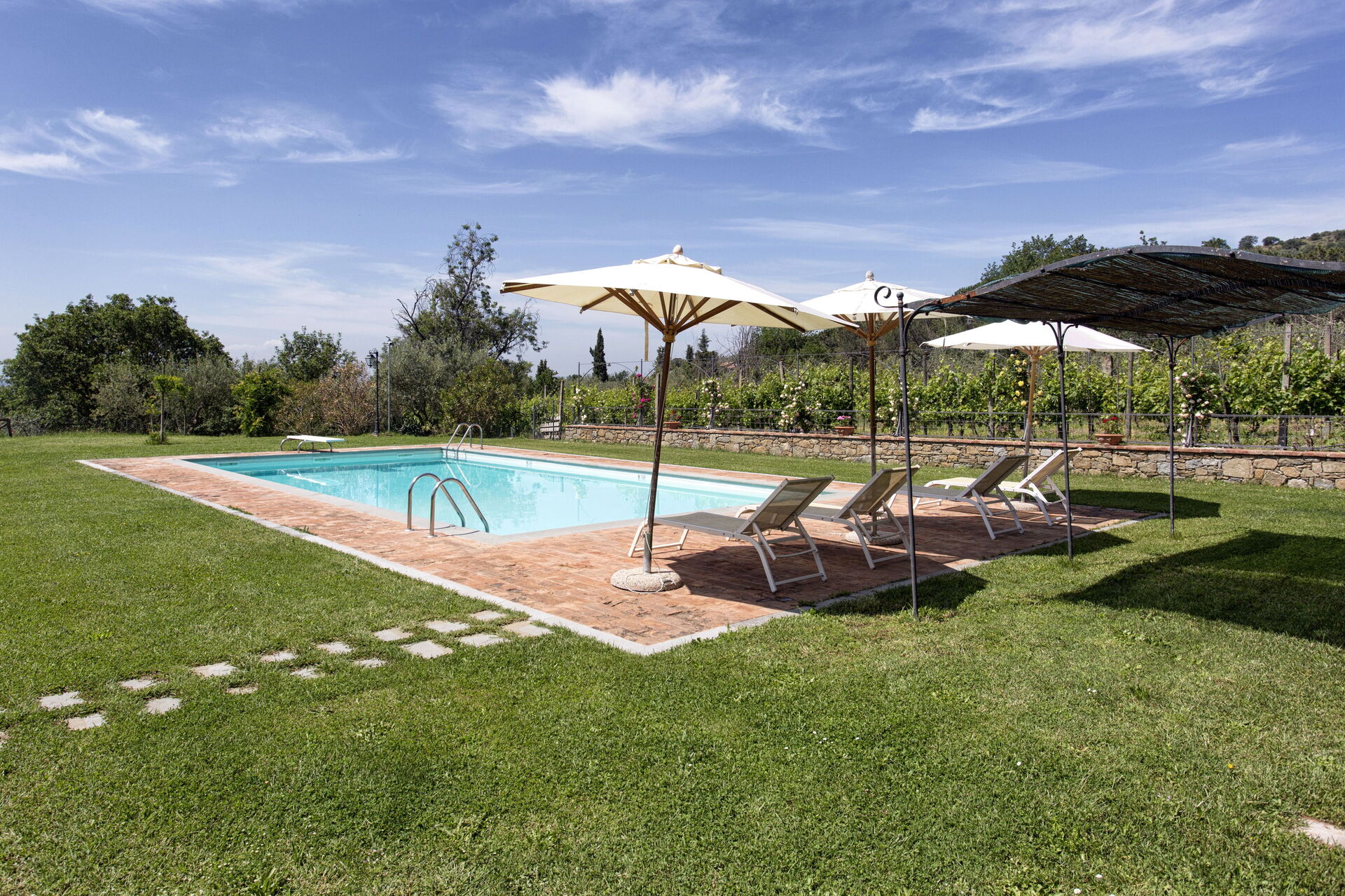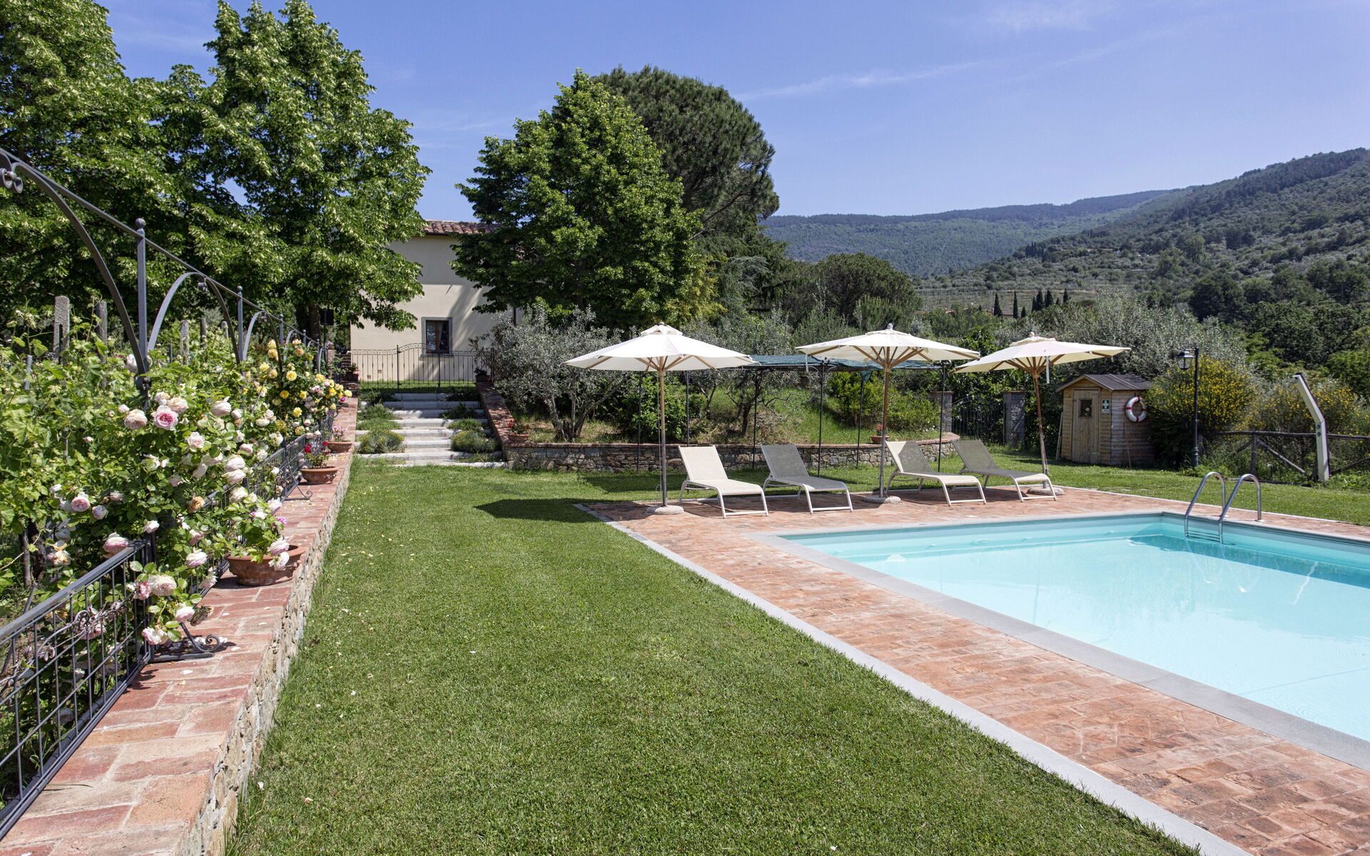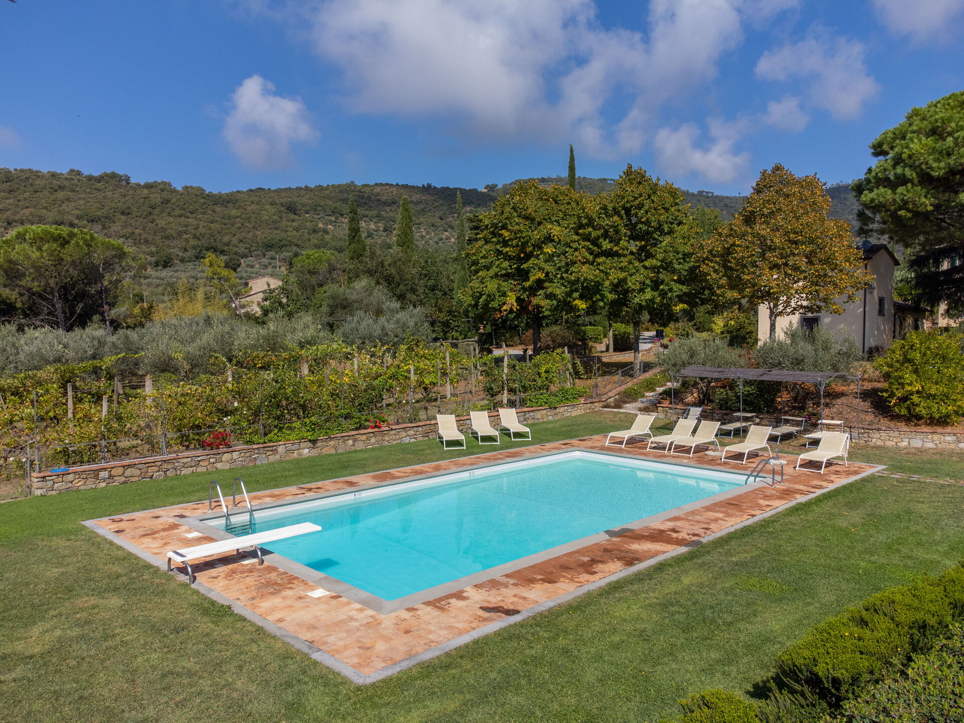 Upon arrival you will be greeted by the owner or manager where you’ll find a nice clean well-maintained property with views of the hills ideal for a relaxing vacation in Tuscany. For your enjoyment you will find a private pool where you can relax while enjoying a nice cold beverage after a busy day of visiting museums. Outside you will also find a barbecue grill and patio. Dining with friends and family is a huge part of the Tuscan culture. Take advantage of the well-equipped kitchen to prepare meals using local produce while on your holiday. The kitchen includes coffee machine, microwave, toaster, stove and refrigerator, as well as, plenty of tableware and cutlery for up to 14 people. Dine 'al fresco' like a real Tuscan, the fully furnished patio is the ideal setting to enjoy food, family and the beautiful Tuscan weather.