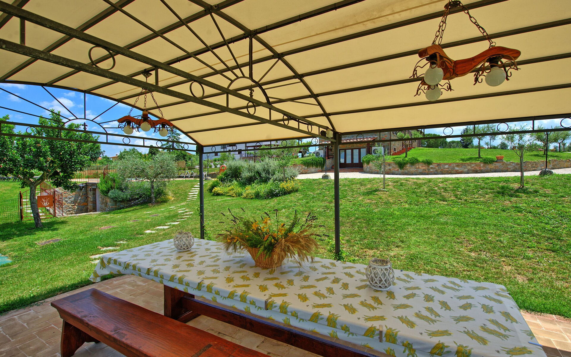 Outside, guests can enjoy a beautiful garden with a private swimming pool, fenced and reserved for the exclusive use of guests; there is also a barbecue and a large gazebo furnished with table and chairs for outdoor dining. Between the gazebo and the swimming pool there is a bathroom with a shower.