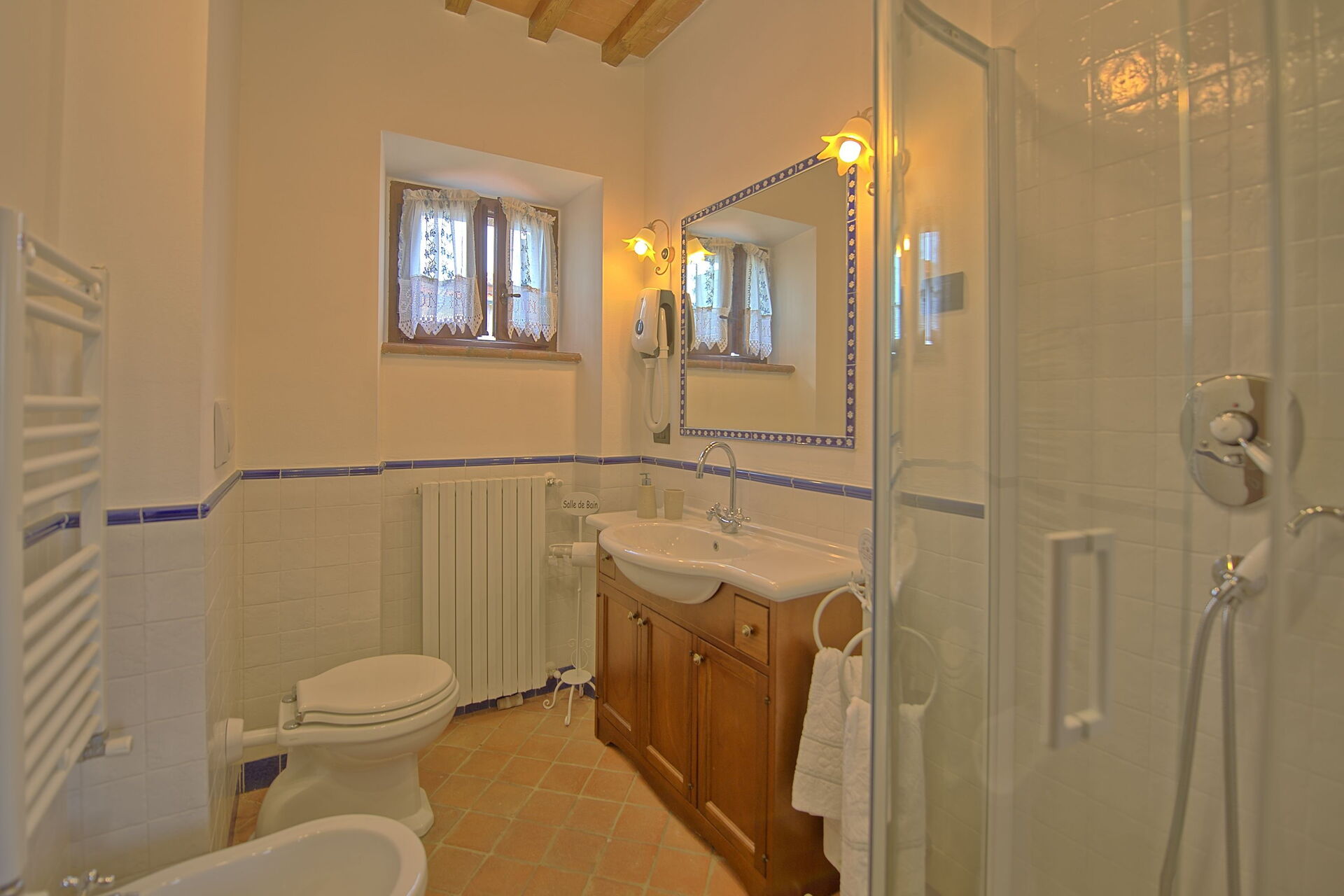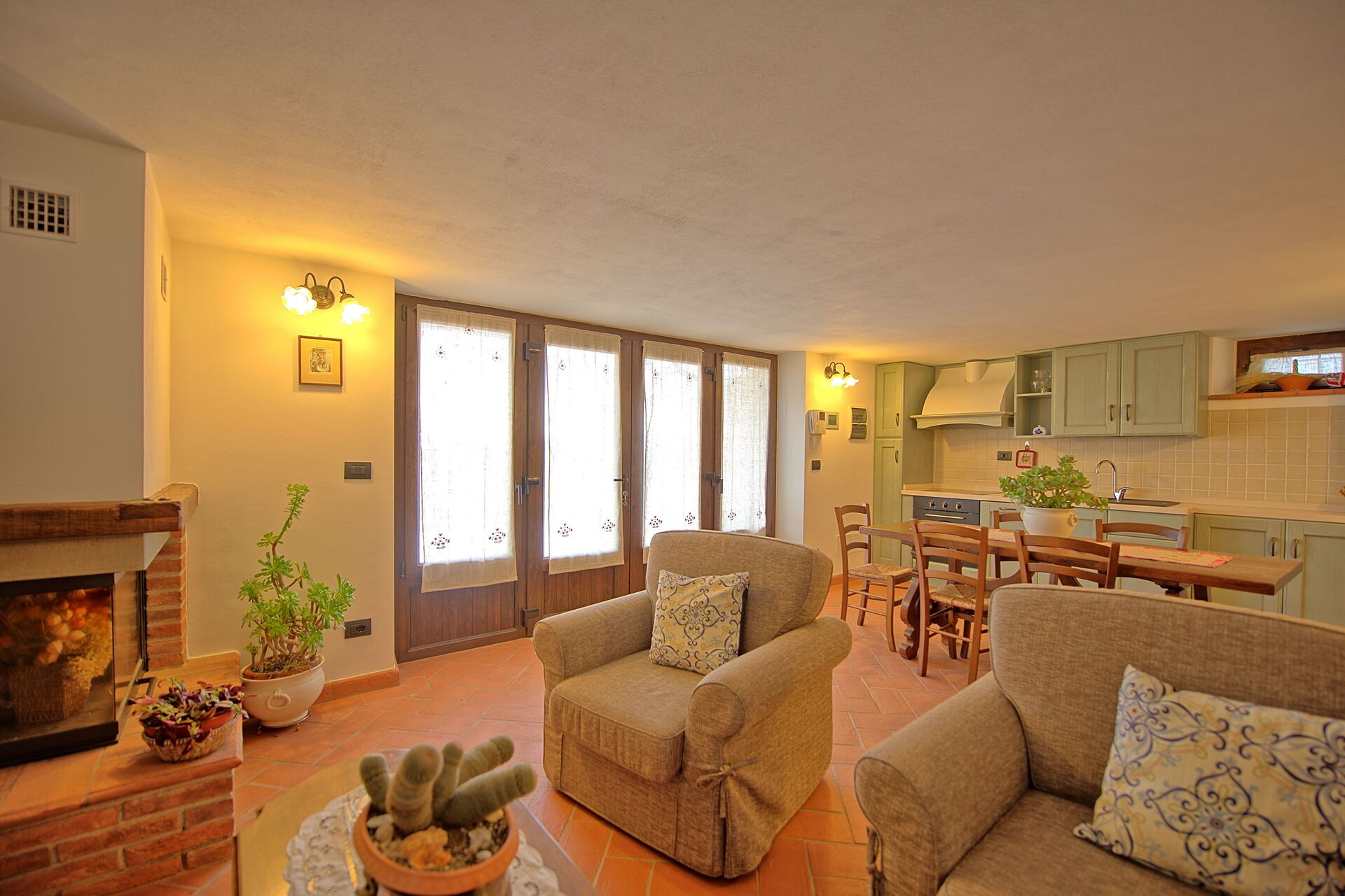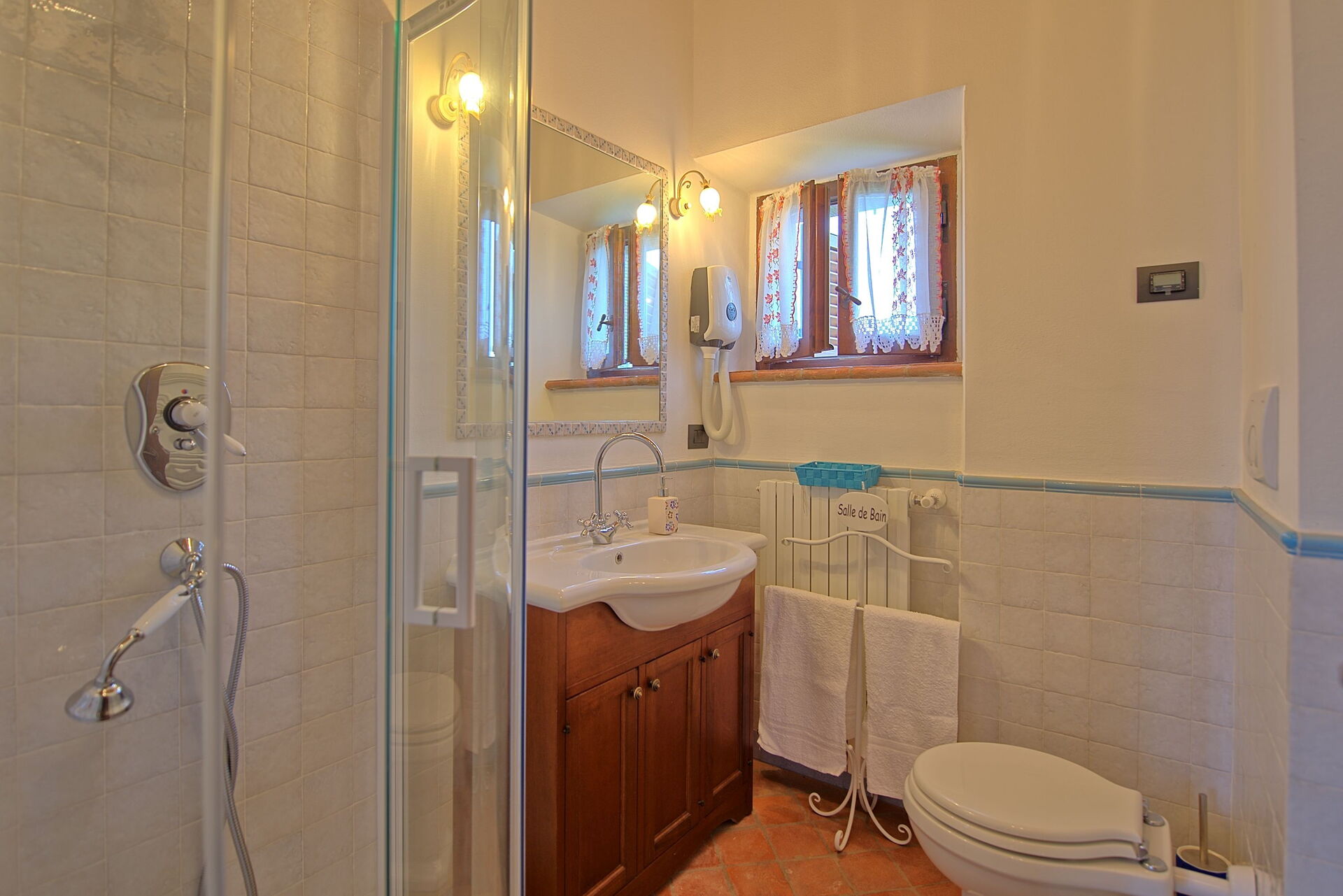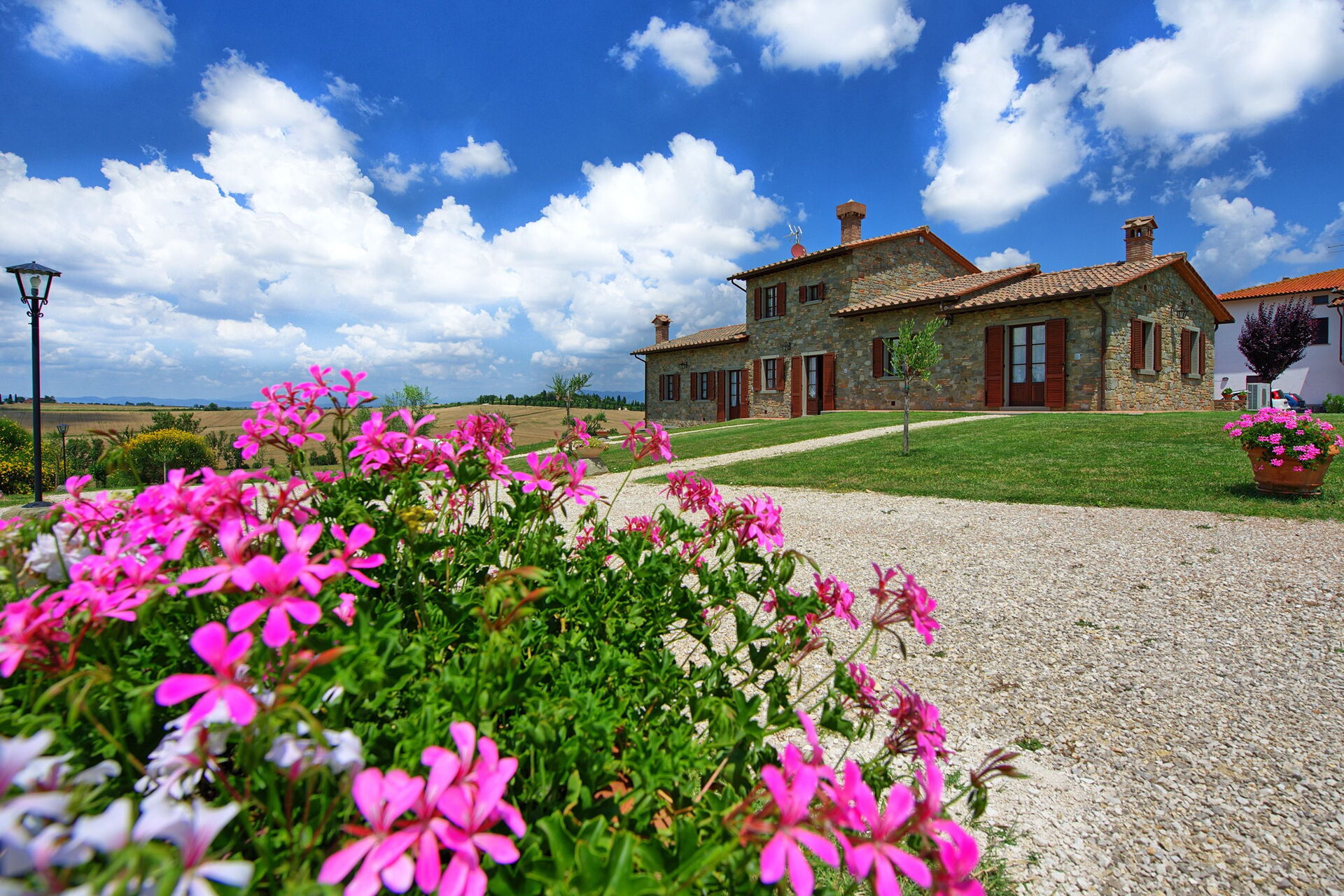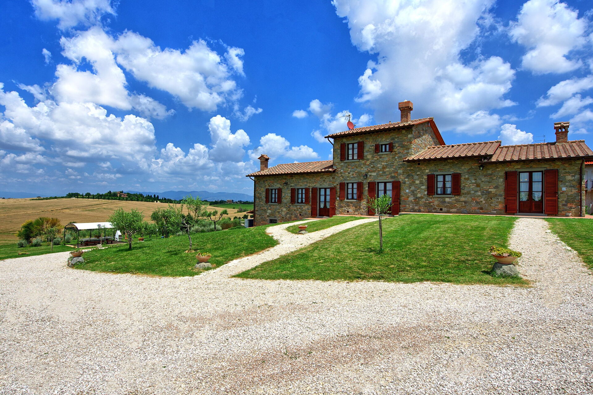 Distances: Farneta (food shops and famous abbey) - 2 km, Camucia (shops of every kind) - 9 km, Cortona - 12 km, Montepulciano - 26 km, Pienza - 32 km, Montalcino (home to the famous wine "Brunello di Montalcino") - 50 km, Perugia - 55 km, Assisi - 75 km, Florence - 105 km.