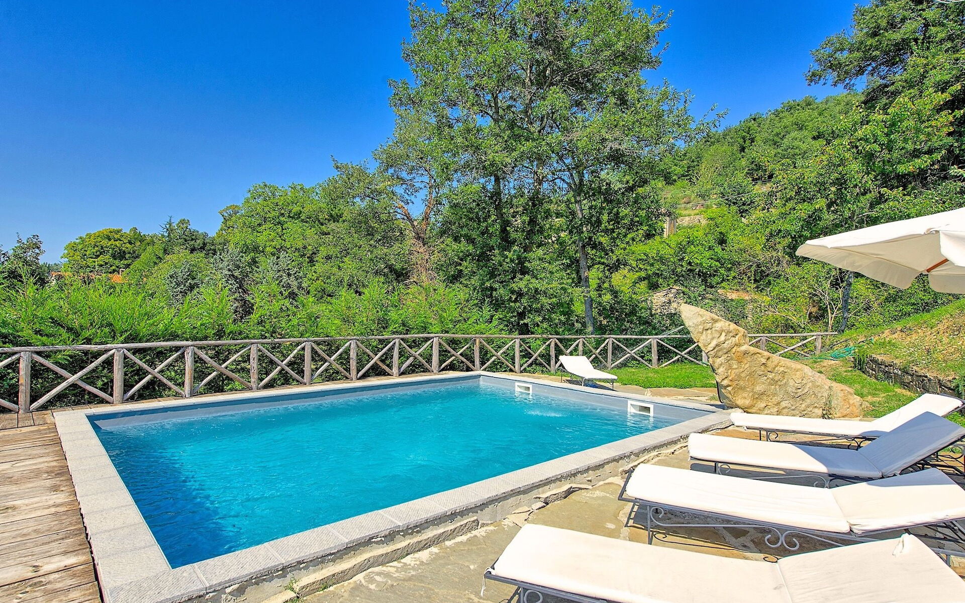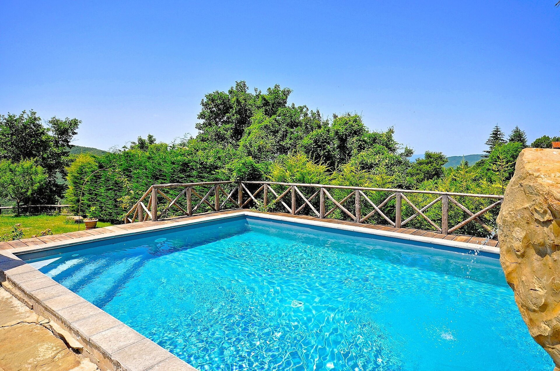 This estate, surrounded by beautiful woods and valleys, offers extensive views over the surrounding landscape and is an ideal destination for those who appreciate the peace of the Tuscan country-side and at the same time wish to visit the beautiful art cities of the area such as the charming medieval town of Cortona and Arezzo.