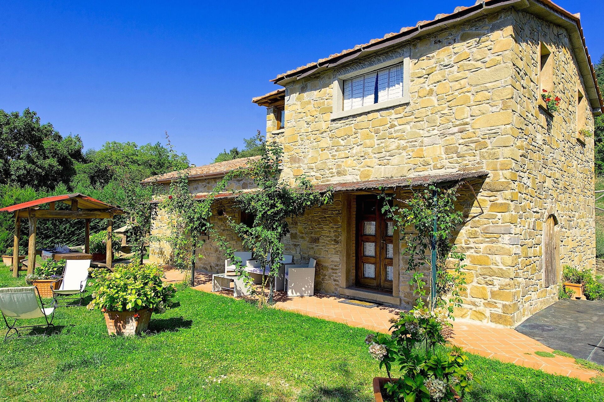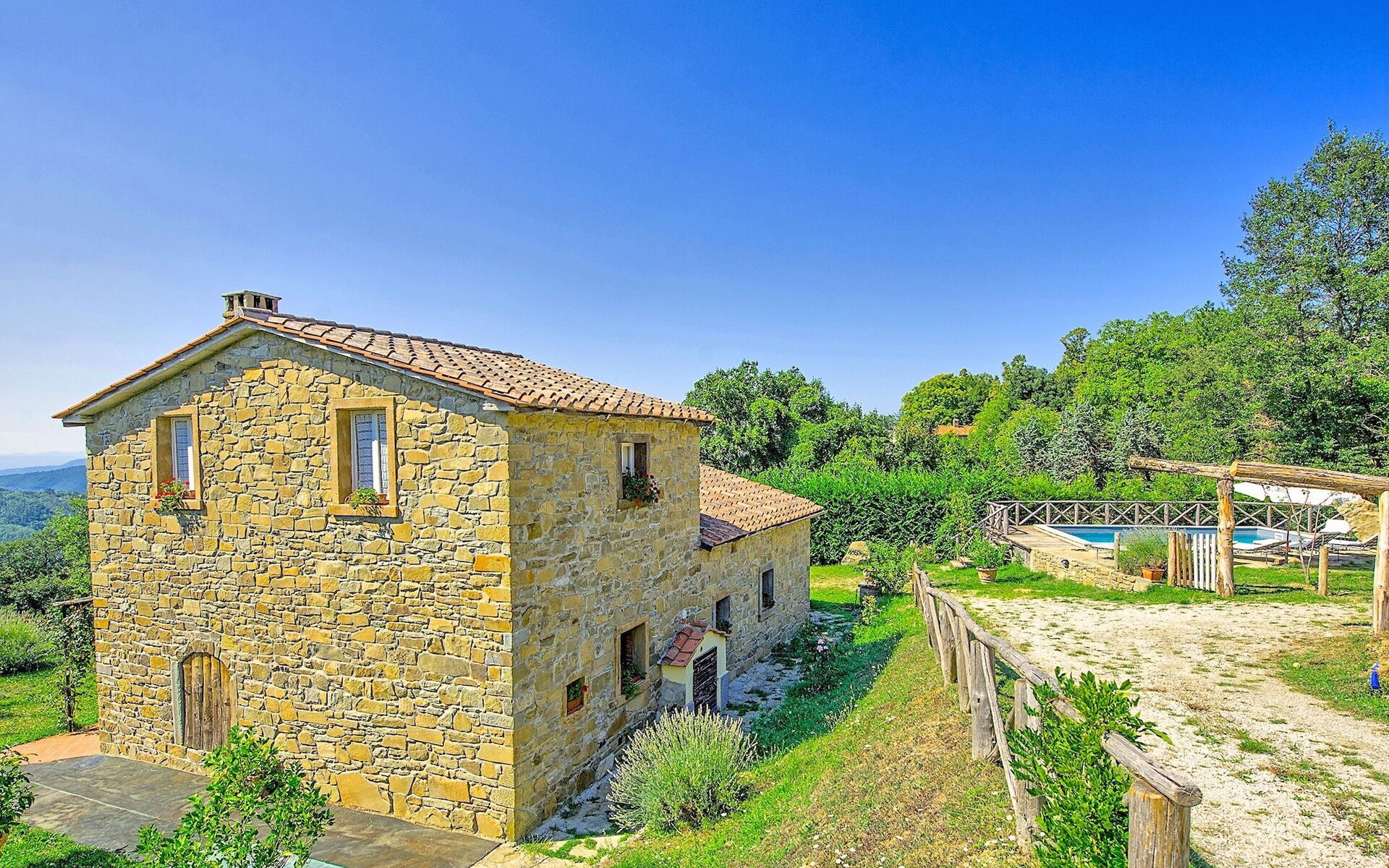 Nice independent property with private pool situated in panoramic location on the hills around Cortona, at 750 m above-sea-level. The house interiors are nicely furnished in a typical Tuscan style.