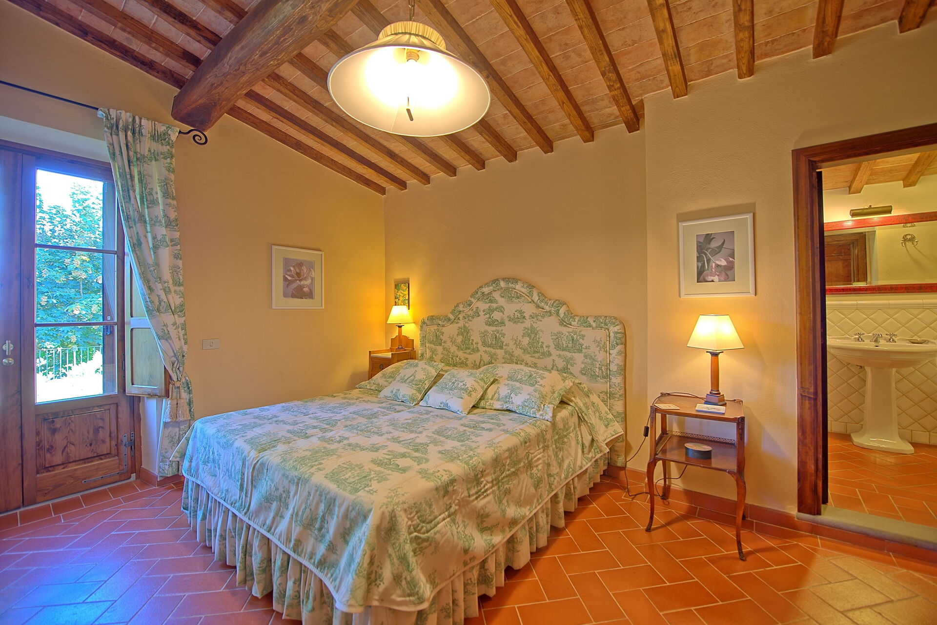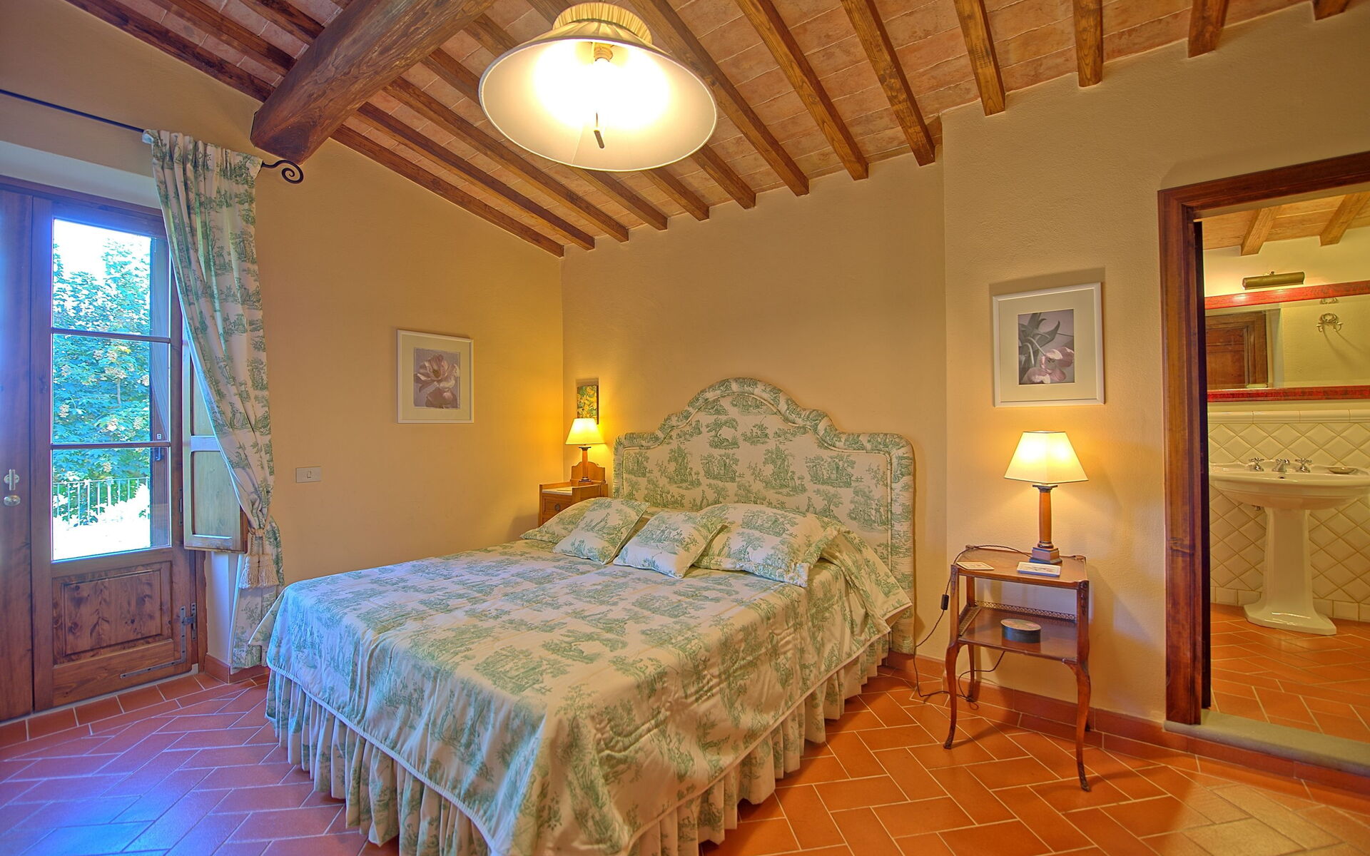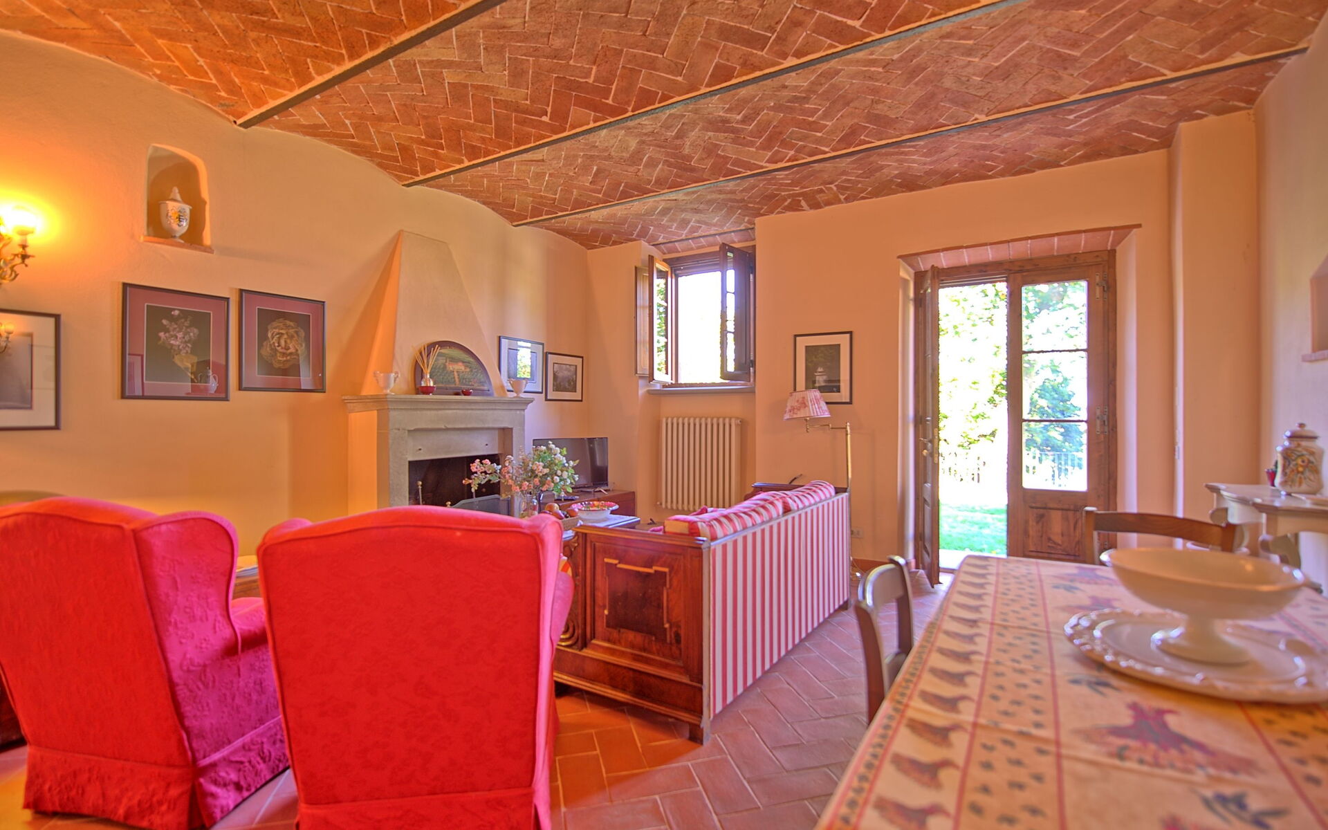 The adjoining farmhouse is spread over two floors; only the ground-floor apartment is rented out (the apartment on first floor with separate entrance is occasionally used by the owner).