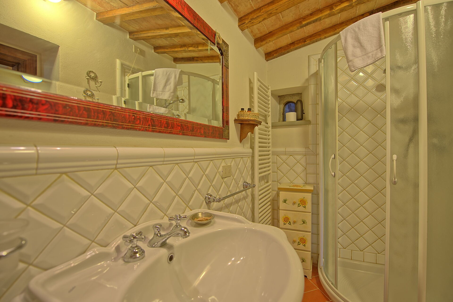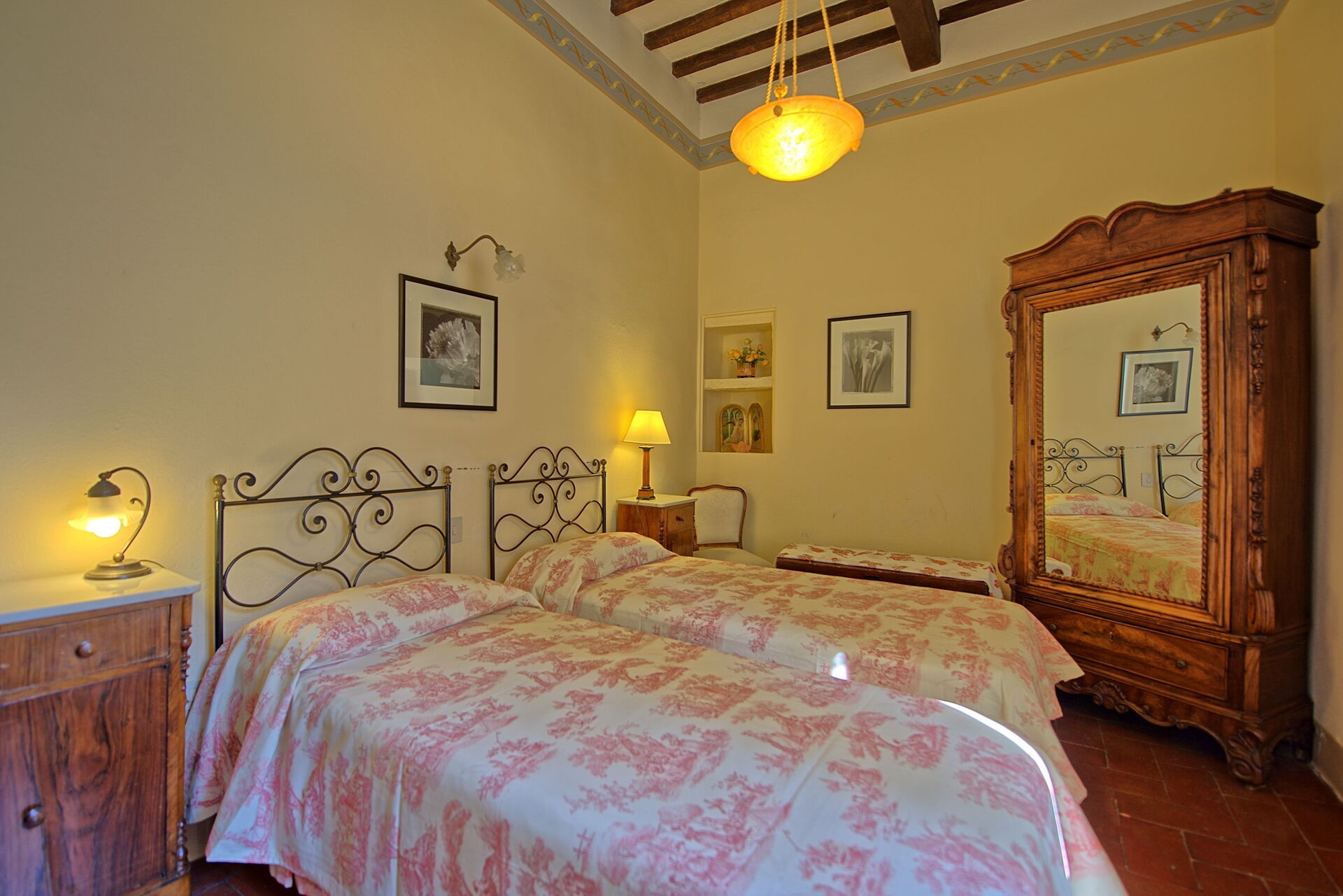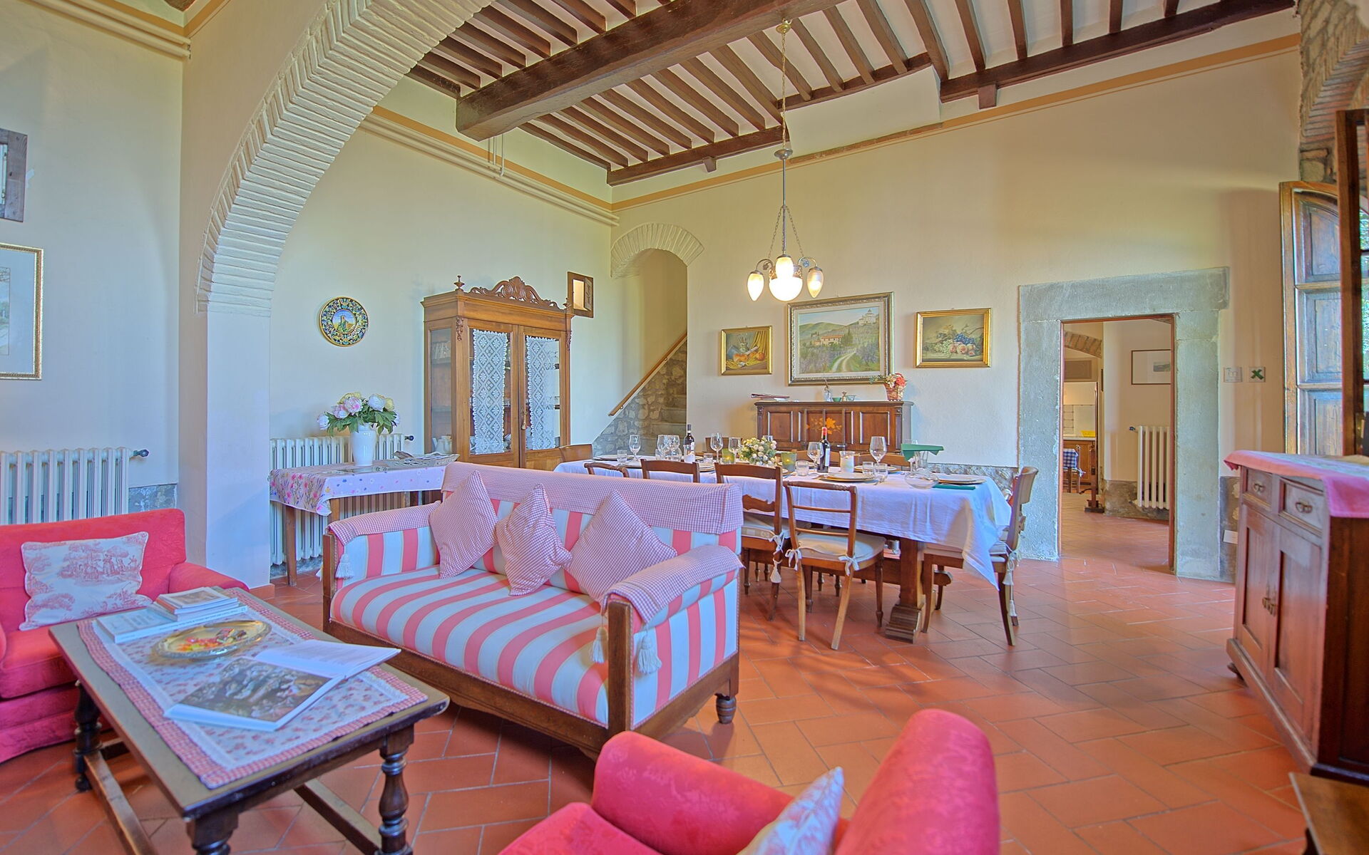 The adjoining farmhouse is spread over two floors; only the ground-floor apartment is rented out (the apartment on first floor with separate entrance is occasionally used by the owner).