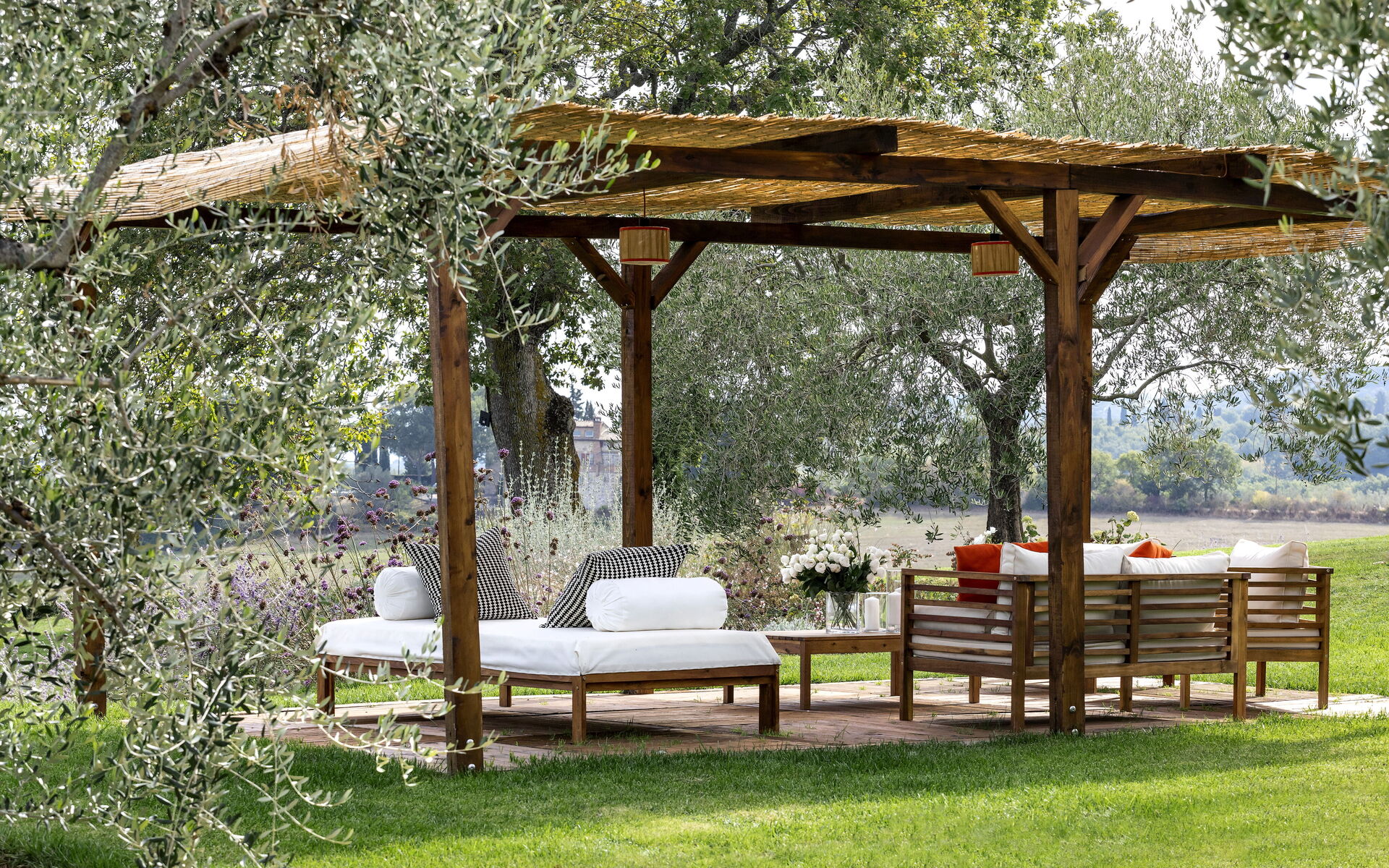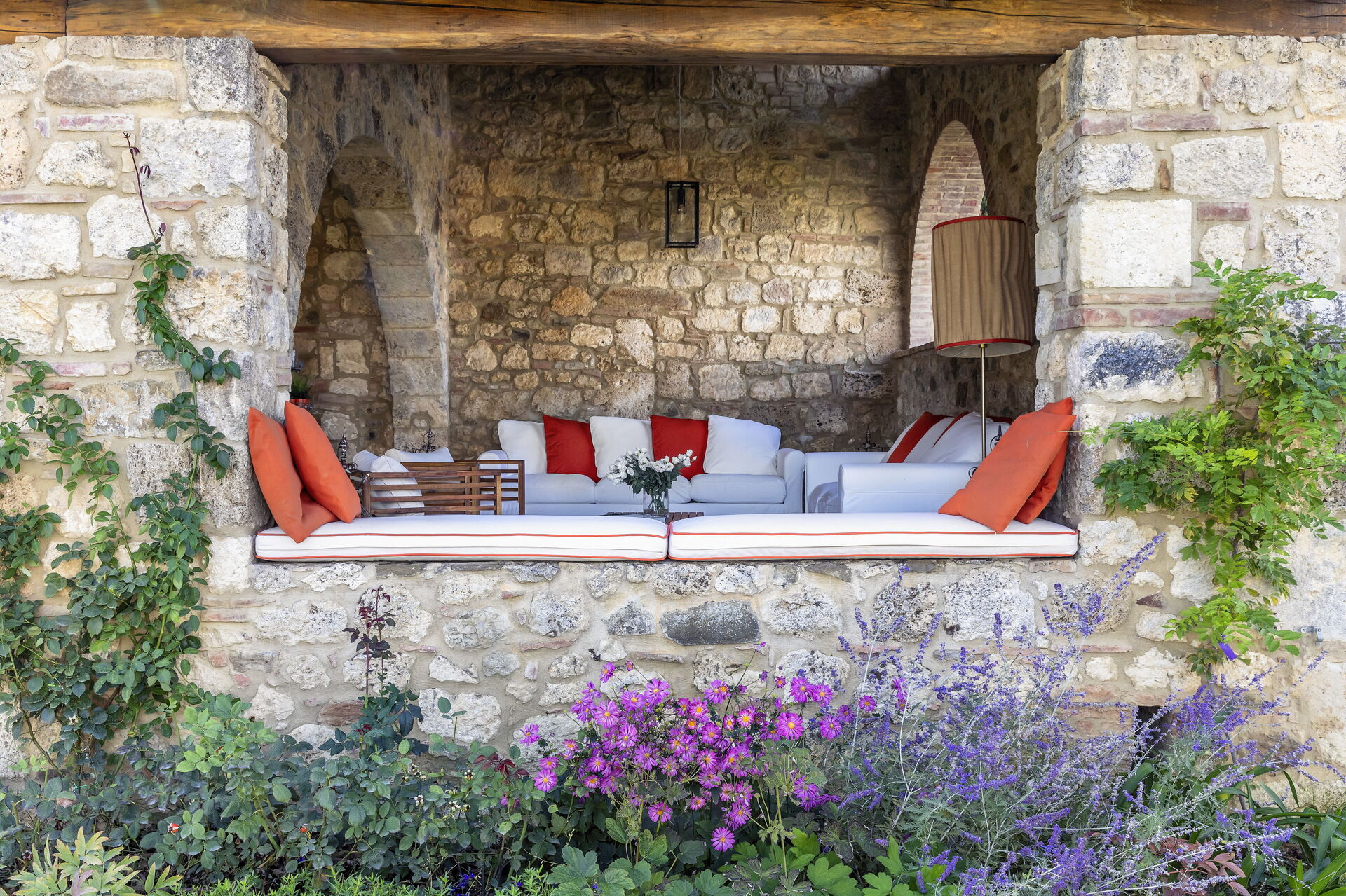 Garden: swimming pool (private, length: 12m, width: 6m, depth: 1.5m, outdoor), barbecue, al fresco dining, two gazebos, terrace furniture, ten sunbeds.