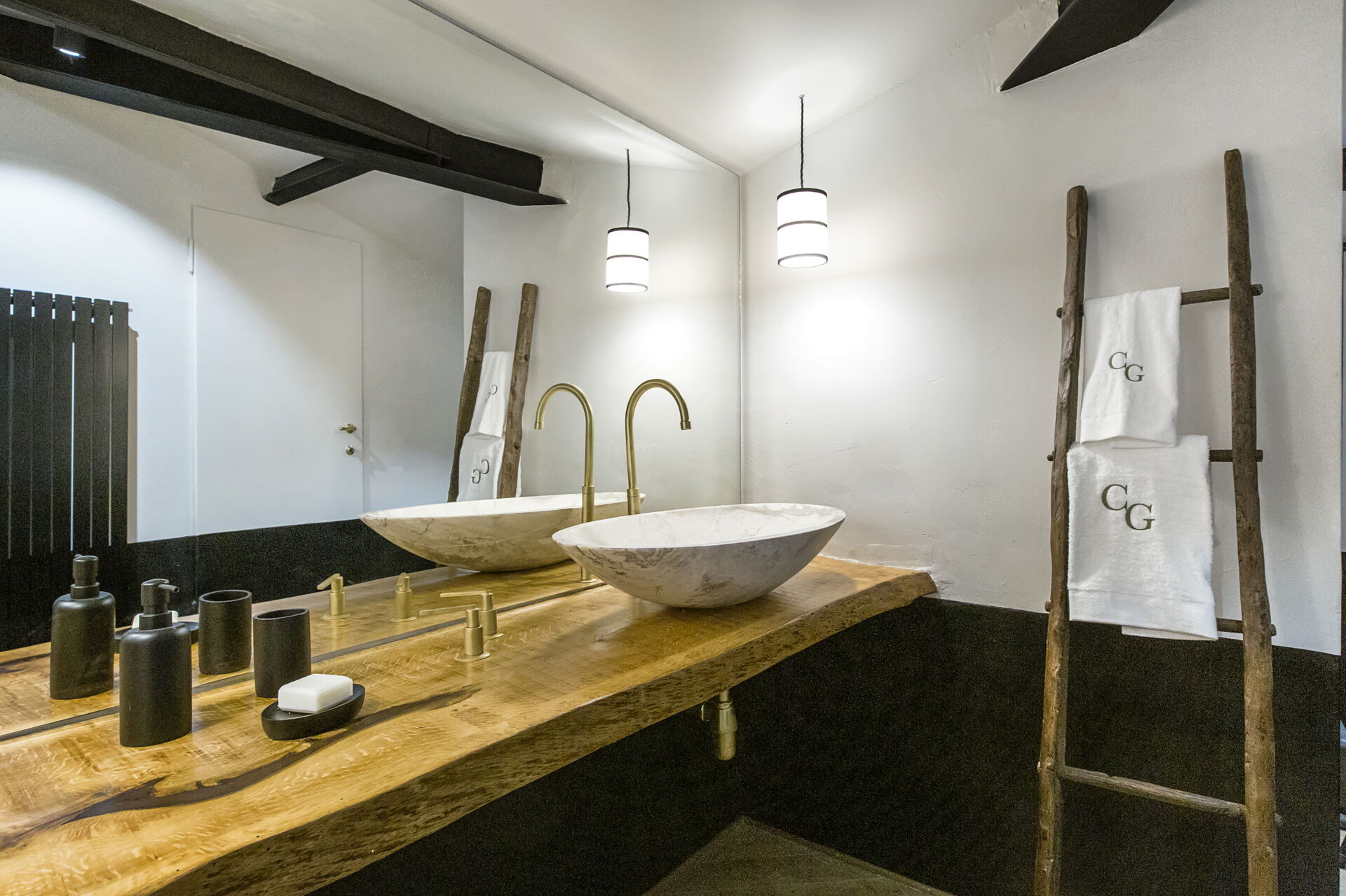 Bedroom + Ensuite Bathroom 5: two single beds, WIFI internet, air conditioning, mosquito net, basin, toilet, bidet, shower, hairdryer.