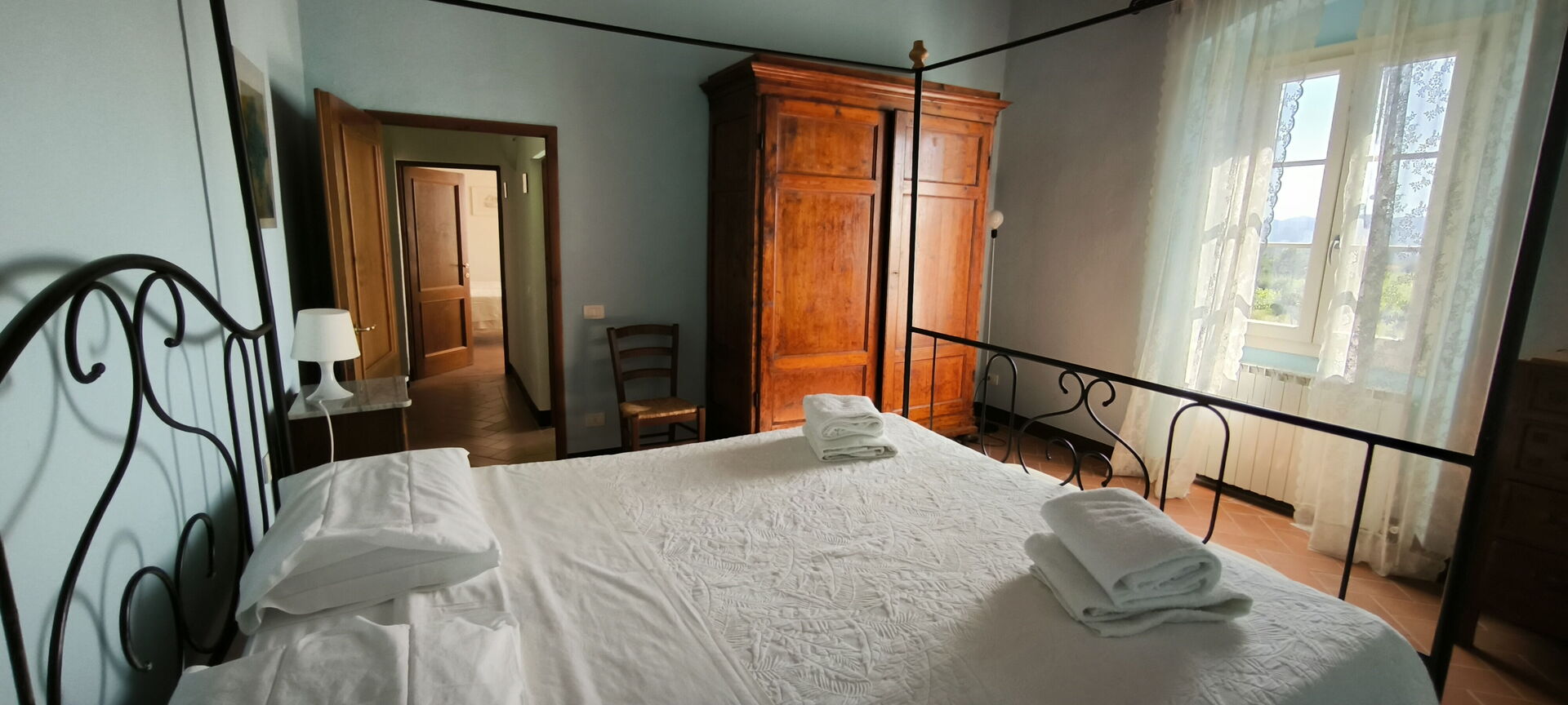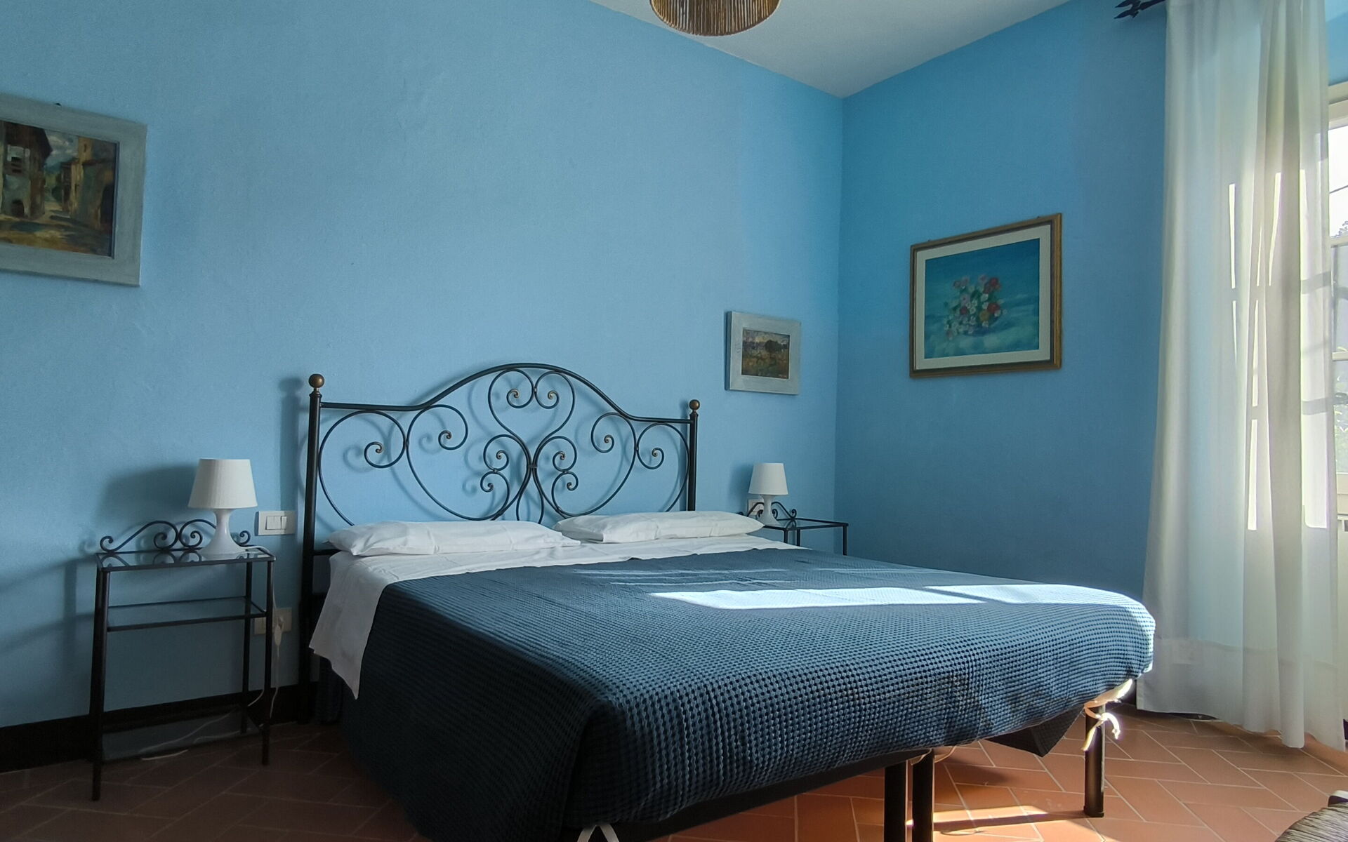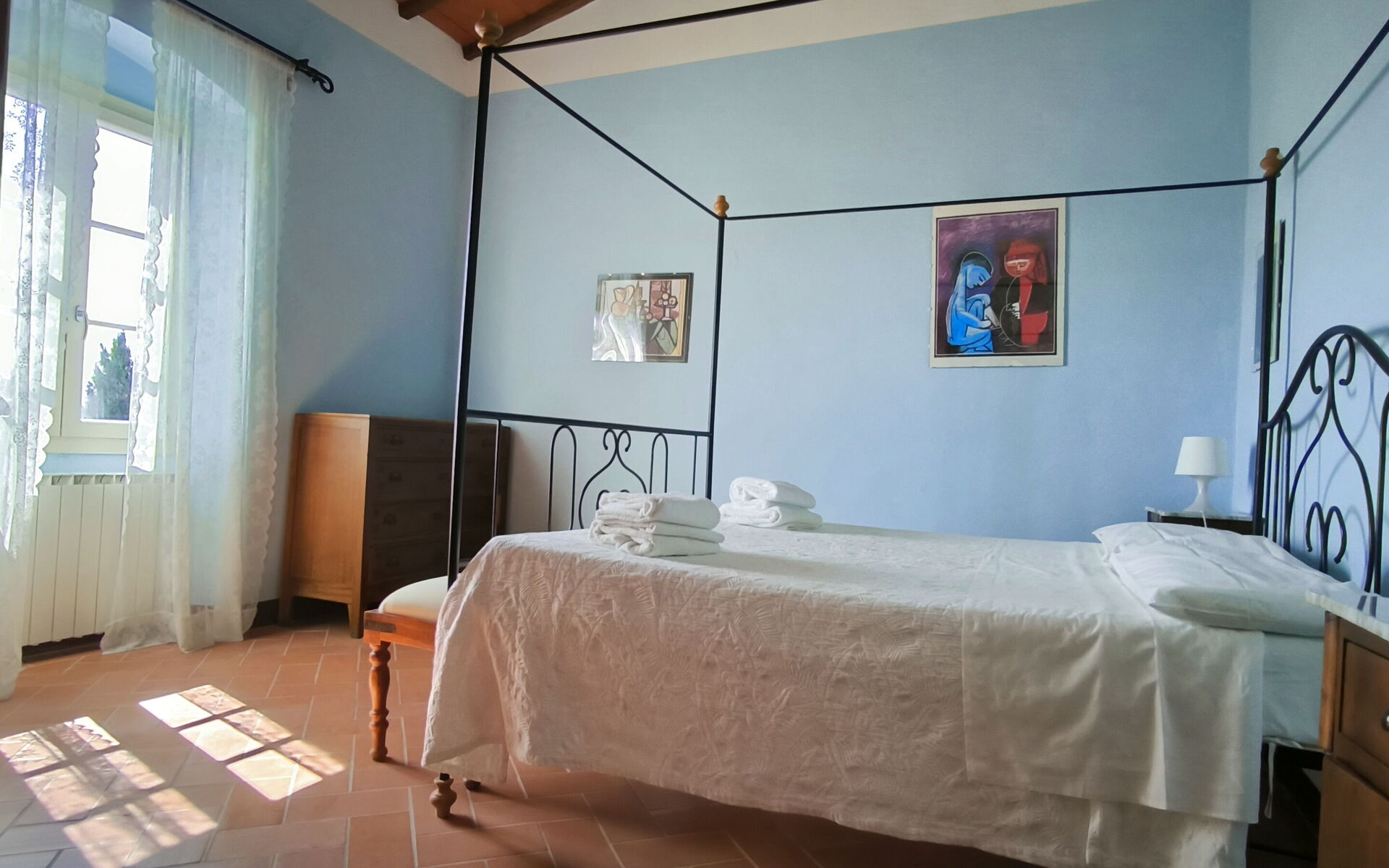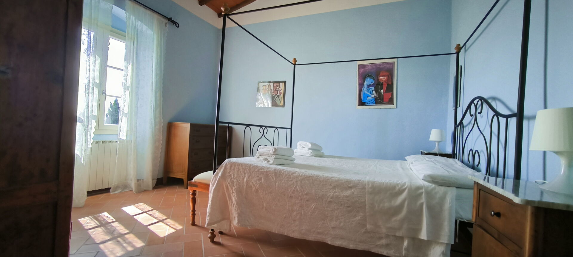 Bedroom 4 (16 m2): double bed, mosquito net, portable fan.