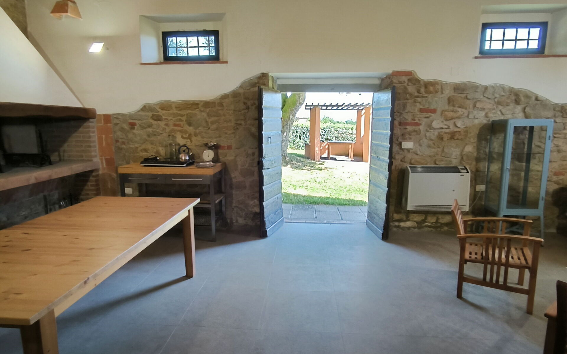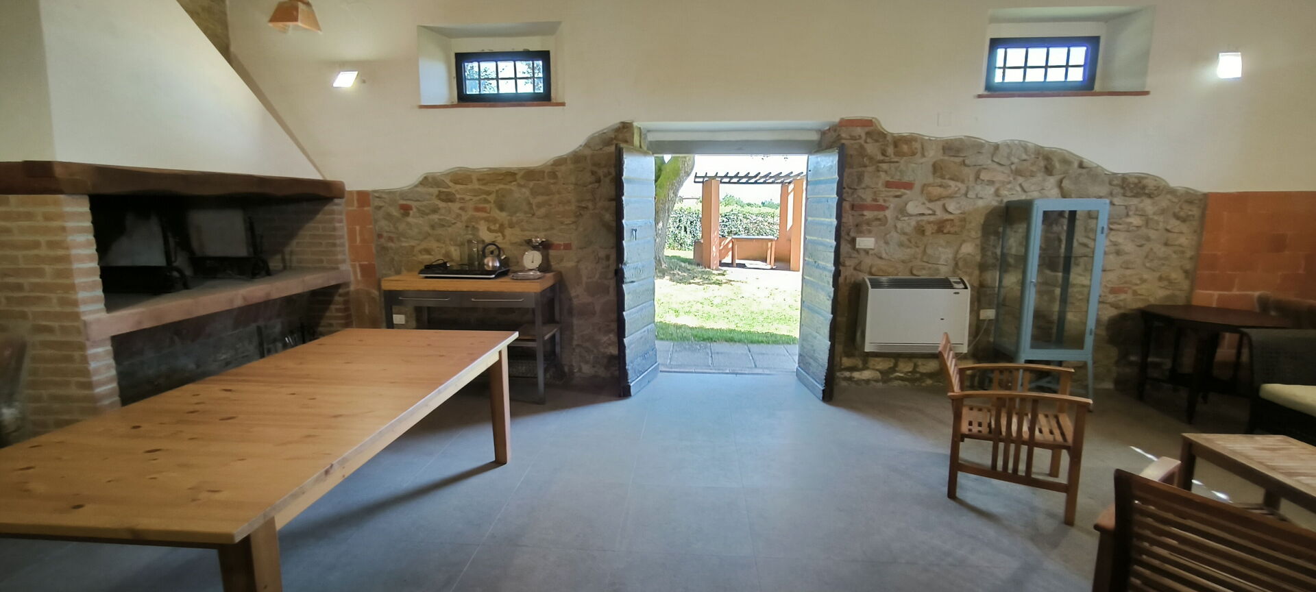Living room (60 m2): armchair, fireplace, dining table (people: 12), WIFI internet, exit to the garden.