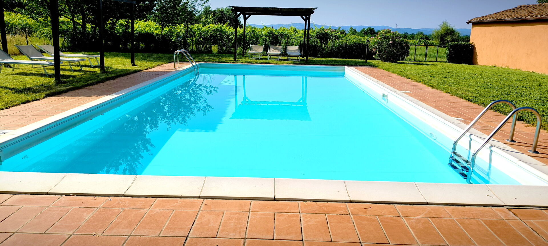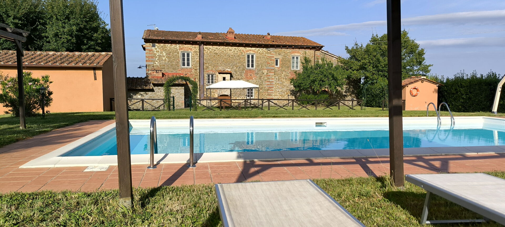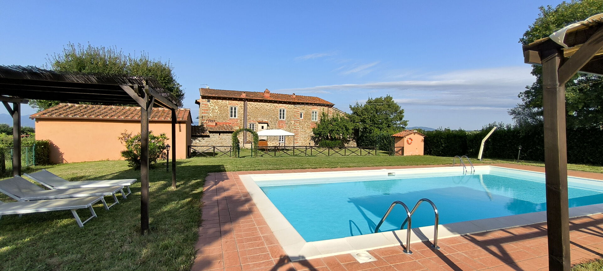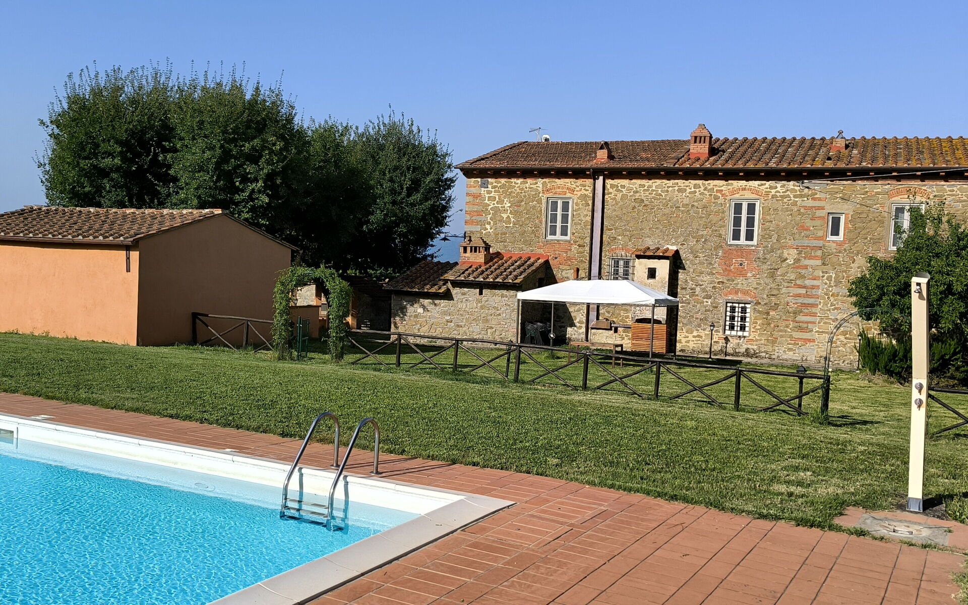 Upon arrival you will be welcomed by the owner or manager where you’ll find a beautiful clean well-maintained property ideal for a relaxing holiday in Tuscany. After a hectic day of shopping, spend some time with friends and family poolside enjoying a glass of wine - a perfect way to relax at the end the day. There is a kitchen including coffee machine, microwave, stove and refrigerator, as well as, plenty of tableware and cutlery for up to 11 people.