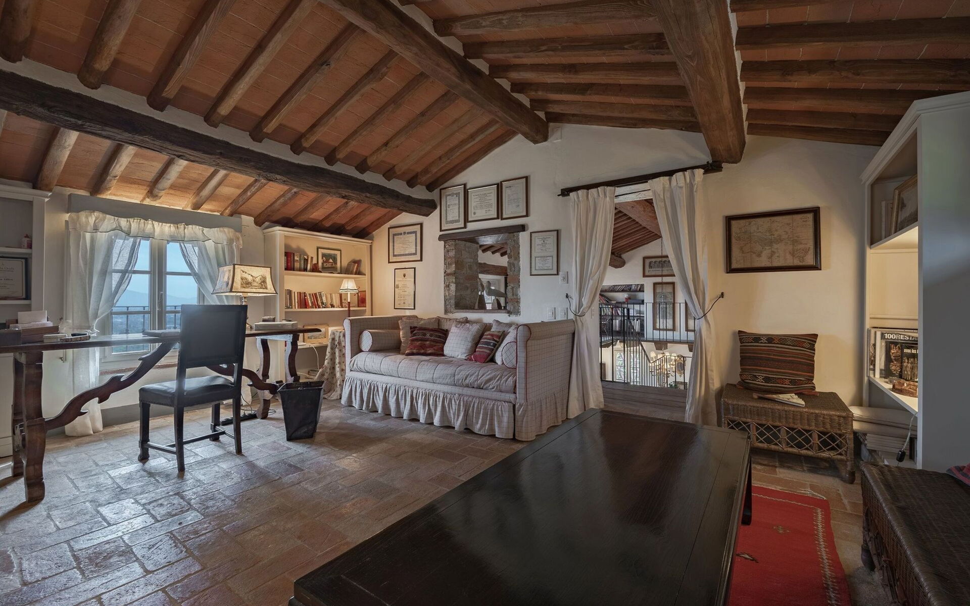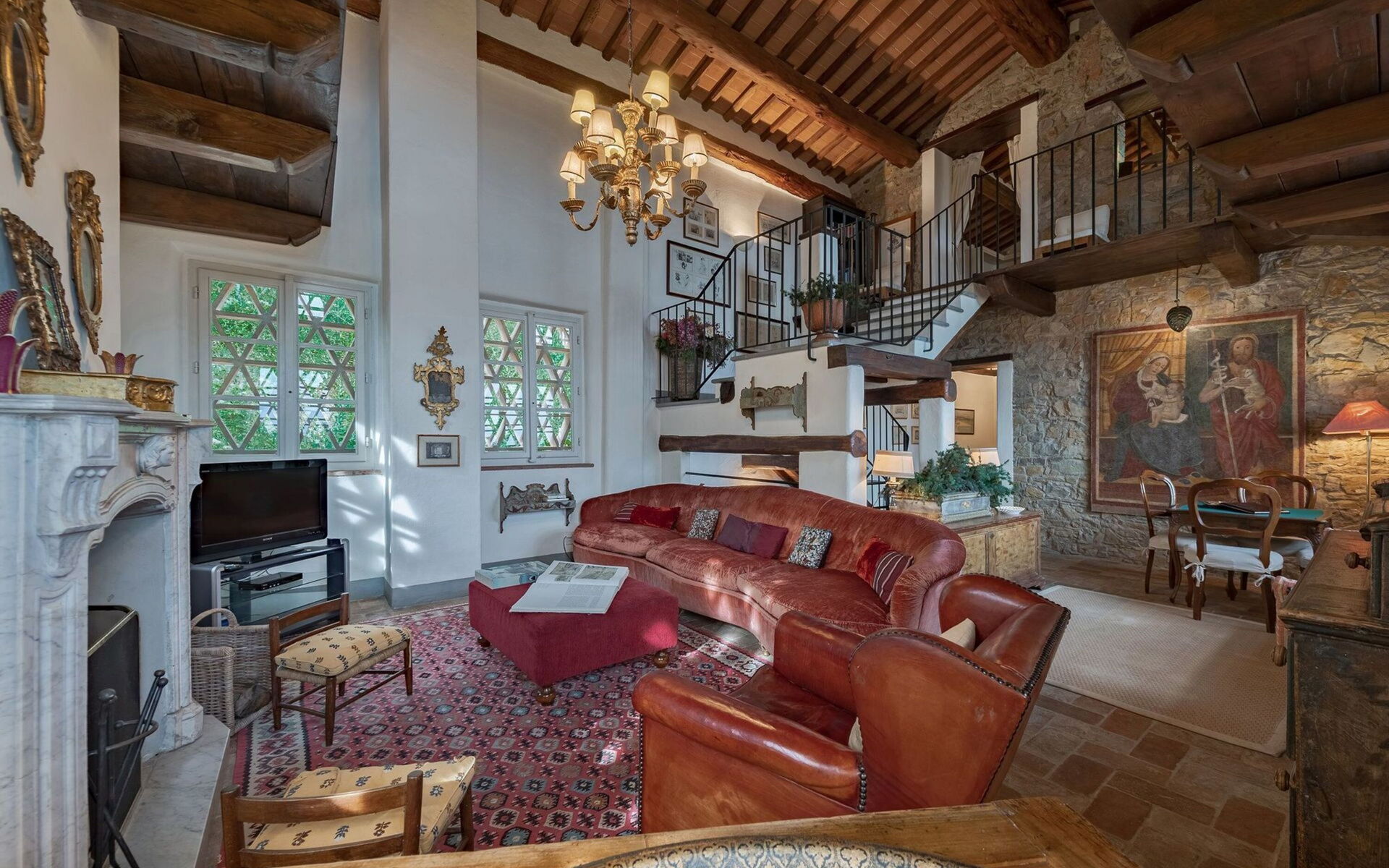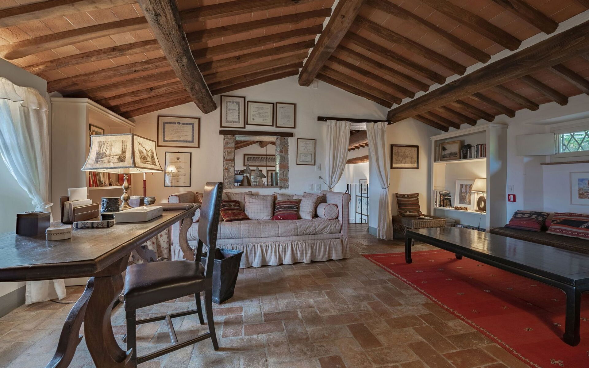Originally built in the 18th century, the villa has been renovated while maintaining intact the typical characteristics of Tuscan rural buildings (original stone walls, wooden beams and red terracotta floors). Internally the property is furnished in an elegant style creating a clever mix of modern/functional furnishings and antique pieces.