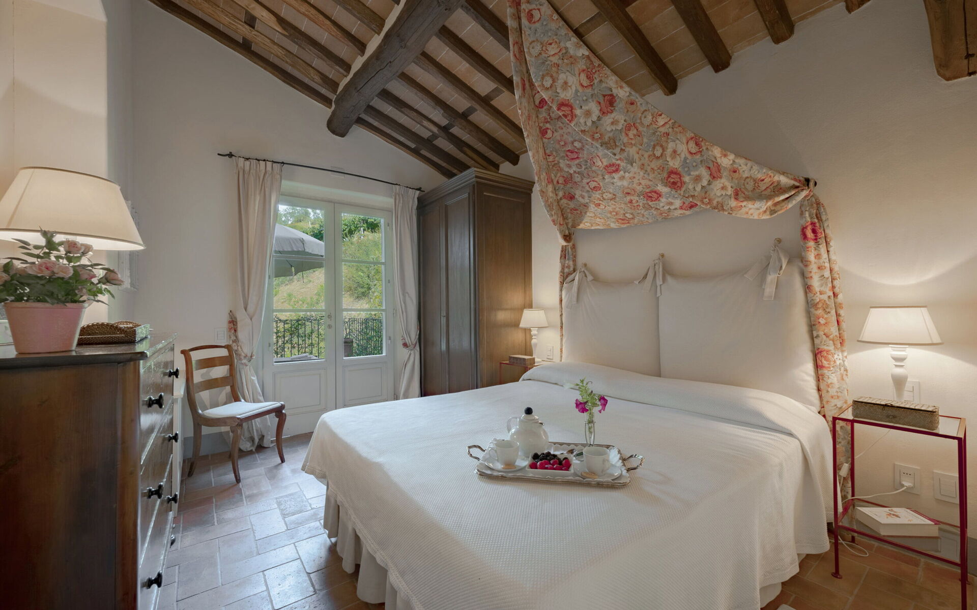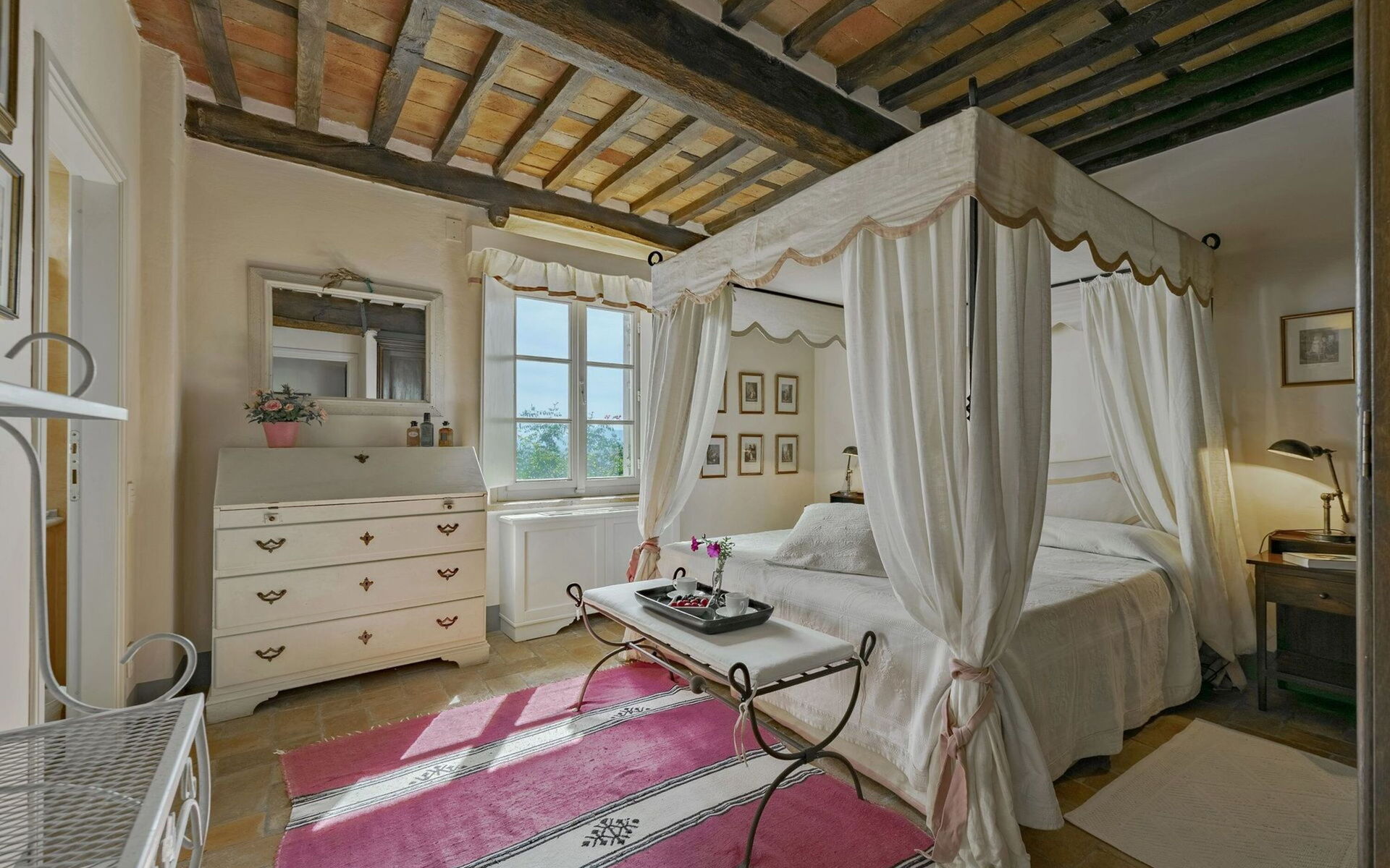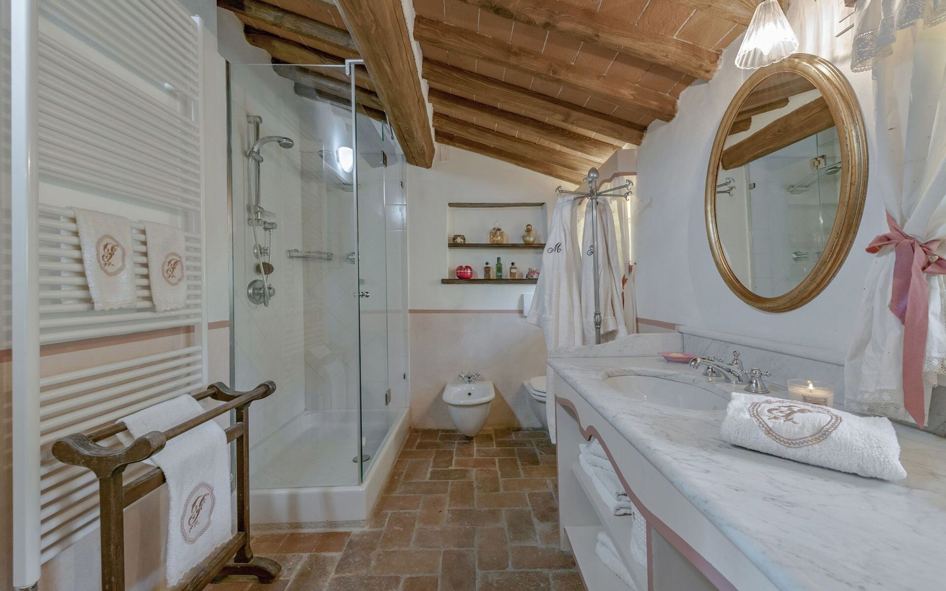 Originally built in the 18th century, the villa has been renovated while maintaining intact the typical characteristics of Tuscan rural buildings (original stone walls, wooden beams and red terracotta floors). Internally the property is furnished in an elegant style creating a clever mix of modern/functional furnishings and antique pieces.