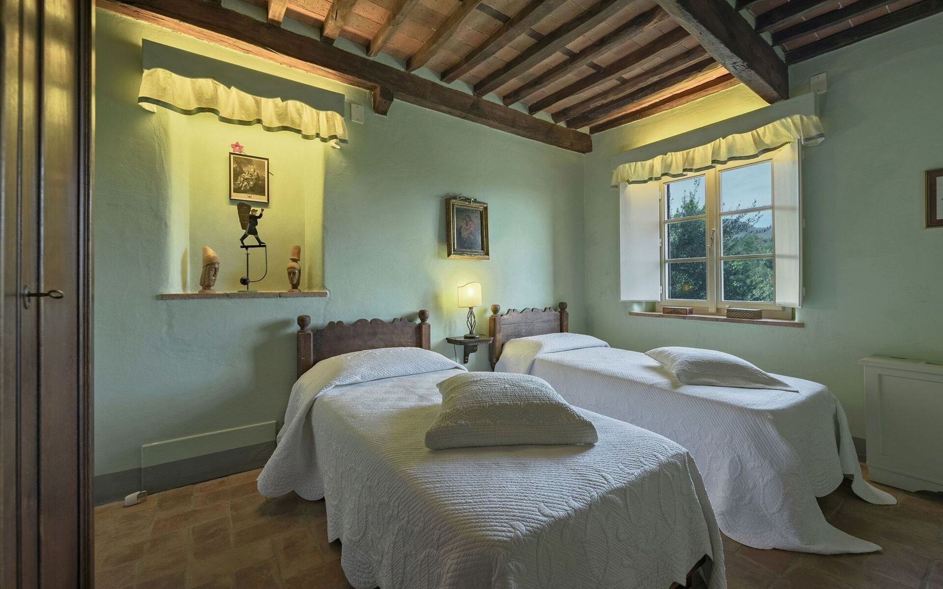 Also on this level there is an independent apartment (not internally connected to the rest of the house), equipped to accommodate disabled people (there is a very low step). The apartment consists of 2 bedrooms (one double and one twin) and a bathroom with shower (suitable for disabled people).