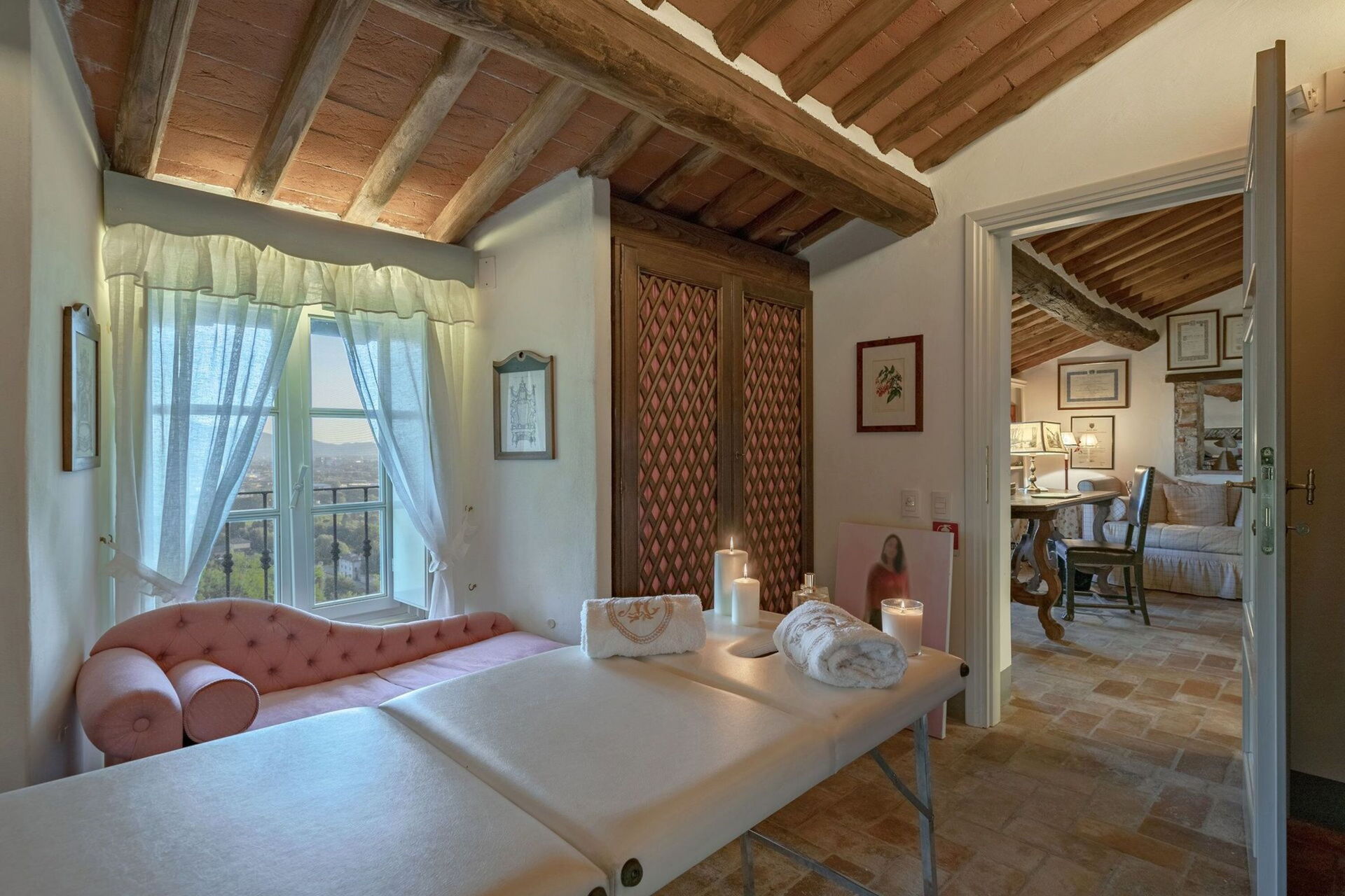 Second floor: The top floor includes a delightful apartment made up of: a study (with desk, double sofa bed and fireplace), a massage room, a double bedroom, a bathroom with shower.
