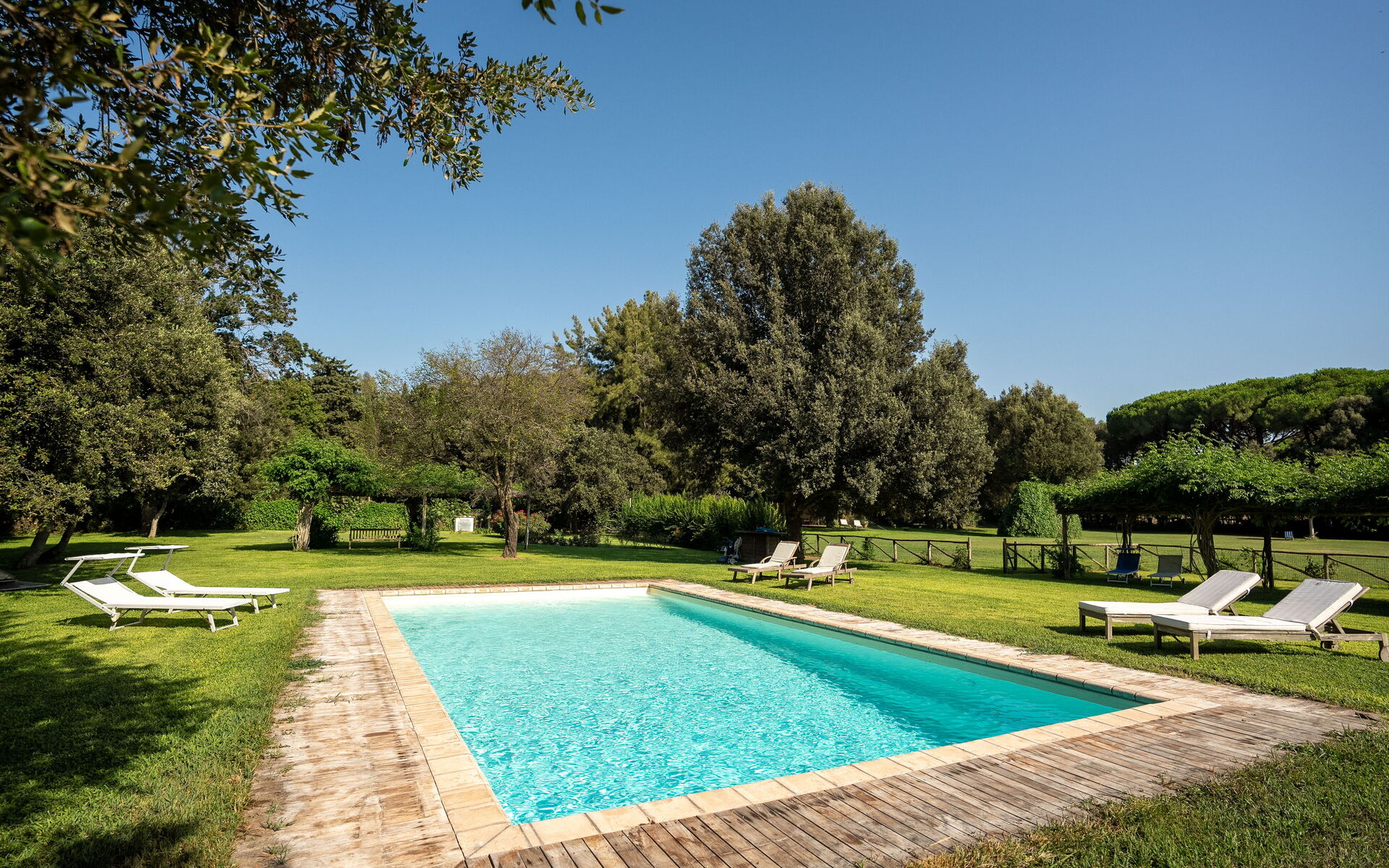Casale Rosa is located 6 km (4 mi) from Marina Di Castagneto Carducci, Italy and only 81 km (50 mi) from Pisa in the tourist area "Tuscan Coast". Holiday rental Casale Rosa is a beautiful property that includes private pool, WiFi internet and air conditioning. The property can accommodate up to nine guests comfortably in five bedrooms with five bathrooms. Experience the Tuscan coast, it's just a short distance to the sea from the vacation rental (700 m 2270 ft).