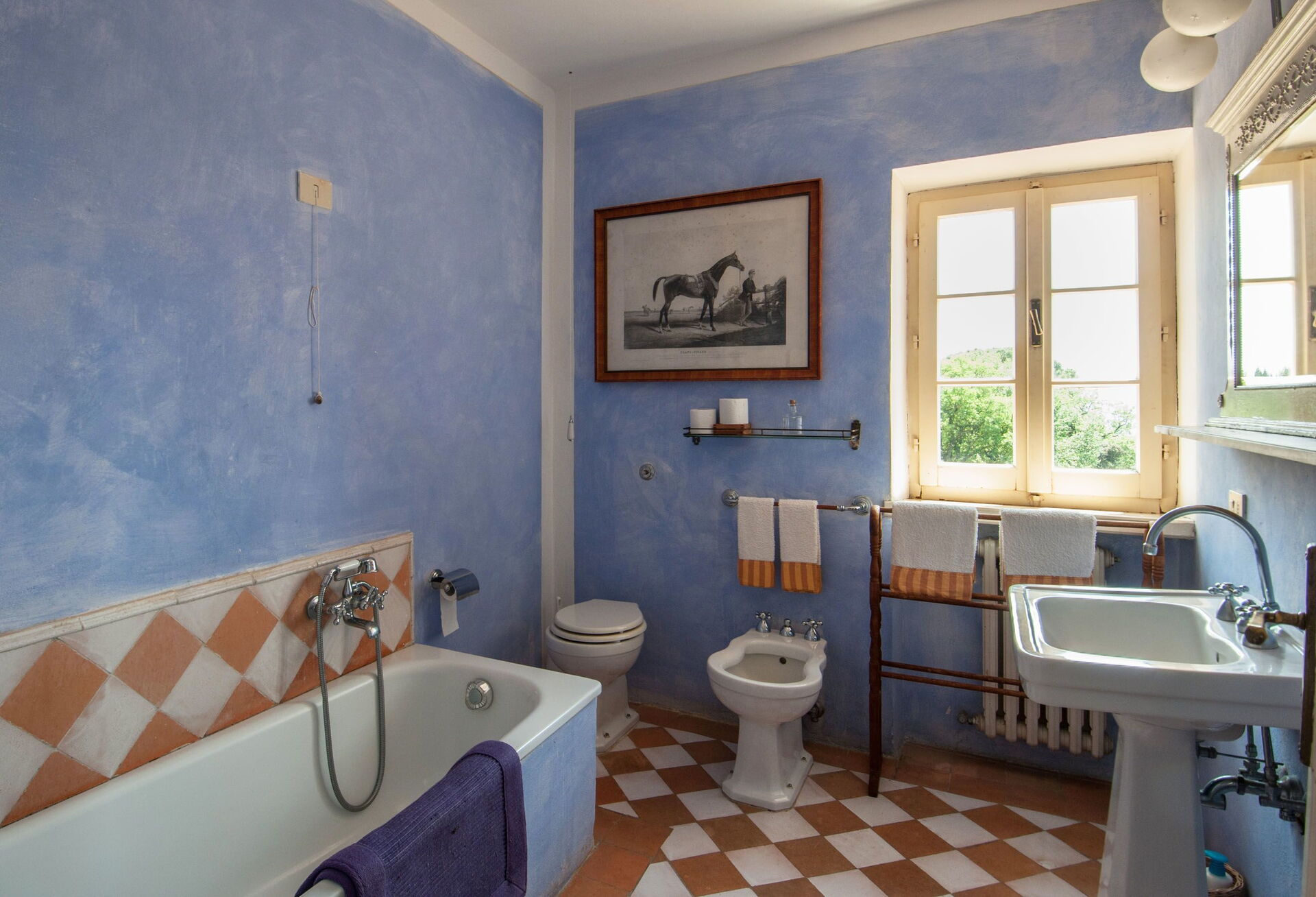 Bedroom + Ensuite Bathroom 1: double bed, WIFI internet, basin, toilet, bidet, bathtub, hairdryer.