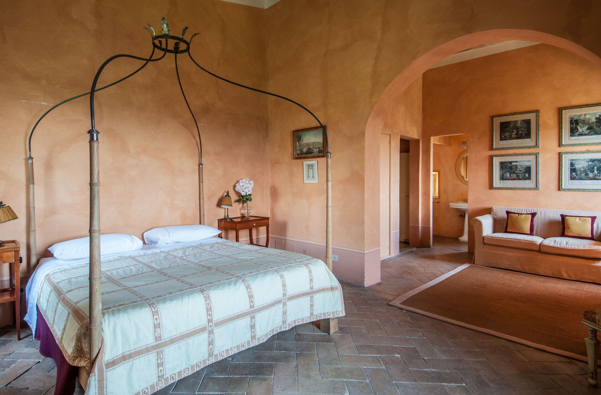 Bedroom + Ensuite Bathroom 2: king size bed, WIFI internet, air conditioning, sofa (people: 2), basin, toilet, bidet, bathtub, hairdryer.