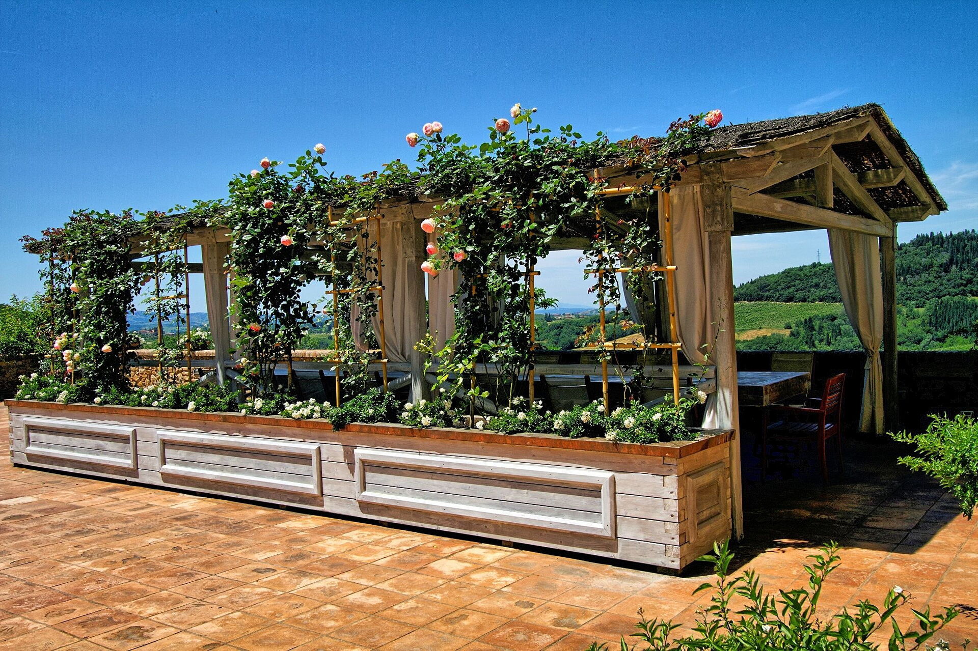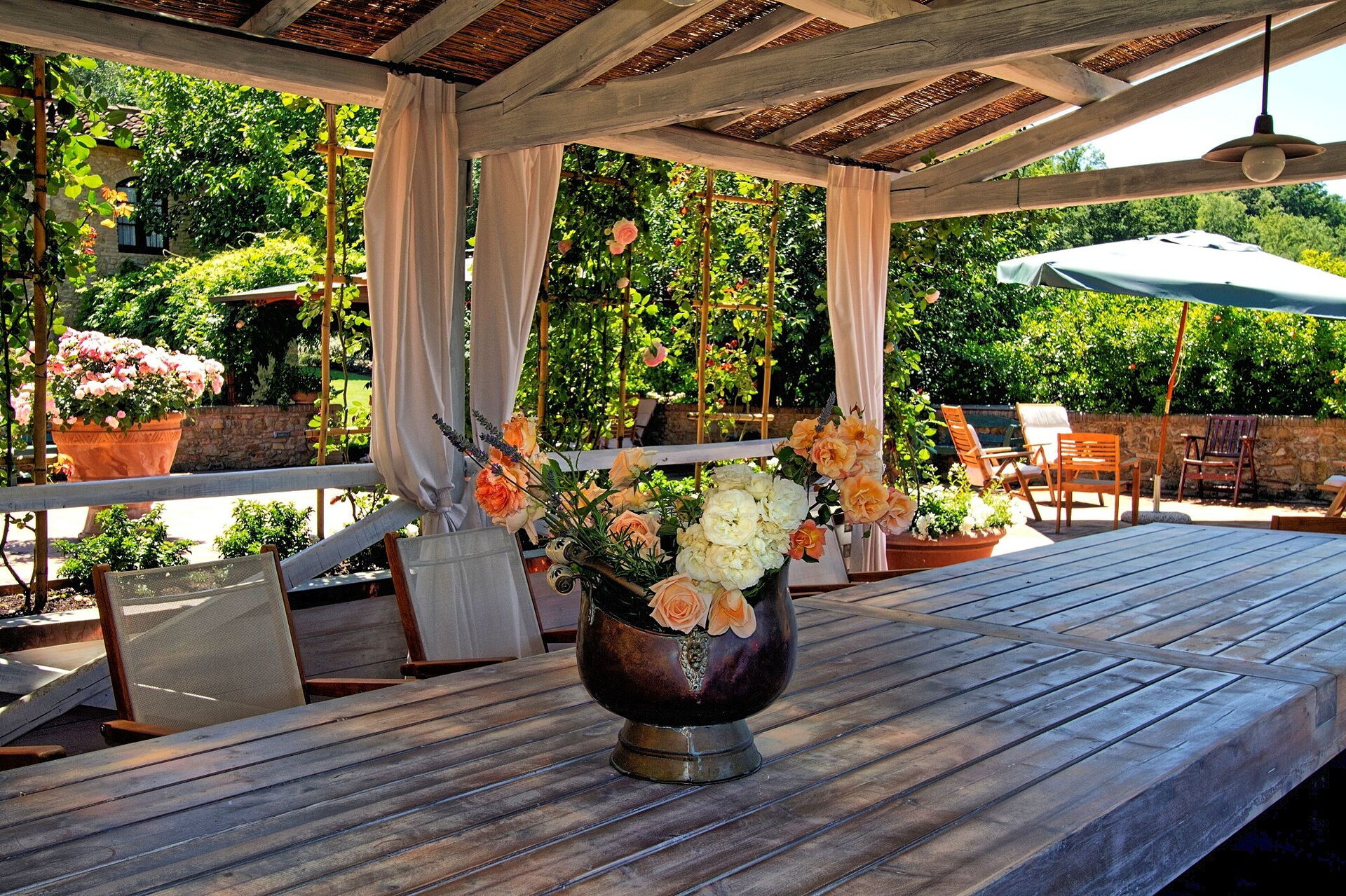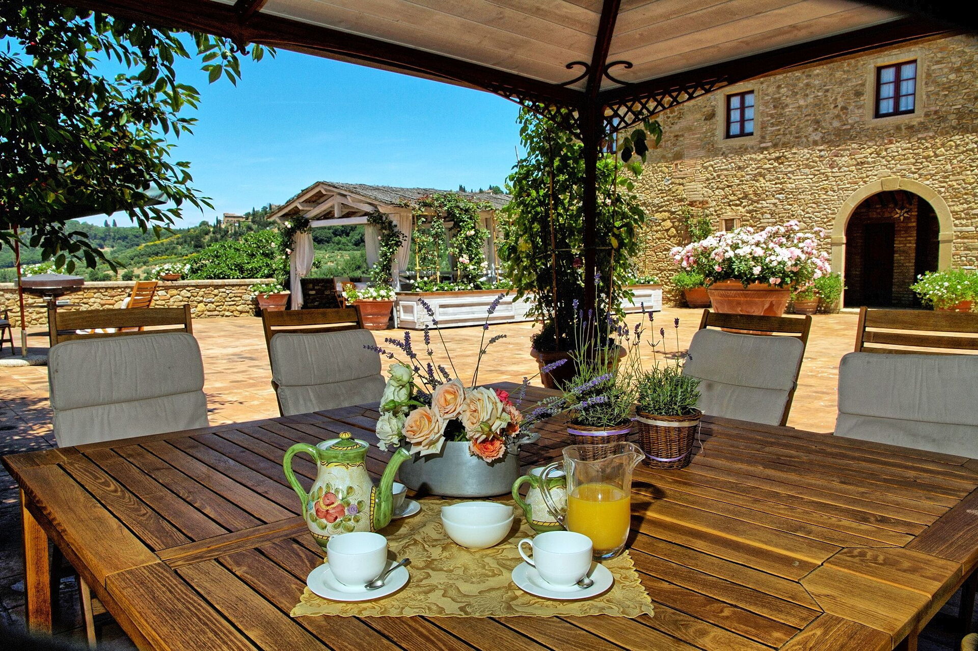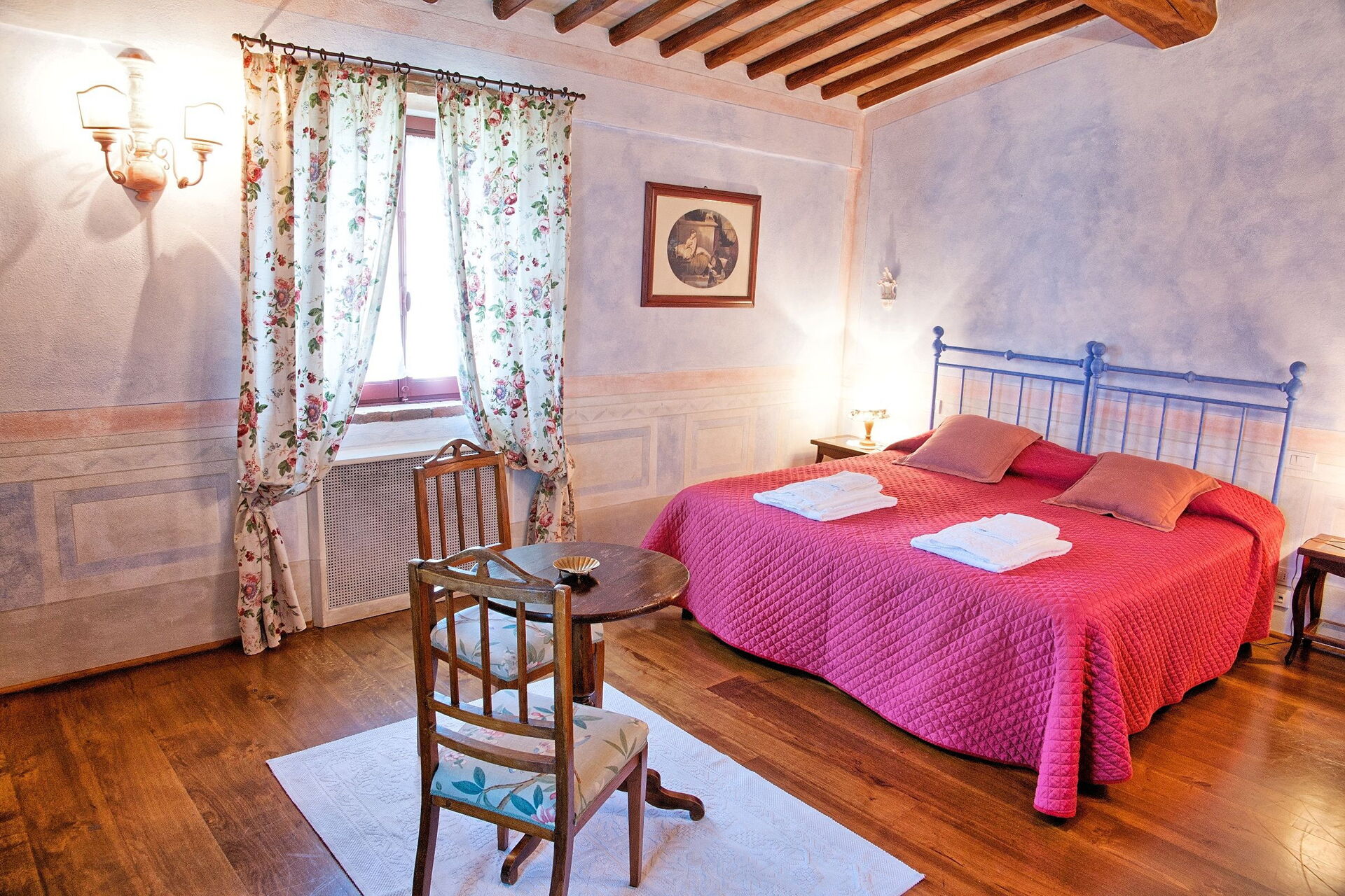 Beautiful private villa with swimming-pool situated in panoramic location on the Tuscan hills, between Florence and Siena. This splendid property has been recently restored preserving its original architectural features and has been turned into an elegant villa sleeping up to 16 people and an adjoining outbuilding for 8 people (rentable upon request only together with the main villa) allowing a total number of 24 guests. Both the villa and the outbuilding are tastefully furnished and offer spacious and extremely comfortable interiors.