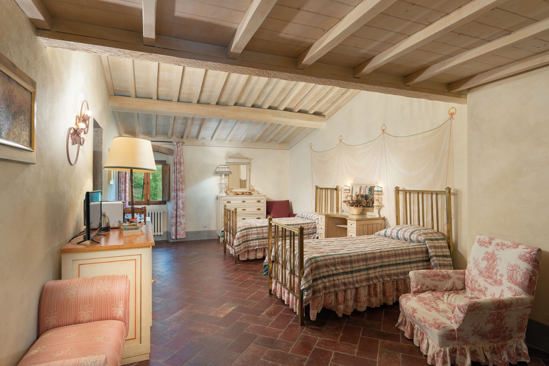 When you arrive at Locanda Di Alberi Without Kitchen you’ll find a nice clean well-maintained property with views of the hills ideal for a relaxing vacation in Tuscany. After a busy day of visiting museums, spend some time with friends and family poolside enjoying a glass of wine - a perfect way to unwind at the end the day. For your pleasure, on the grounds there is a patio, playground and barbecue grill.