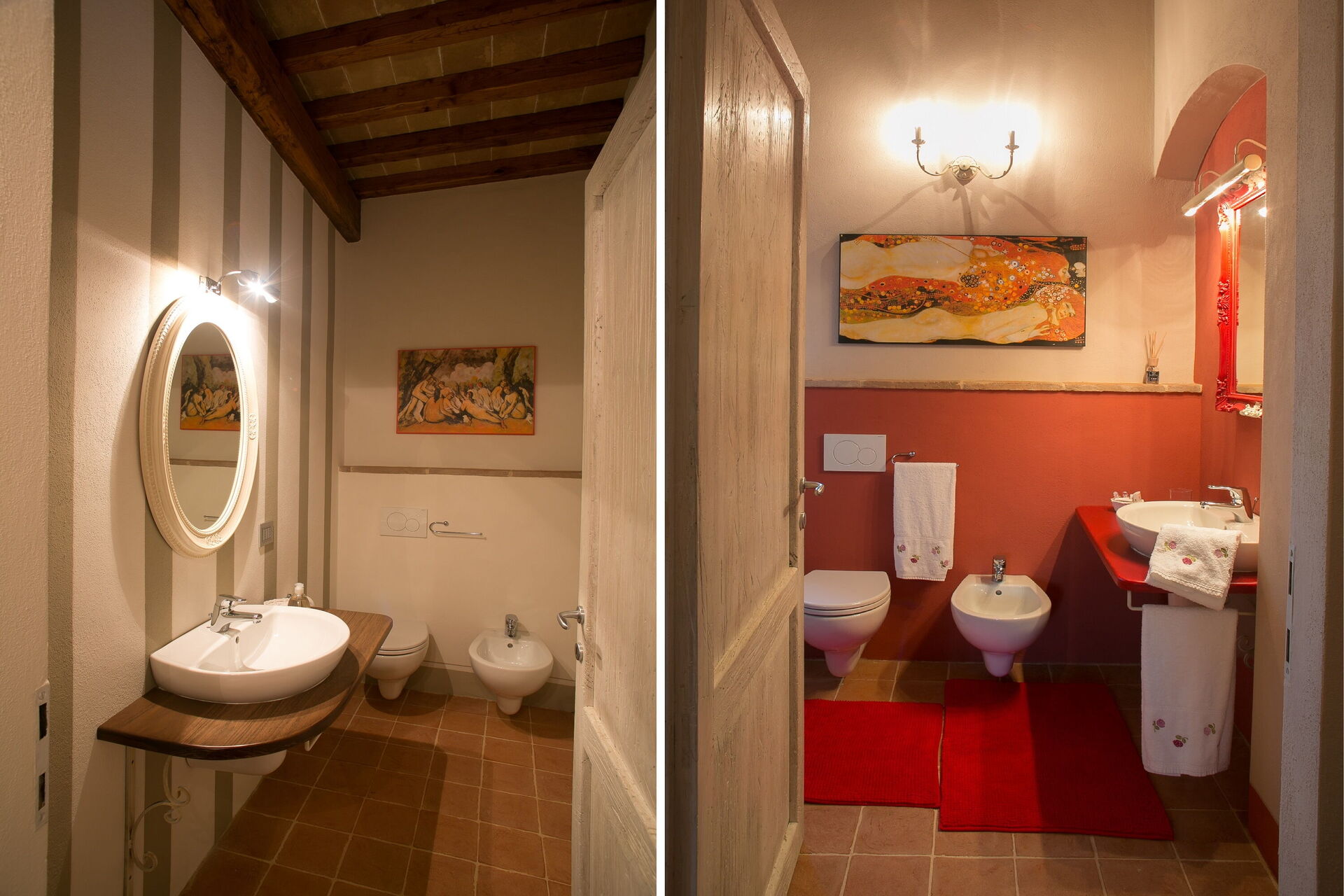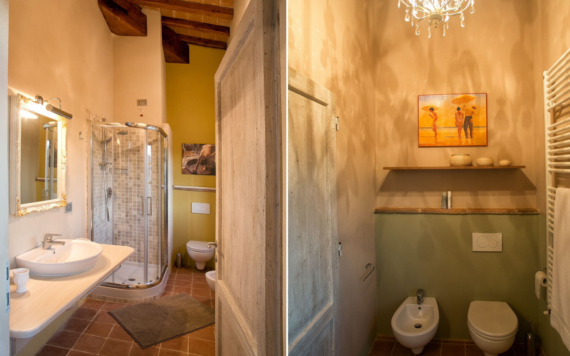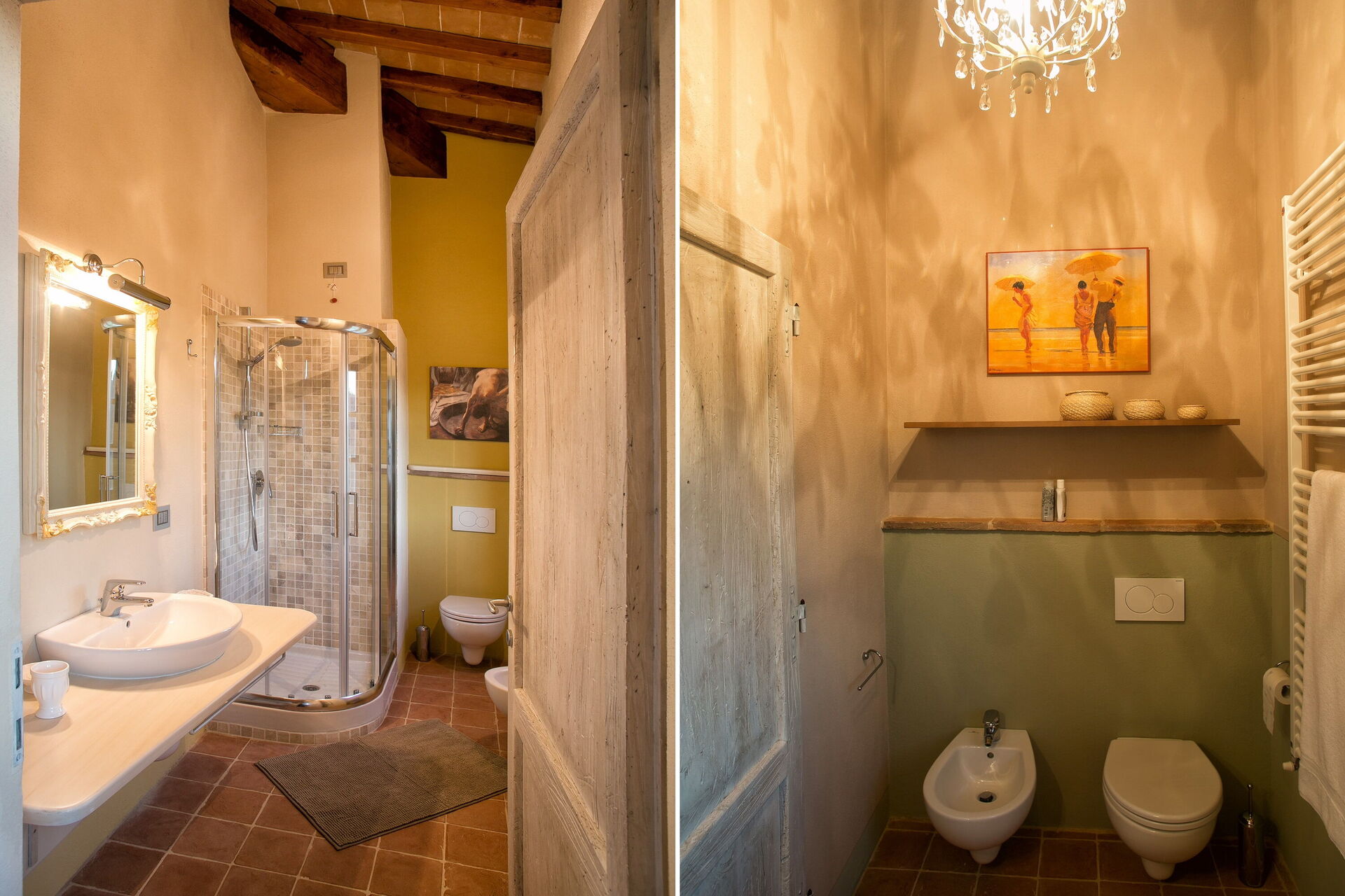 Bathroom 1: basin, toilet, bidet, shower.
