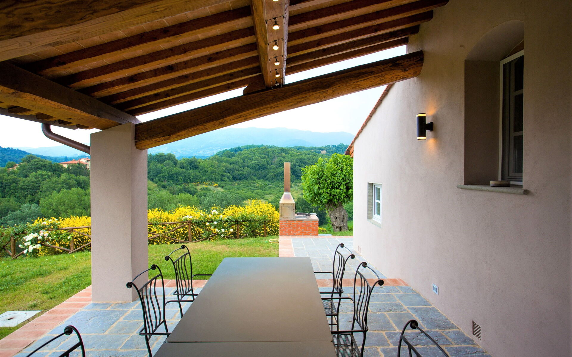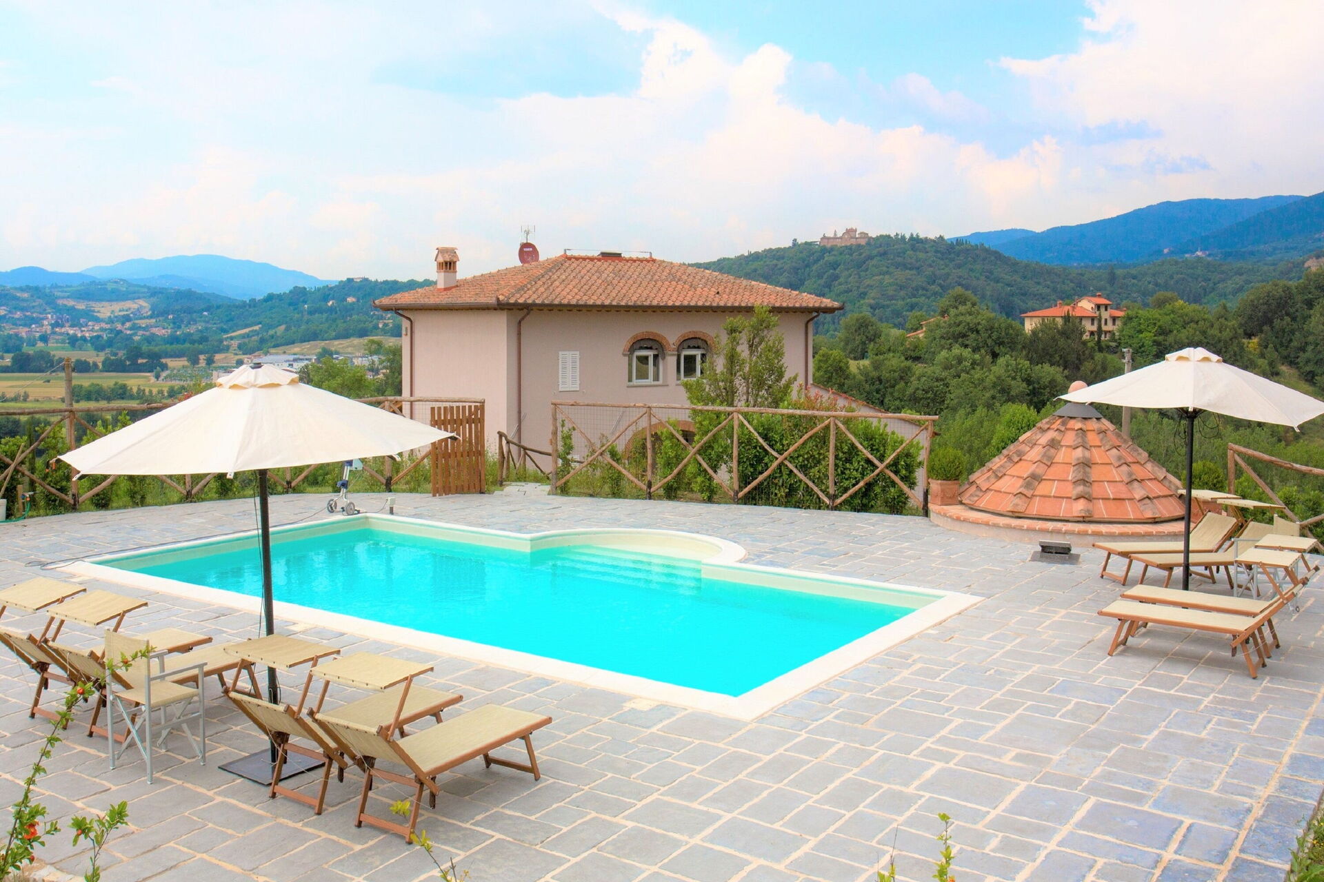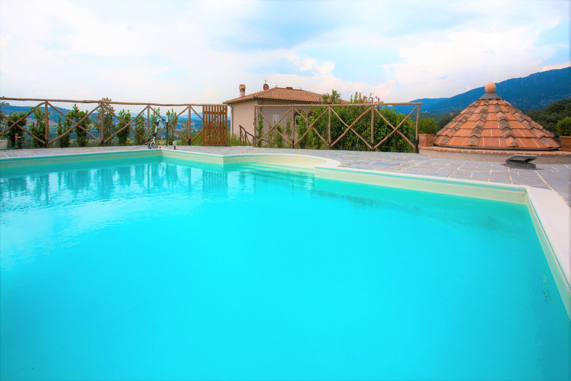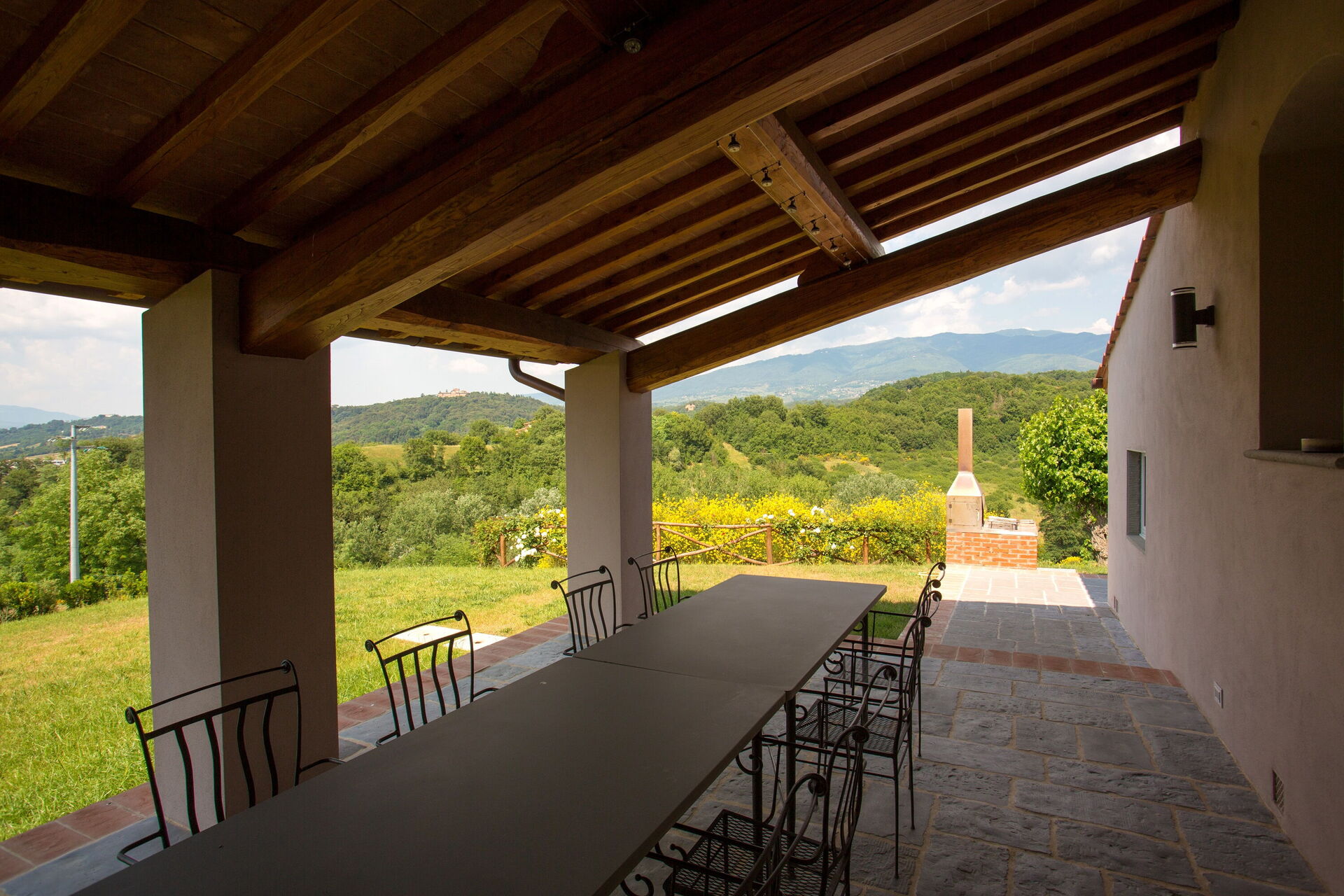 After arriving you will be welcomed by the owner or manager where you’ll find a lovely clean well-maintained property with views of the hills ideal for a peaceful holiday in Tuscany. After a busy day of shopping, spend some time with friends and family poolside enjoying a glass of wine - a perfect way to relax at the end the day. There is a kitchen including coffee machine, microwave, toaster and refrigerator, as well as, plenty of tableware and cutlery for up to ten people. If you prefer to dine 'al fresco', there is a fully furnished garden where you can enjoy the weather while dining outdoors.