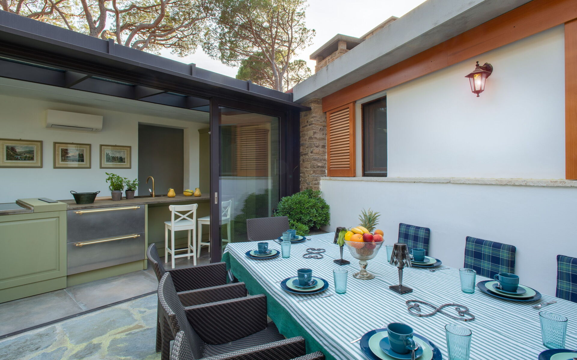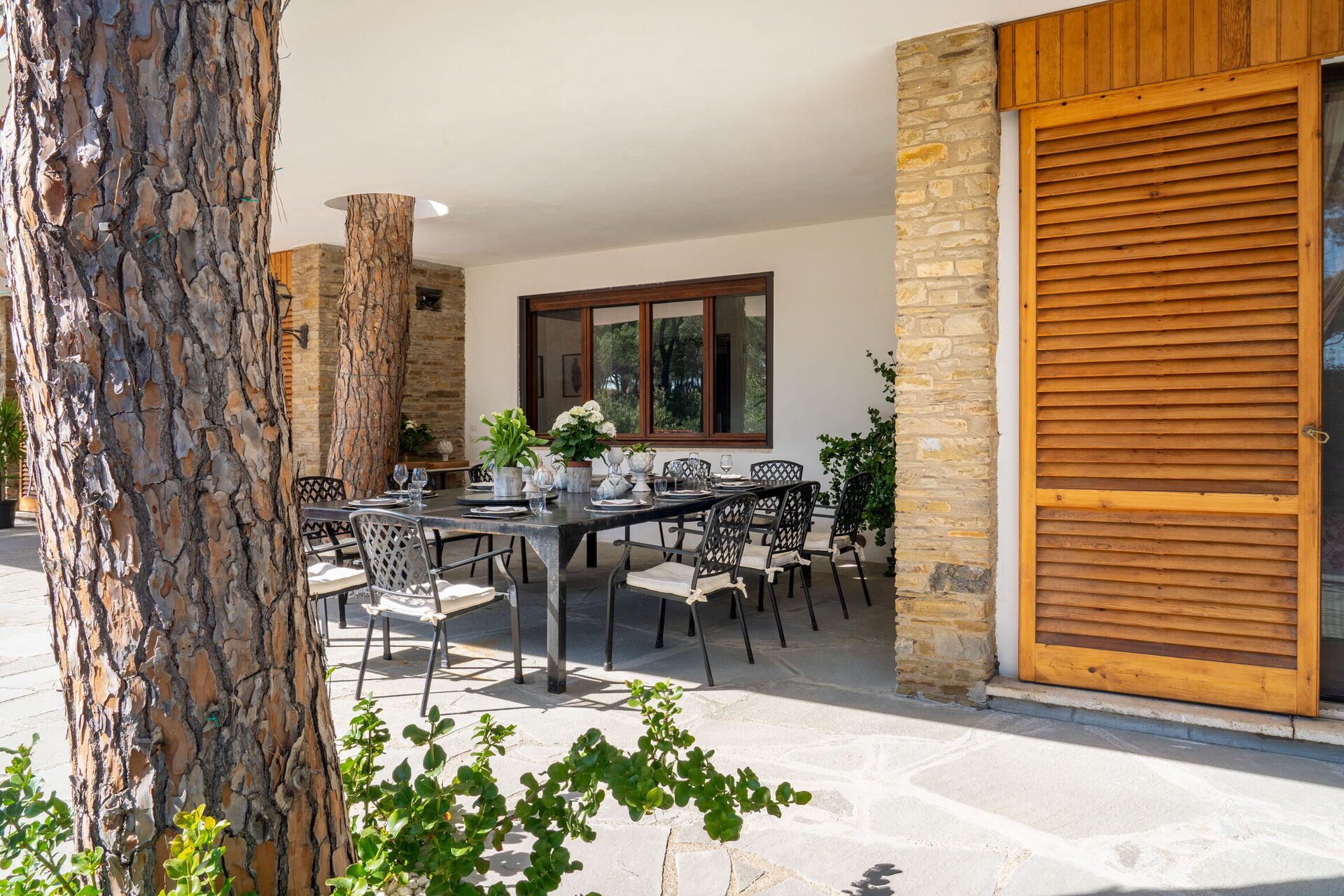 Dining room: dining table (people: 10), air conditioning, WIFI internet, mosquito net, exit to the patio.