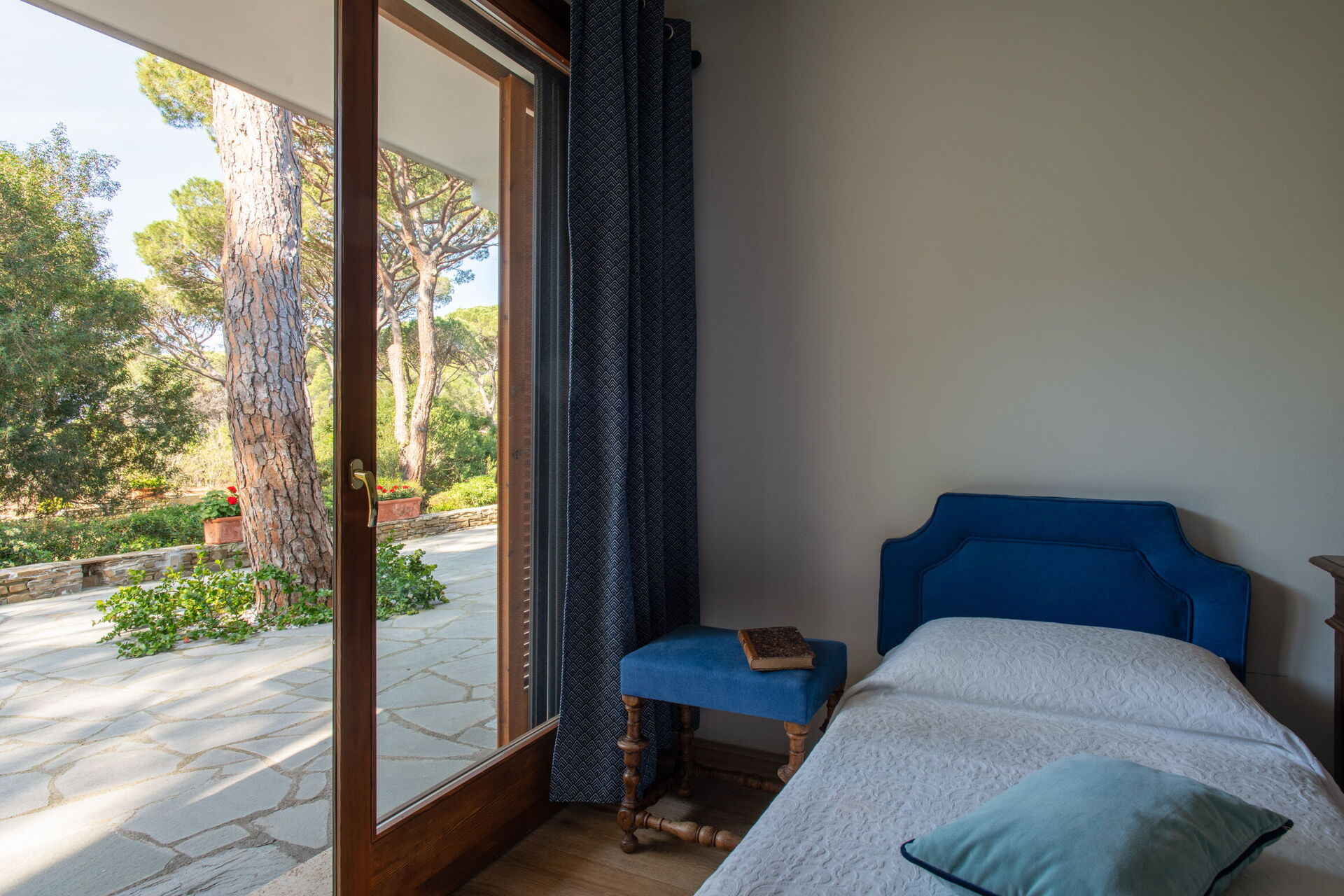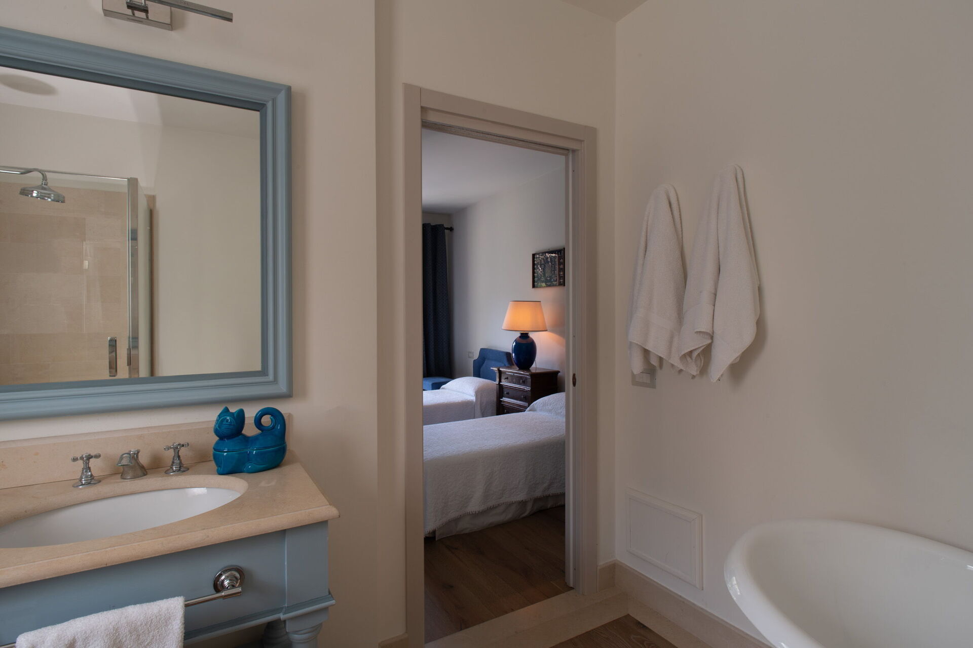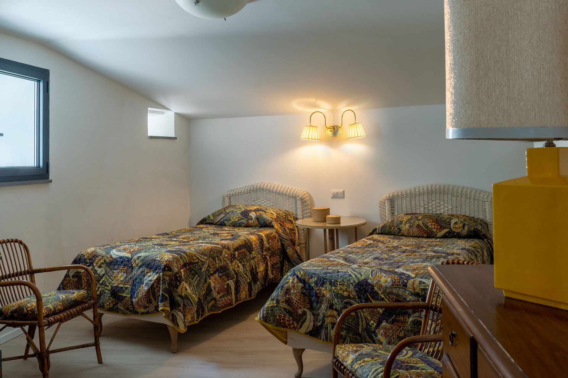 Bedroom + Ensuite Bathroom 3: two single beds, WIFI internet, air conditioning, mosquito net, armchair, basin, toilet, bidet, bathtub, hairdryer, exit to the garden.