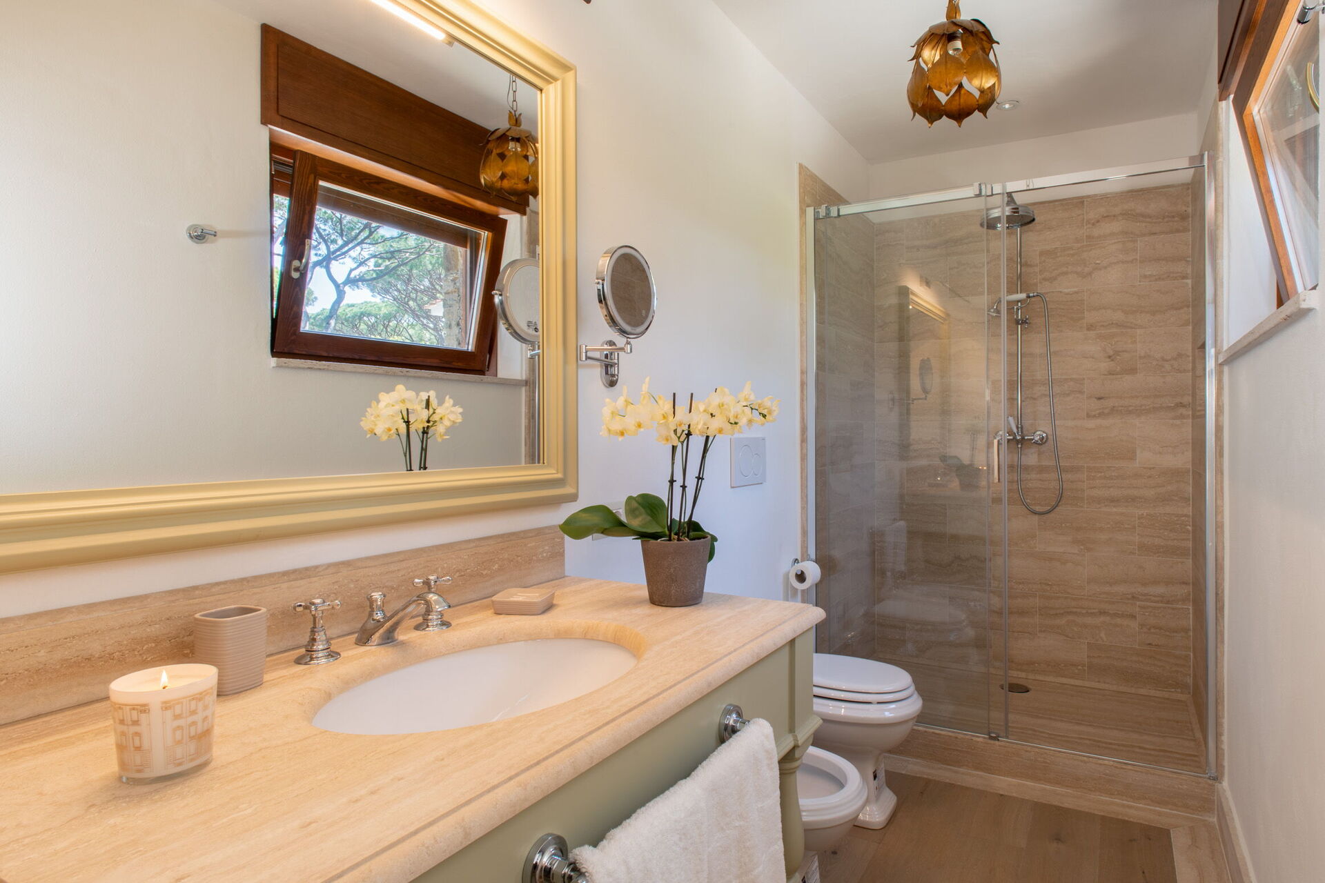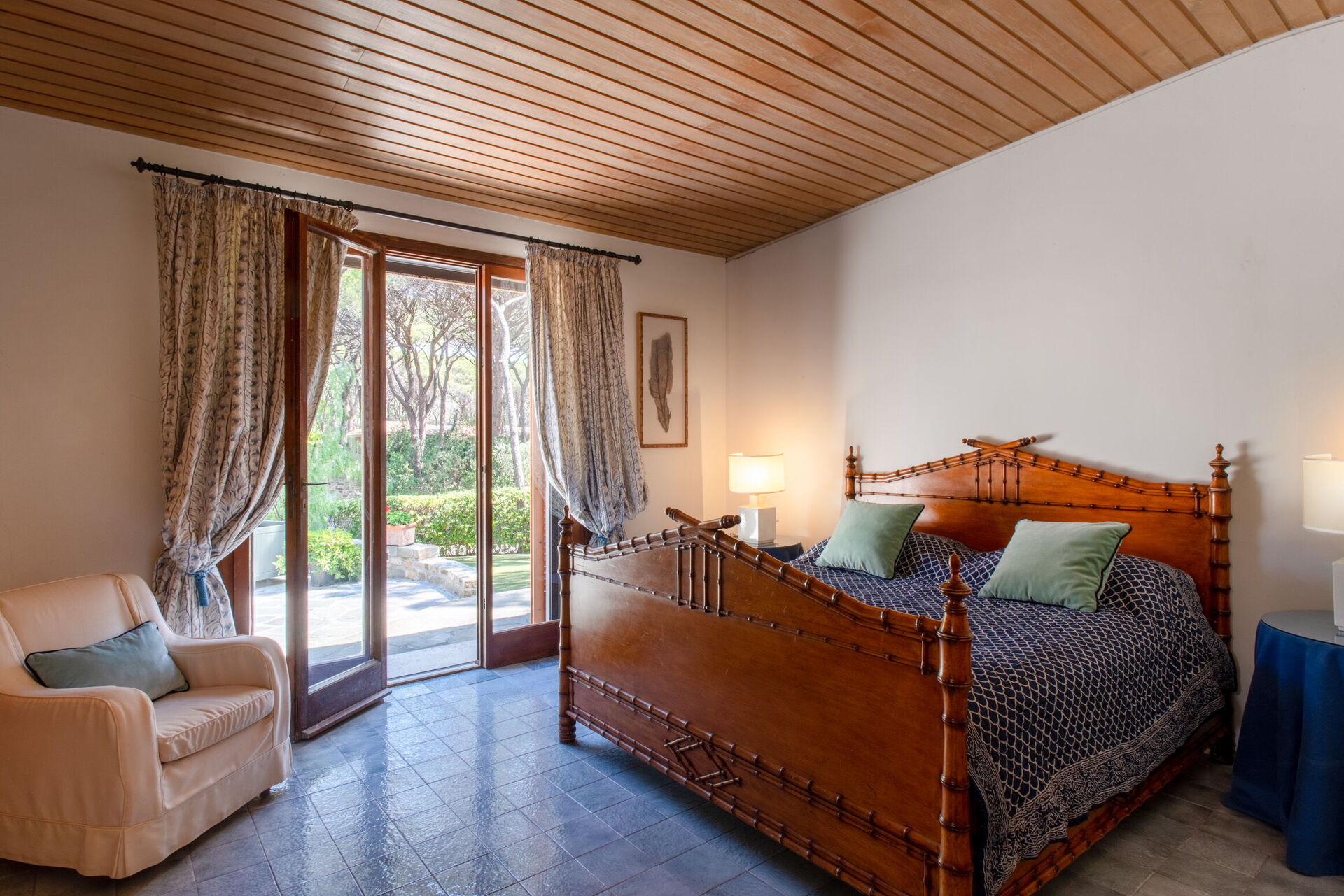 Bedroom + Ensuite Bathroom 5: king size bed, WIFI internet, air conditioning, mosquito net, armchair, working desk, double basin, toilet, bidet, shower, hairdryer, exit to the garden.