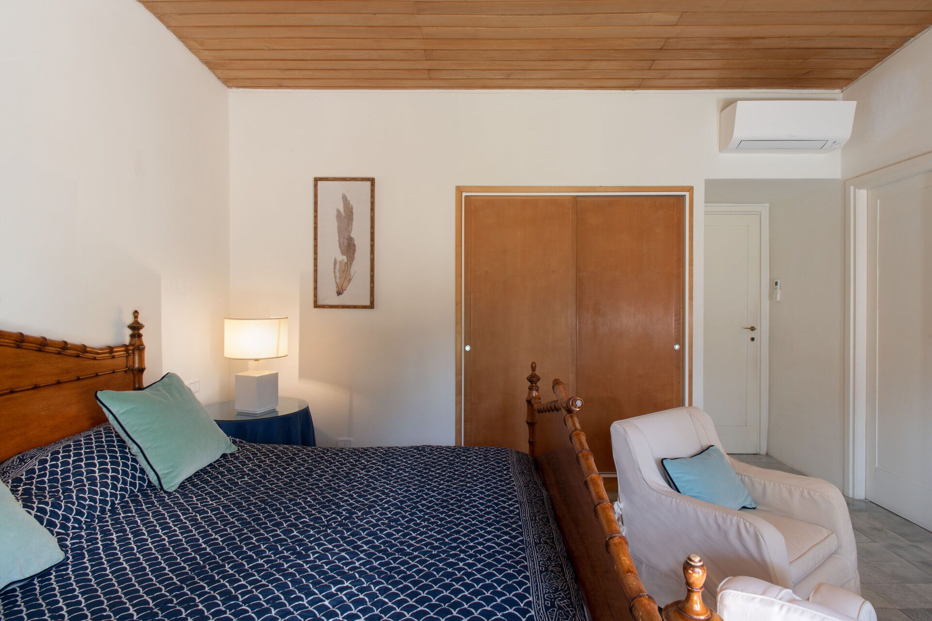 Bedroom + Ensuite Bathroom 7: king size bed, WIFI internet, air conditioning, mosquito net, armchair, working desk, basin, toilet, bidet, shower, hairdryer, exit to the garden.