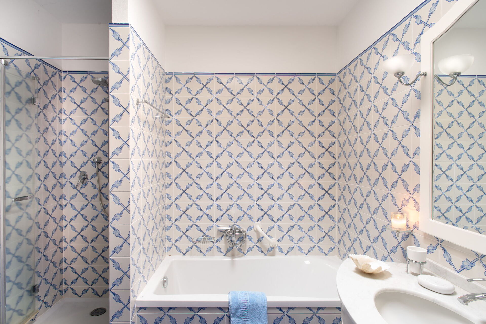Bedroom + Ensuite Bathroom 6: king size bed, WIFI internet, air conditioning, mosquito net, armchair, working desk, basin, toilet, bidet, bathtub, shower, hairdryer, exit to the garden.