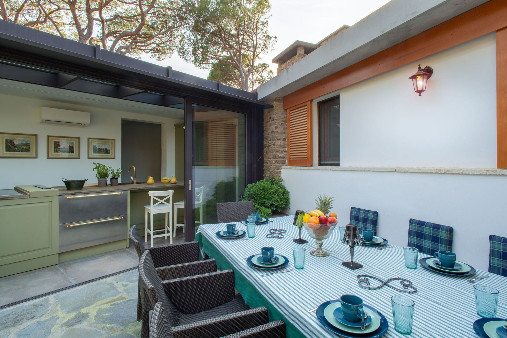 Patio: al fresco dining, dining table (people: 10), WIFI internet, garden furniture.
