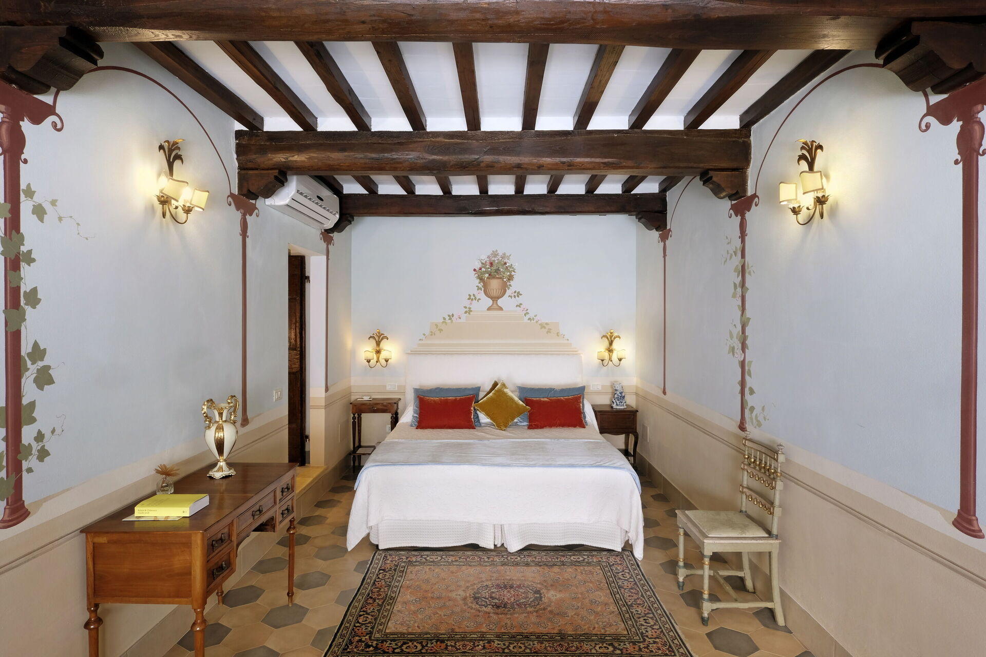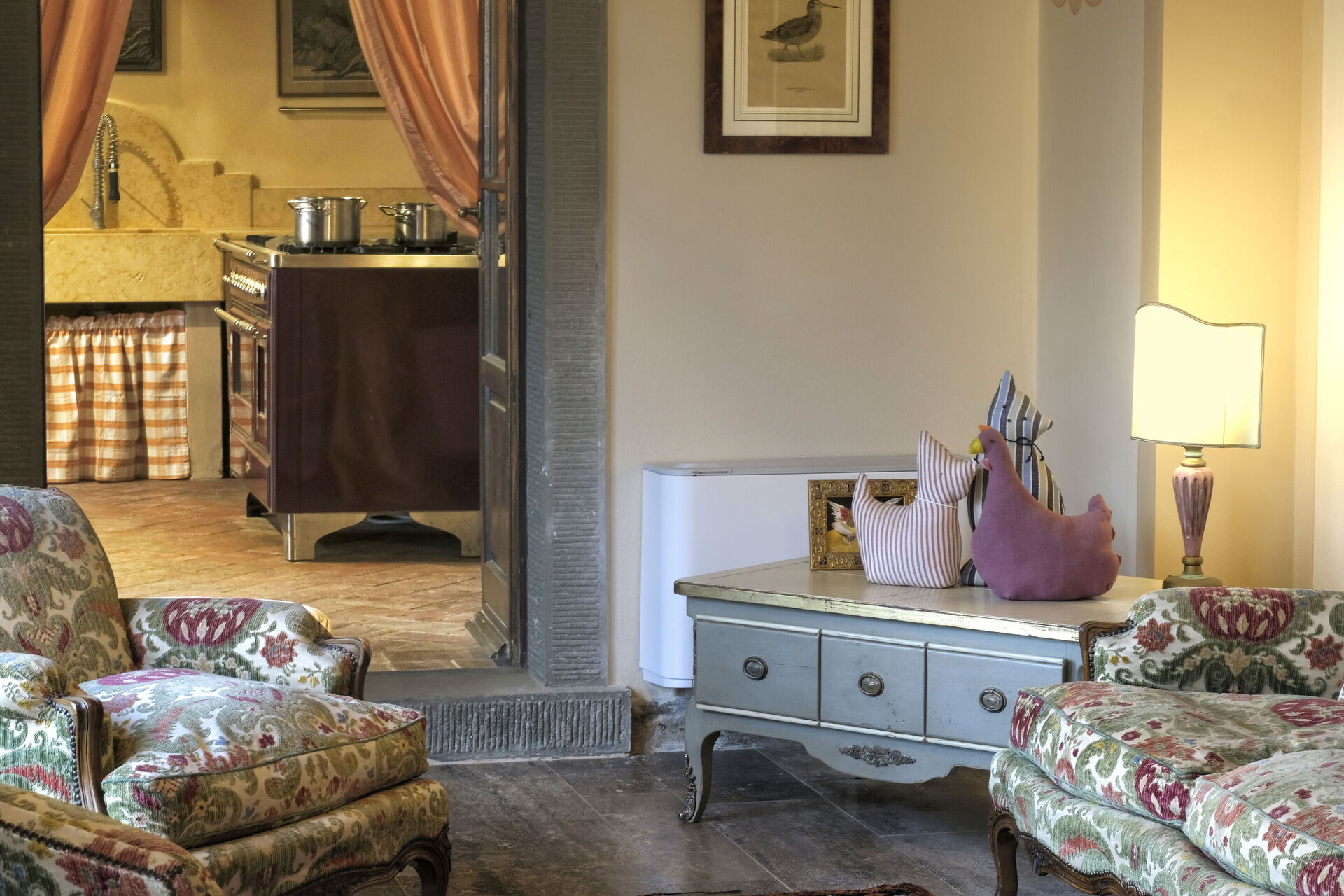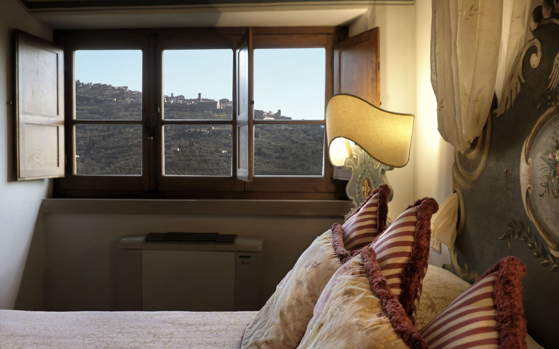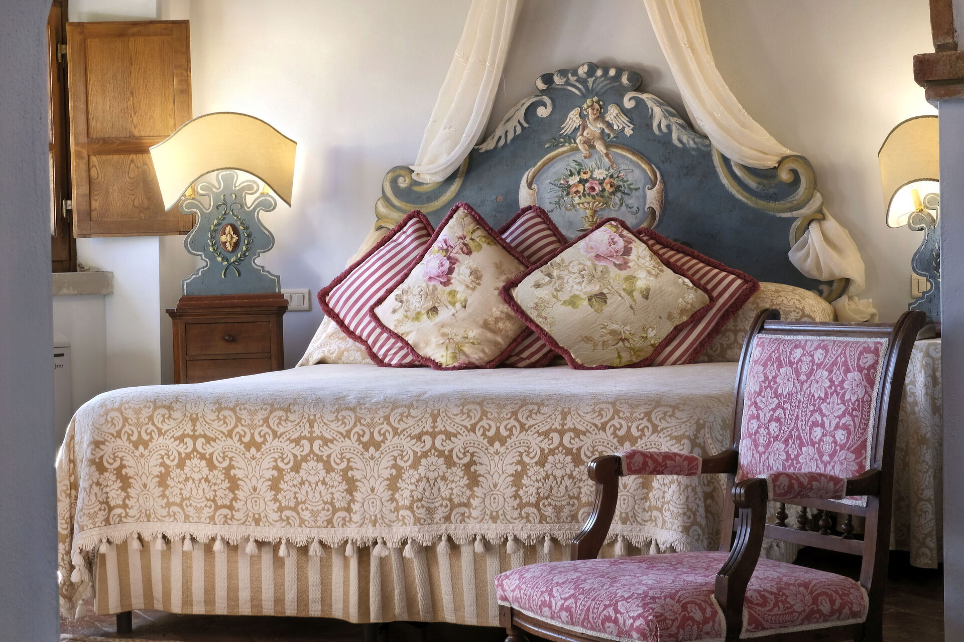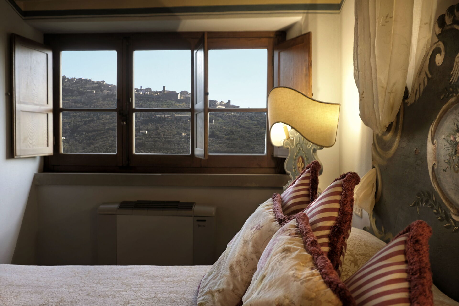 A lovely frescoed ceiling room, with adjoining small kitchen, is located adjacent to the swimming pool, suited to start the day with a breakfast together or to prepare small snacks during the day in the pool. A barbecue is available in the garden close to the swimming pool. The small stone buildings that make up the Borgo del Falco are joined by ladders, small alleys and everywhere the green fields and the garden that surrounds the property. Villa Borgo del Falco has the privilege of its position overlooking Cortona and its hill and the vineyards.